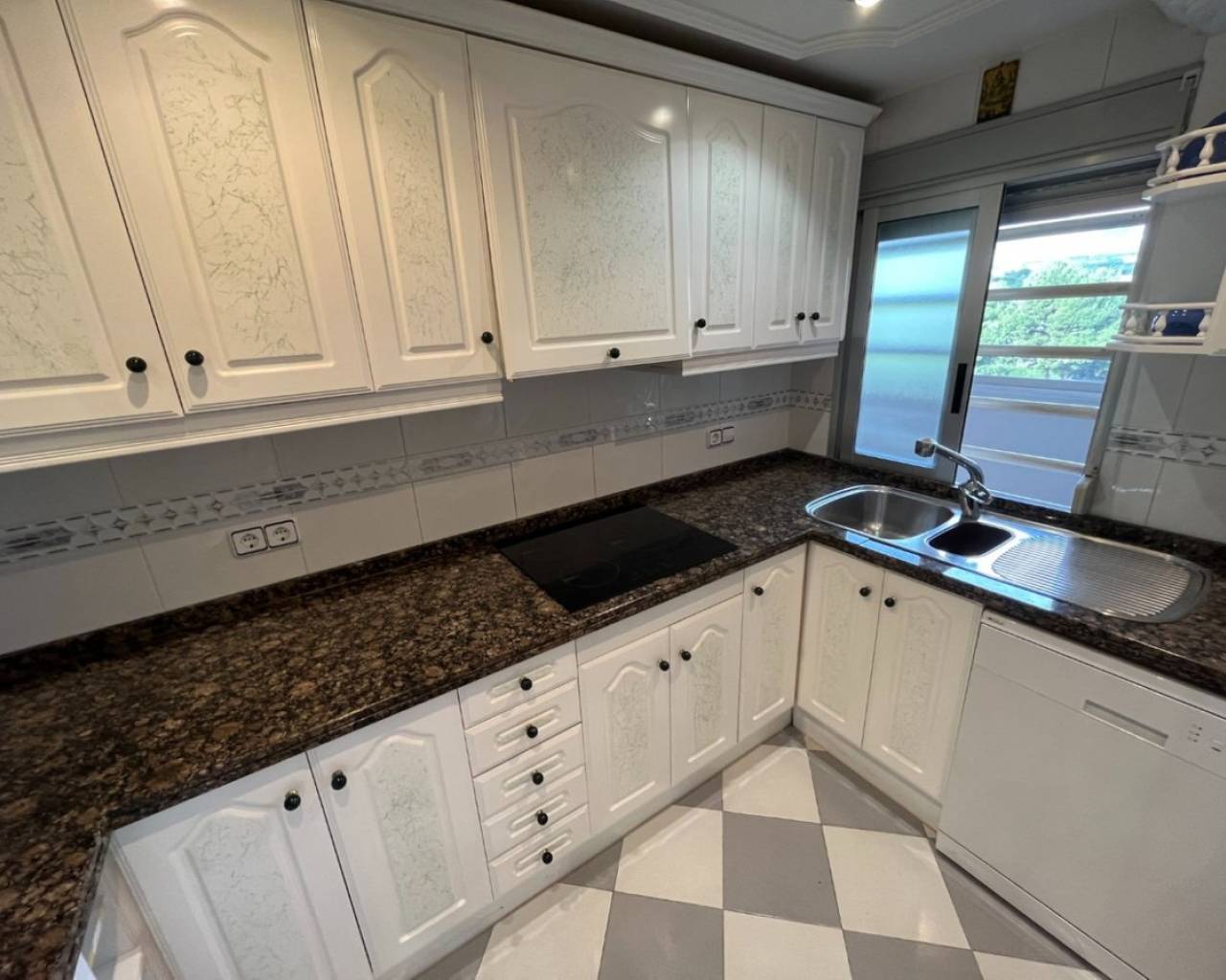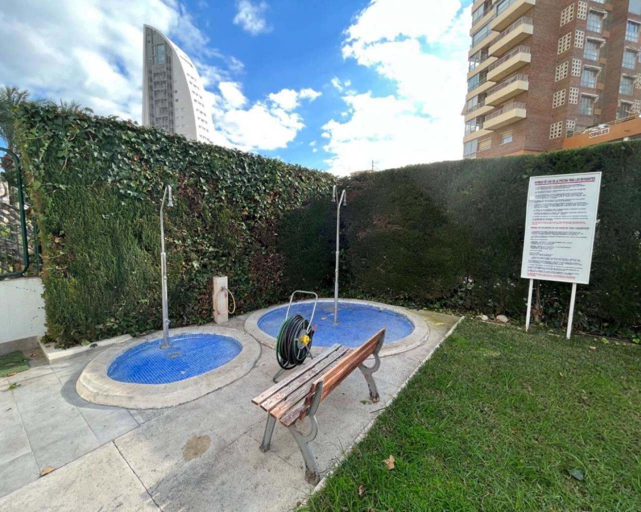 Great Apartment just 80 meters from the Poniente beach in Benidorm, with exceptional views of the sea.It includes 3 bedrooms, 2 bathrooms, a spacious living-dining room and an independent equipped kitchen. It was renovated several years ago, among other things, incorporating the original terrace into the house, but it is still in very good condition.It is built with good materials such as: stoneware floors, white lacquered interior carpentry, kitchen furnished with electrical appliances, built-in wardrobes, hot-cold air conditioning through ducts, etc.Located on the 8th floor of a well-known urbanization of Playa de Poniente, with recently renovated common areas and elevators, two tennis courts, a basketball court, a community pool and freely available covered parking space.Located on Playa de Poniente, at its closest end to La Cala, well connected by road, bus at the door, and surrounded by all kinds of shops and services. With easy access to the AP7 motorway that communicates with the rest of the Costa Blanca.