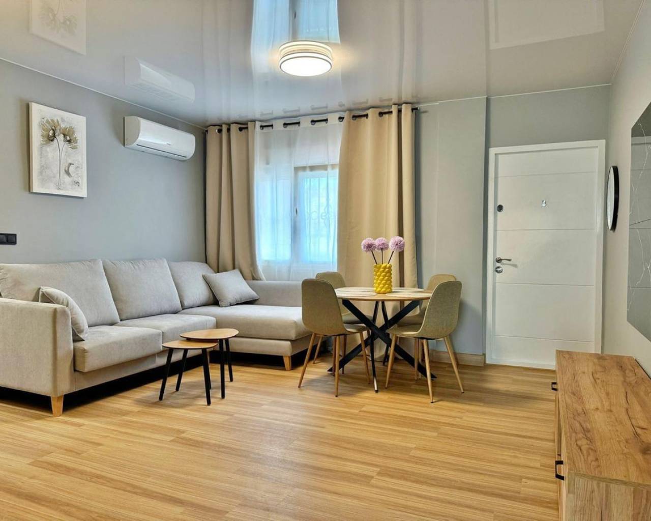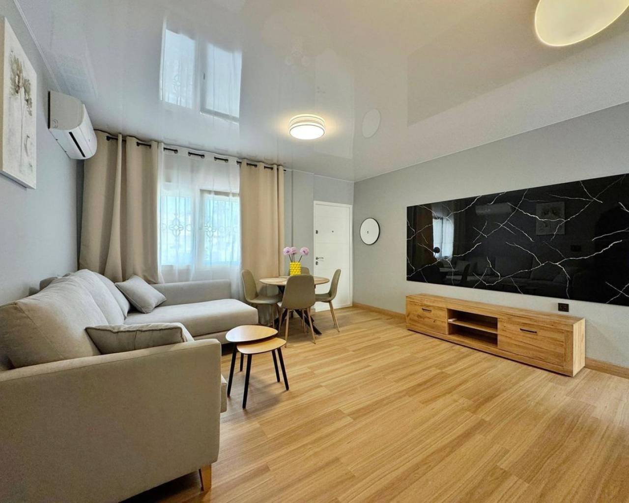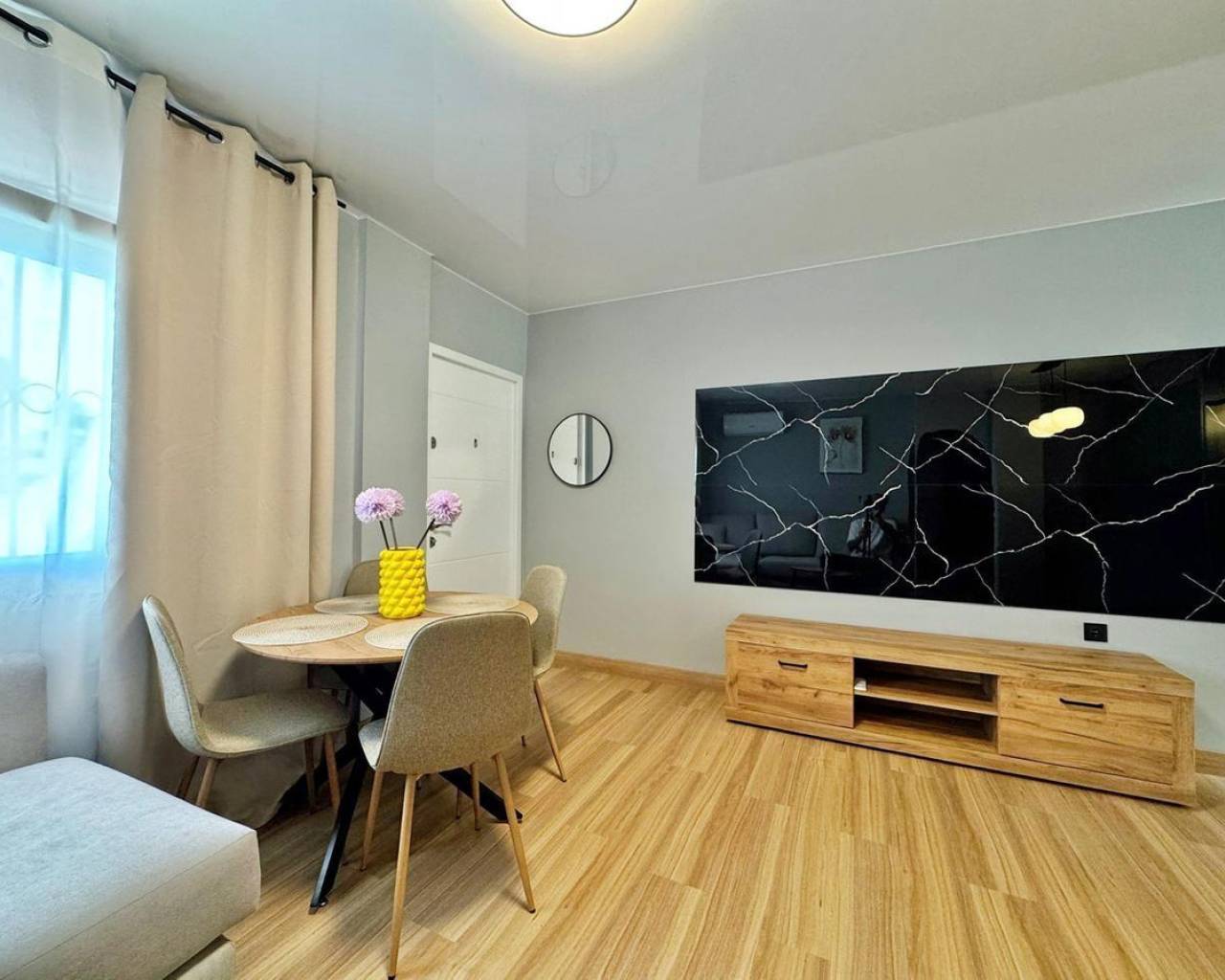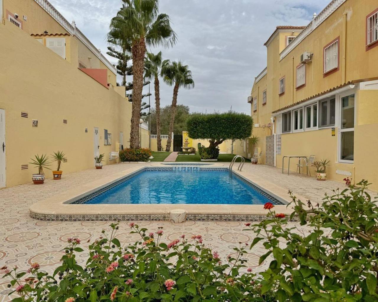 Ground floor bungalow for sale after a complete renovation, located in the Orihuela Costa area (Torrevieja), just 5 km from the beach.• Year of construction: 2005• Total surface area of the bungalow: 69 m²• Usable surface area: 60 m²• Plot: 68 m²• Terrace: 12 m²• Distribution: 3 bedrooms and 1 bathroomFeatures:• modern renovation with stretched ceilings, quartz-vinyl flooring, and designer decorative details;• sold with all the furniture and equipment as shown in the photographs;• the residential complex has a community pool;• from the back patio of the bungalow, there is direct access to the pool and the relaxation area.A perfect opportunity for those looking for a renovated home, ready to move in, in a quiet area with good infrastructure and easy access to the beach.