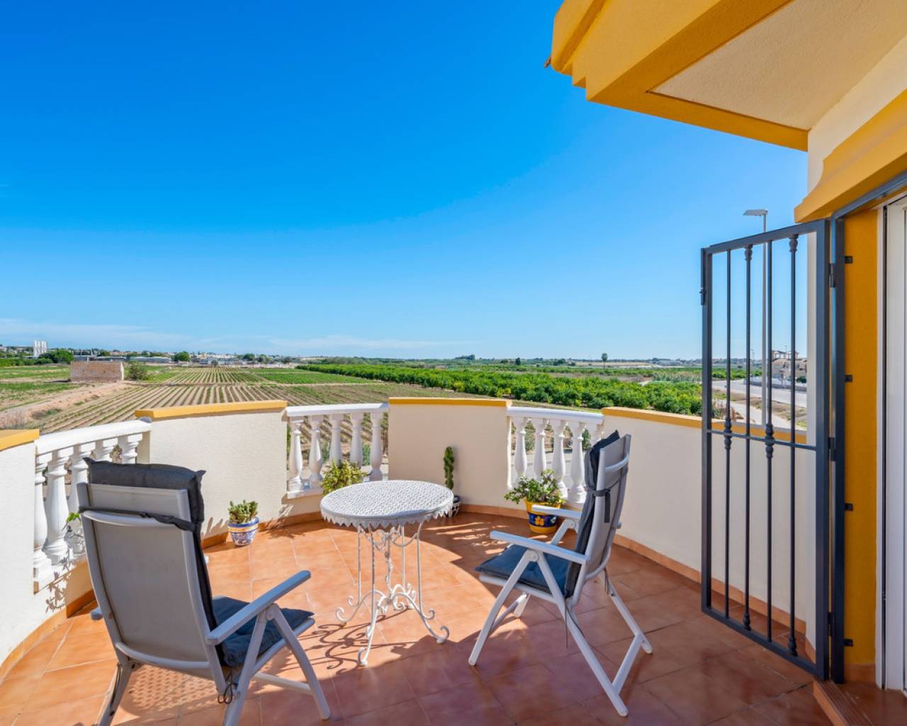 Welcome to this beautiful recently renovated home in El Raso, ideally located within walking distance of the commercial centre, bars, and restaurants, in a quiet and well-connected area with open views. Layout and Key Features: The property offers 107 m² of built area and is thoughtfully distributed over two floors, providing comfort and functionality. The ground floor features a bright living room with an open-plan kitchen and dining area, creating a modern and inviting living space. On this level, you will also find one bedroom, a fully equipped bathroom, and a practical storage room with a washing machine. The upper floor comprises two additional bedrooms and a bathroom. Both bedrooms have direct access to a spacious terrace with lovely open views over surrounding farmland and the well-known Lemon Market, located just 500 metres from the property. Outdoor Area: The exterior space is designed for enjoying the Mediterranean climate all year round. It includes a well-maintained garden, two separate seating areas, a jacuzzi, additional storage, and a private parking space with a wooden pergola providing shade and protection from the sun. An excellent opportunity as a permanent residence, holiday home, or investment property, combining comfort, tranquillity, and a prime location.