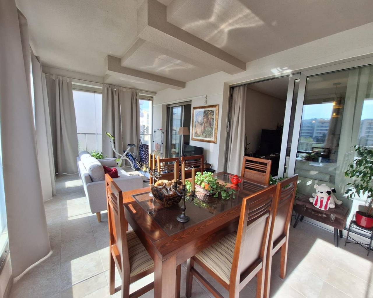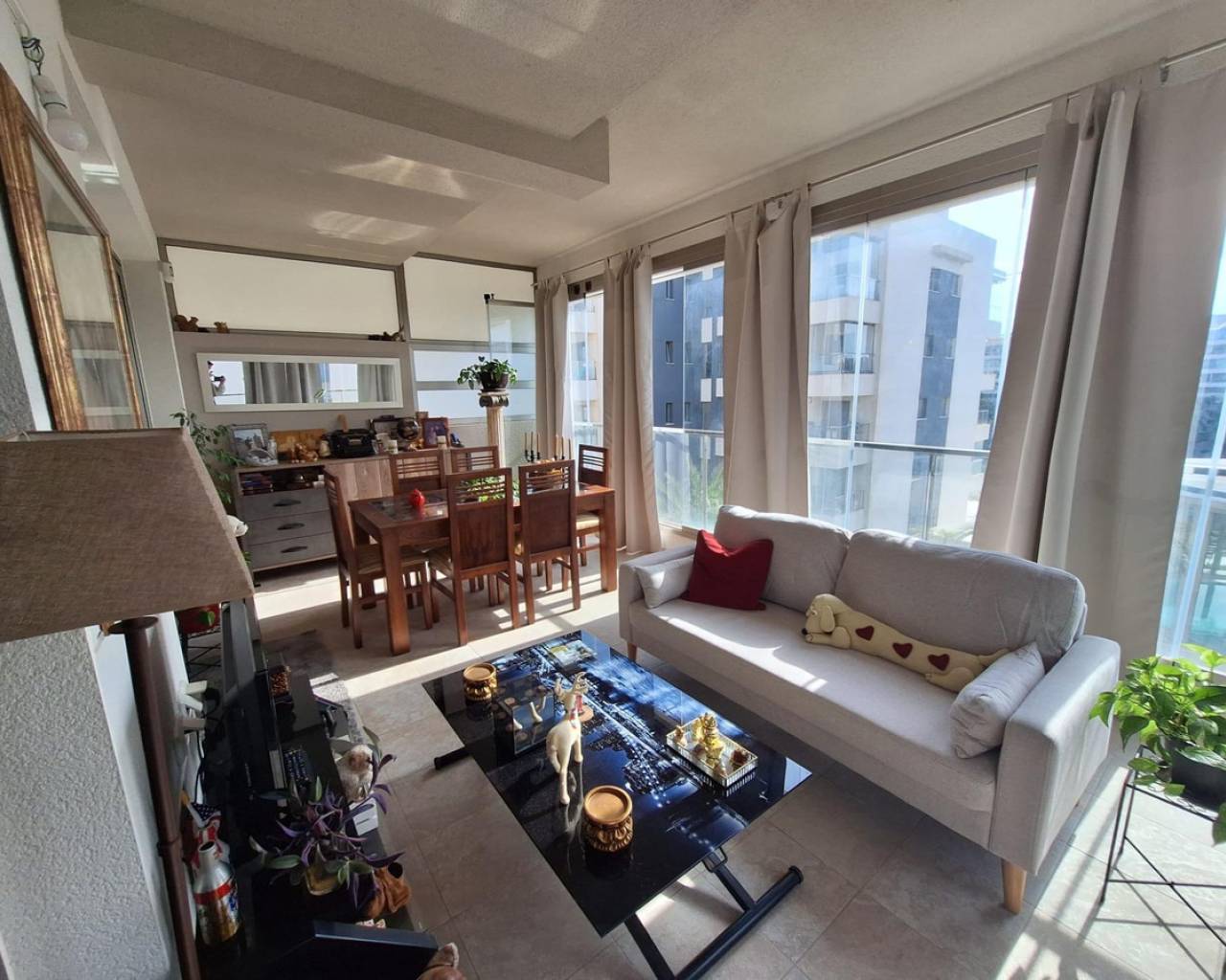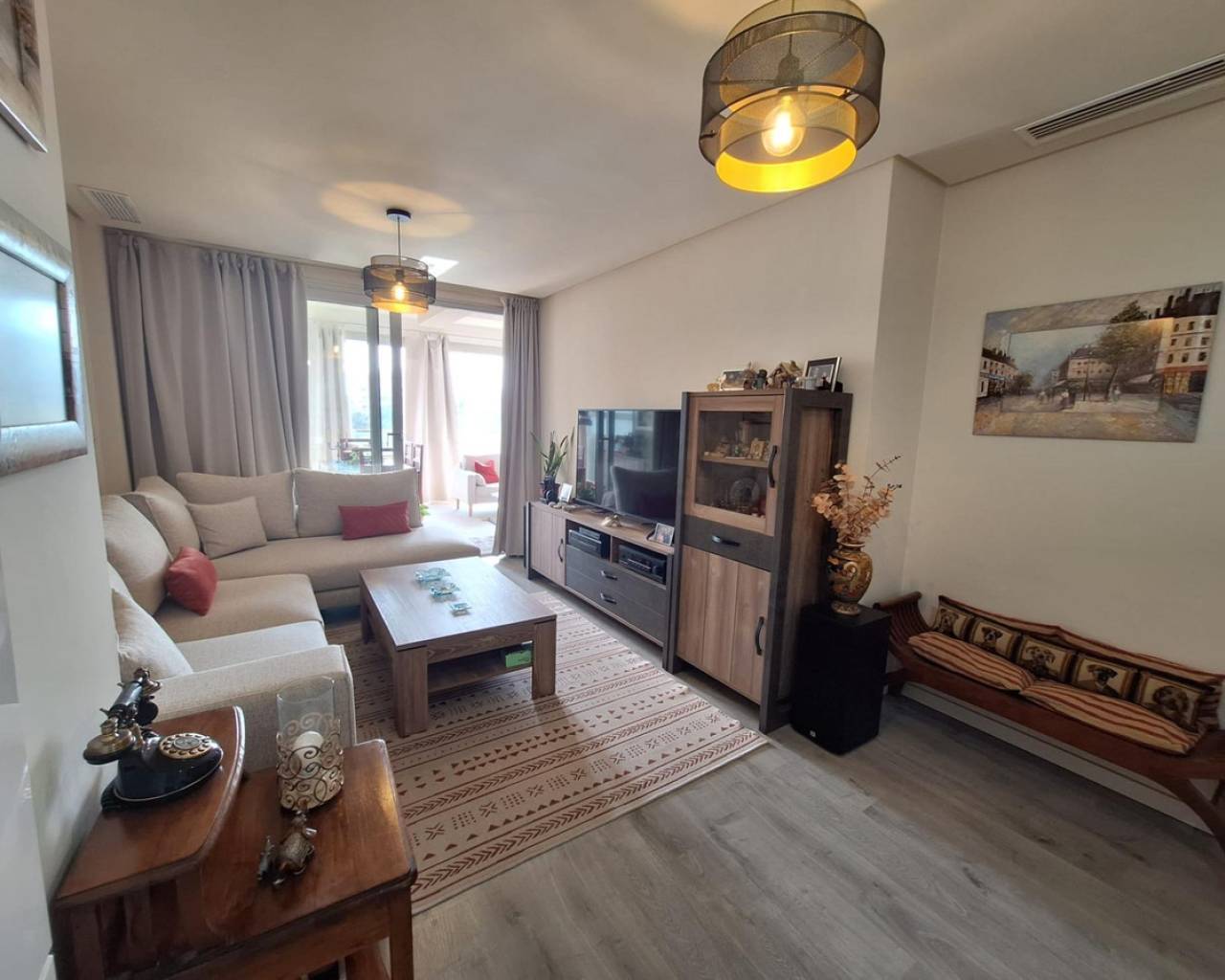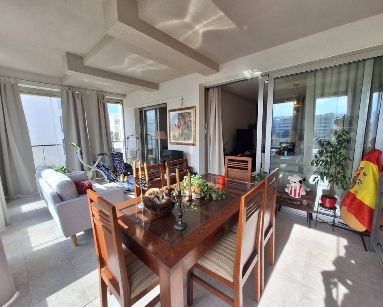 Discover this spectacular apartment located in the privileged area of Orihuela Costa, ideal for enjoying the Mediterranean lifestyle. With a constructed area of 93 m² and a usable area of 82 m², this property is ready to move in. The southeast orientation allows the space to be bathed in natural light throughout the day, creating a warm and welcoming environment.The apartment features two bedrooms (one double), perfect for both families and those seeking additional comfort. It also has two full bathrooms, which is very practical.In the common areas, you can enjoy not only the sun by the heated pool but also have fun playing ping pong thanks to the available tables within the complete urbanization: private parking included ensures your peace of mind and comfort.Strategically located just 1600 meters from the Mediterranean Sea, it is perfect for those beach lovers without giving up modern conveniences.