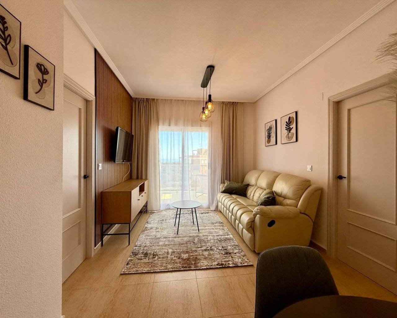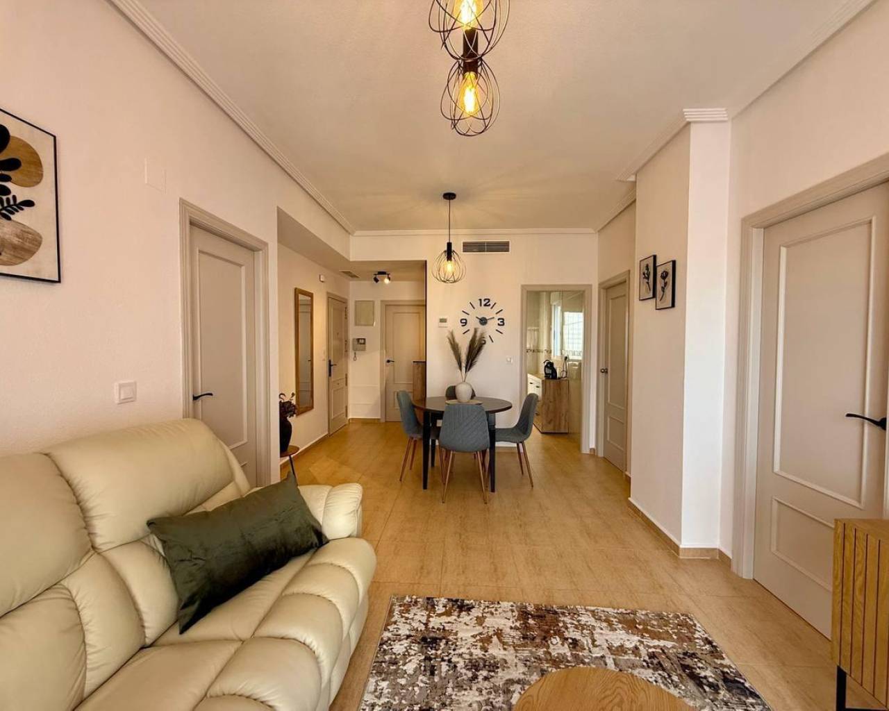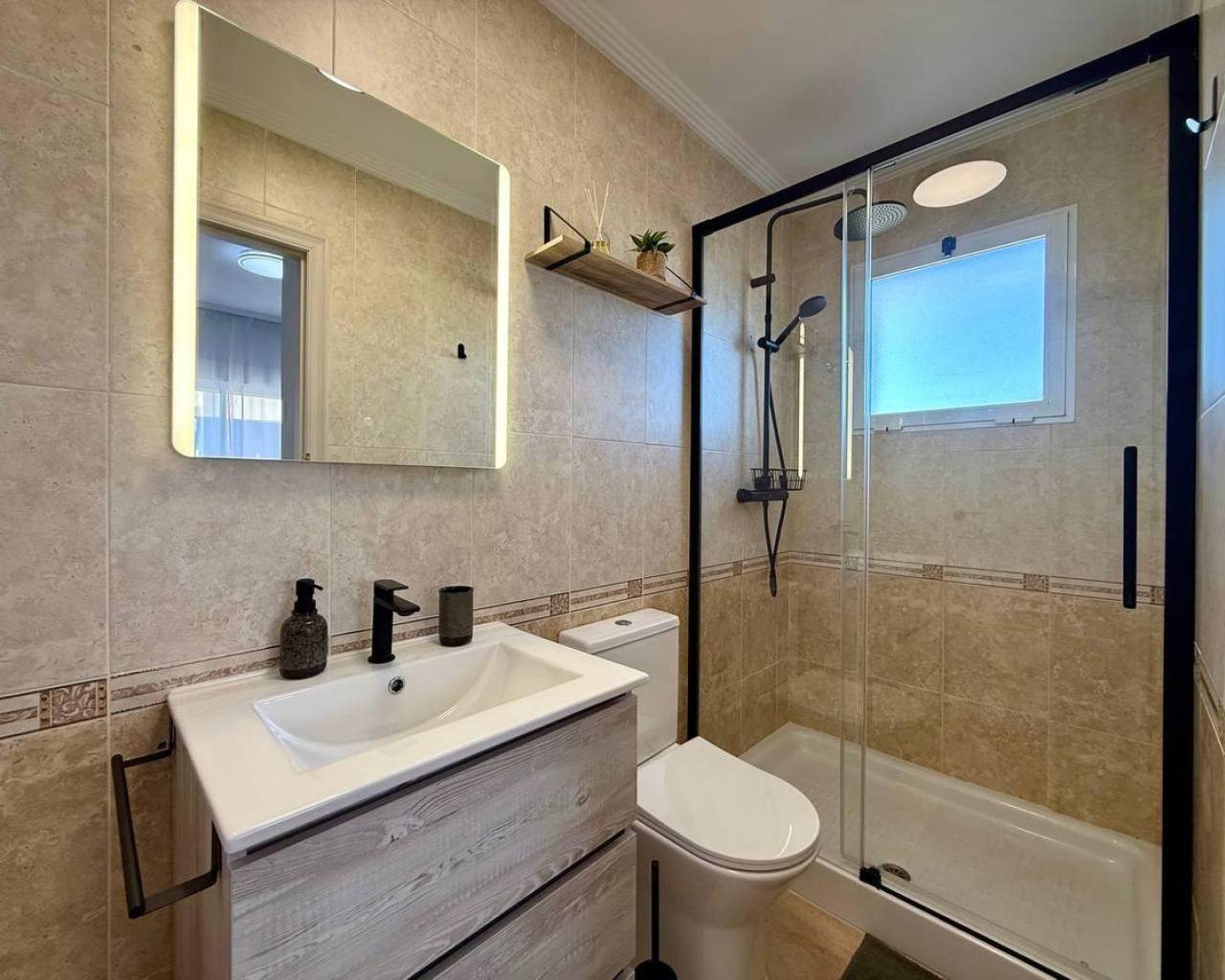 Renovated penthouse in Guardamar del Segura, PUERTO area, 79 m2, 1400 m from the beach, 3 double bedrooms, 2 bathrooms, southeast orientation.Extras: pmr access, central air conditioning, air conditioning, built-in wardrobes, elevator, balcony, garden, bright, light, furniture, communal pool, automatic irrigation, terrace, adapted housing, trees, coast, parks, supermarkets, fenced, sea views, clear views, playgrounds, parking included.