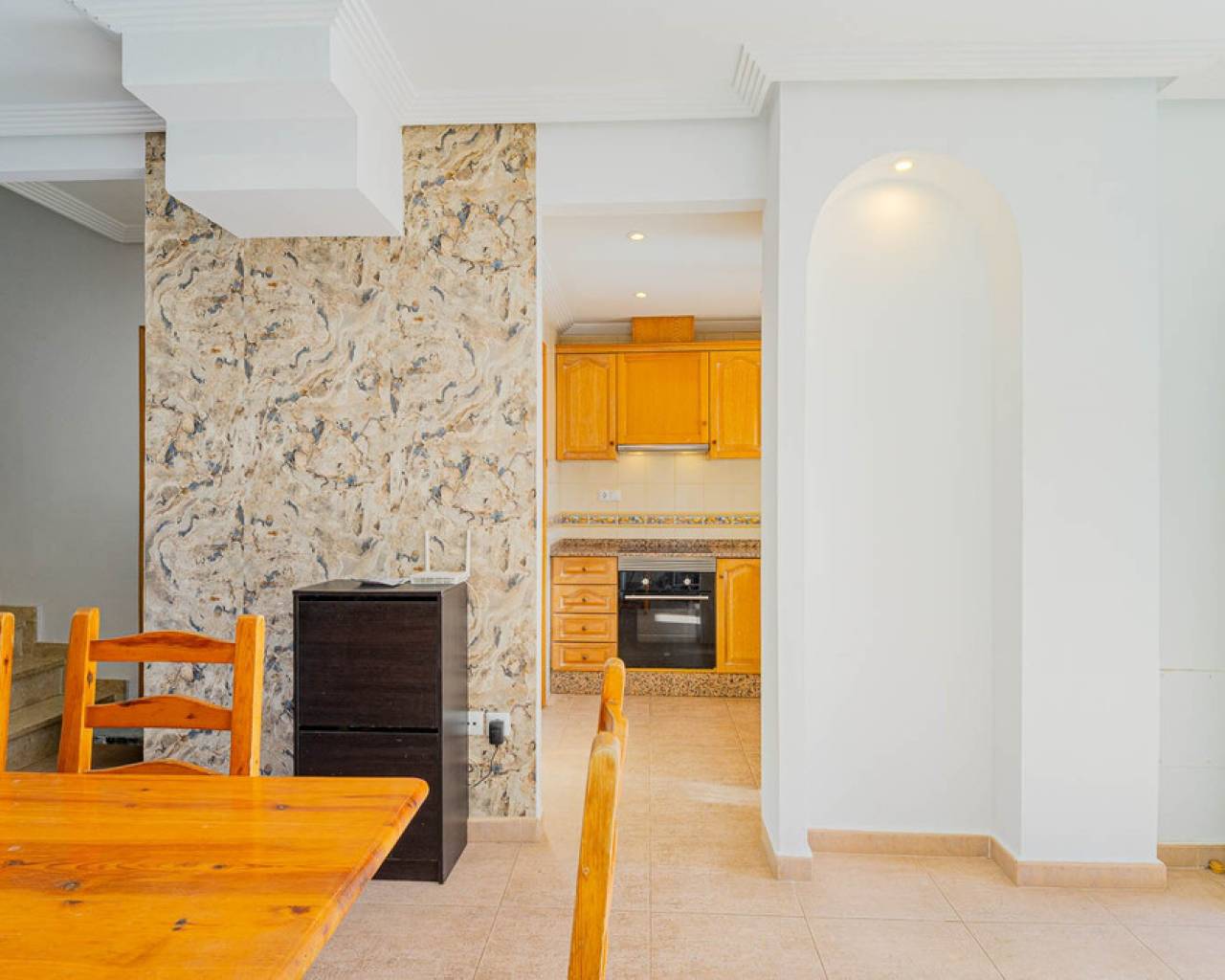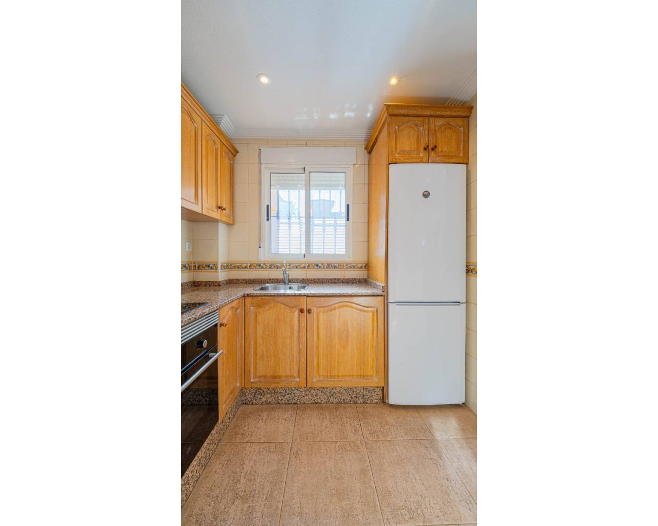 A charming townhouse for sale in Los Altos, located in the prestigious gated residential complex Royal Park on the Costa Blanca. This property is ideal for permanent living, holiday use, or rental investment thanks to its excellent location and well-developed local infrastructure. The townhouse features two spacious bedrooms, one full bathroom, and a guest toilet, as well as two patios and two terraces, allowing you to enjoy the Mediterranean climate all year round. The terrace and solarium offer sea views, making this home especially attractive for those seeking a coastal lifestyle. The ground floor offers a bright living room with direct access to the second patio — a perfect space for outdoor dining and relaxation. The open-plan kitchen is complemented by a practical utility room, while the guest toilet adds extra convenience for residents and visitors. Upstairs, there are two bedrooms and a bathroom, with one bedroom benefiting from its own private terrace. The residential complex boasts beautifully maintained communal areas and a shared swimming pool, ideal for cooling off during the warmer months. Los Altos is known for its comfort and accessibility: supermarkets, shopping centres, banks, medical clinics, and public transport stops are all within walking distance. The Blue Flag beaches of Punta Prima are just 5–7 minutes away by car. With more than 320 sunny days per year, this townhouse represents an excellent opportunity to enjoy a high quality of life on the southern coast of Spain.