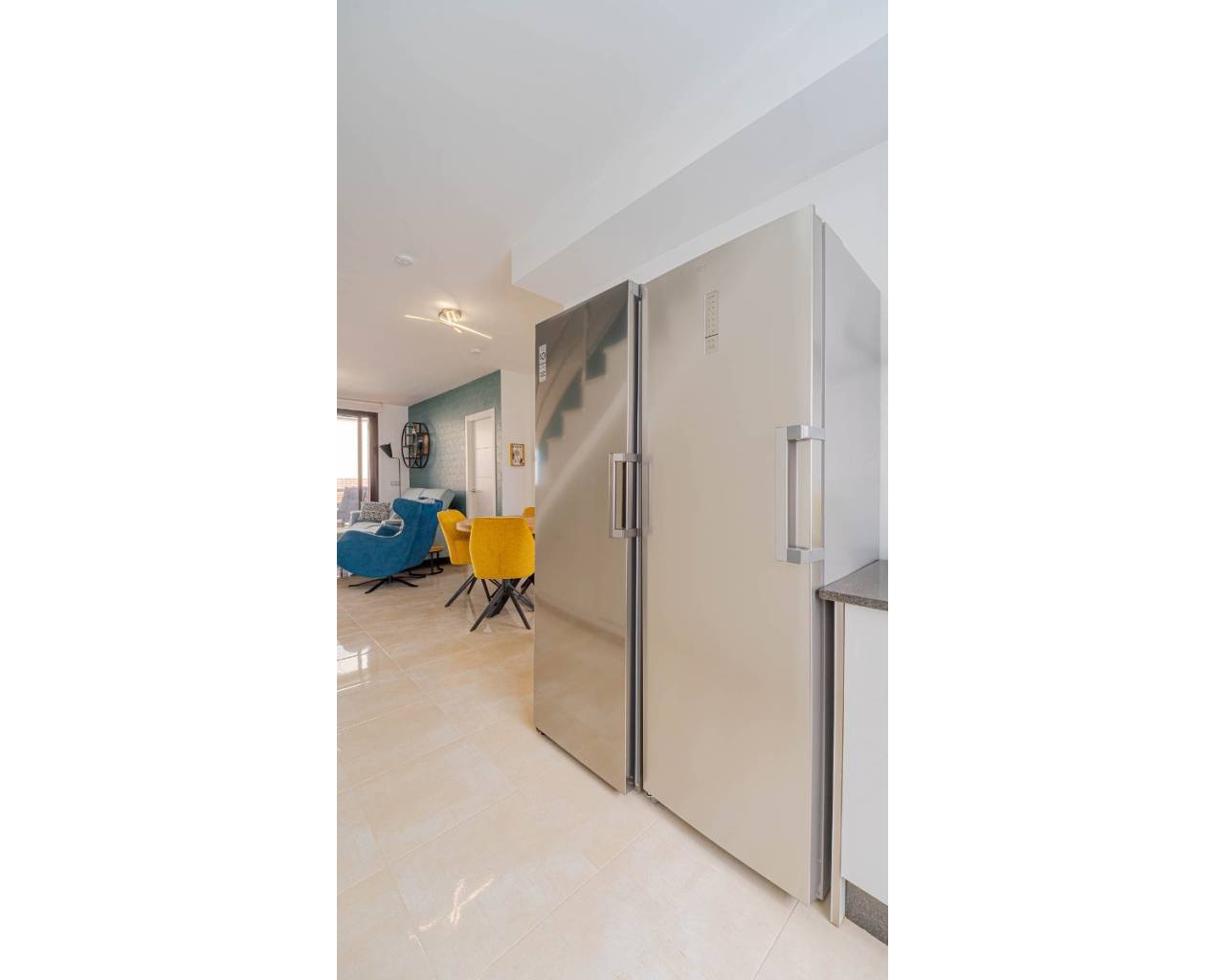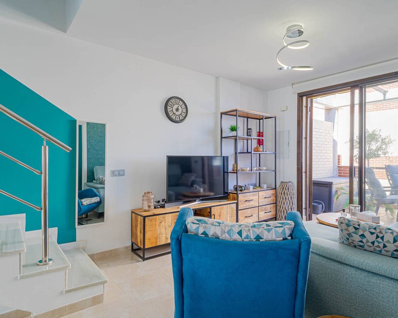 We are pleased to present this modern duplex apartment for sale in  Lomas de Cabo Roig, Orihuela Costa (Costa Blanca South)— an excellent choice for permanent living, holiday use, or rental investment in Spain. The property offers 81.52 m² of living space plus  aprox . 50 m² of terraces, including a spacious main terrace and a private rooftop solarium . Located on the 1st  (top) floor of a modern residential complex built in 2015, this is considered one of the best-positioned units within the community , this is considered one of the best-positioned units within the community — sunny orientation, open views, and no direct overlooking neighbours. Layout & Features Main Level: Bright living-dining area with direct access to a large terrace Fully equipped kitchen2 bedrooms1 bathroom with showerSecurity alarm systemMosquito screens on all windows Upper Level: Spacious master suite with fitted wardrobesSecond bathroom with showerDirect access to a  sunny private roof terrace / solarium with open views  Residential Complex Amenities Large communal swimming poolGymSaunaJacuzziSpa facilitiesUnderground parking space included Prime Location – Cabo Roig, Orihuela Costa Located in one of the most desirable areas of Costa Blanca South: 550 metres from a modern commercial centre with restaurants, supermarket and rooftop lounge barClose to La Zenia Boulevard, the largest shopping centre in the provinceBeaches of Cabo Roig and Campoamor reachable by bike in approx. 15 minutesSeveral golf courses within a short driveAll daily services within walking distance A smart opportunity to own a quality property near the sea in Cabo Roig, Orihuela Costa.