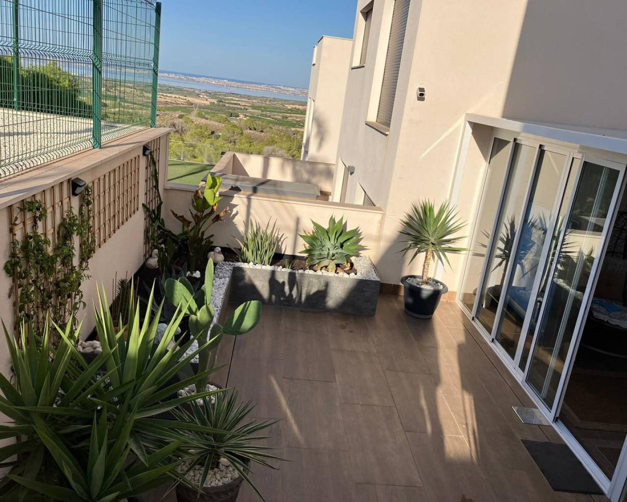 Luxury Ground Floor 2-Bedroom Apartment – Mirador de San Miguel, San Miguel de Salinas Modern ground-floor apartment located in the exclusive Mirador de San Miguel residential area, built in 2021. The property offers 92 m² of built space on a 135 m² plot, providing bright, comfortable living areas and well-designed outdoor spaces. The home features 2 bedrooms and 2 bathrooms, a spacious open-plan living and dining area, and a fully equipped modern open kitchen that connects seamlessly with the main living space. The layout allows direct access to several outdoor areas, including a front terrace, private rear garden, and a covered area with a summer kitchen and relaxation space, perfect for enjoying the Mediterranean climate all year round. The master bedroom is particularly attractive, offering an en-suite bathroom and direct access to the rear garden through sliding glass doors. From here, you can enjoy pleasant views towards the salt lake and the Mediterranean coastline. Additional features include private off-road parking for one car, a utility/laundry area, garden space and air conditioning (not tested). The property is partially furnished, and its south-east orientation ensures plenty of natural light throughout the day. The development is a low-rise residential complex consisting only of ground-floor and upper-floor apartments. Residents can enjoy a large communal swimming pool shared by just 11 properties, creating a quiet and exclusive environment. The location is ideal, just a short drive from all the amenities of San Miguel de Salinas, close to several well-known golf courses, and only 15 minutes by car from the beaches of Mil Palmeras, Campoamor and La Zenia. Two international airports can also be reached in approximately 45 minutes. San Miguel de Salinas is a charming and popular Spanish town surrounded by beautiful countryside, citrus groves and almond trees, and located close to the Sierra Escalona Natural Park. The area offers a wide selection of bars, restaurants and leisure activities, with popular events such as the annual Tapas Route attracting visitors throughout the year. Community fees: €1,275 per year. Fibre optic internet available in the area.