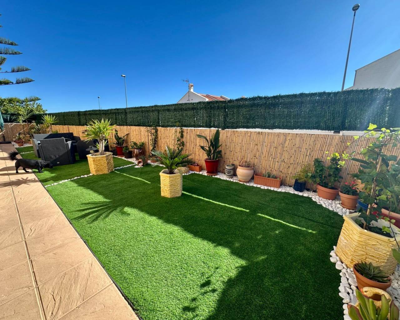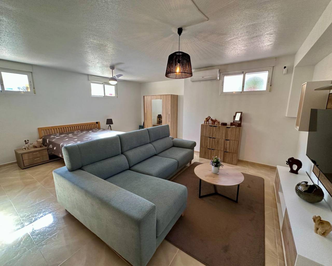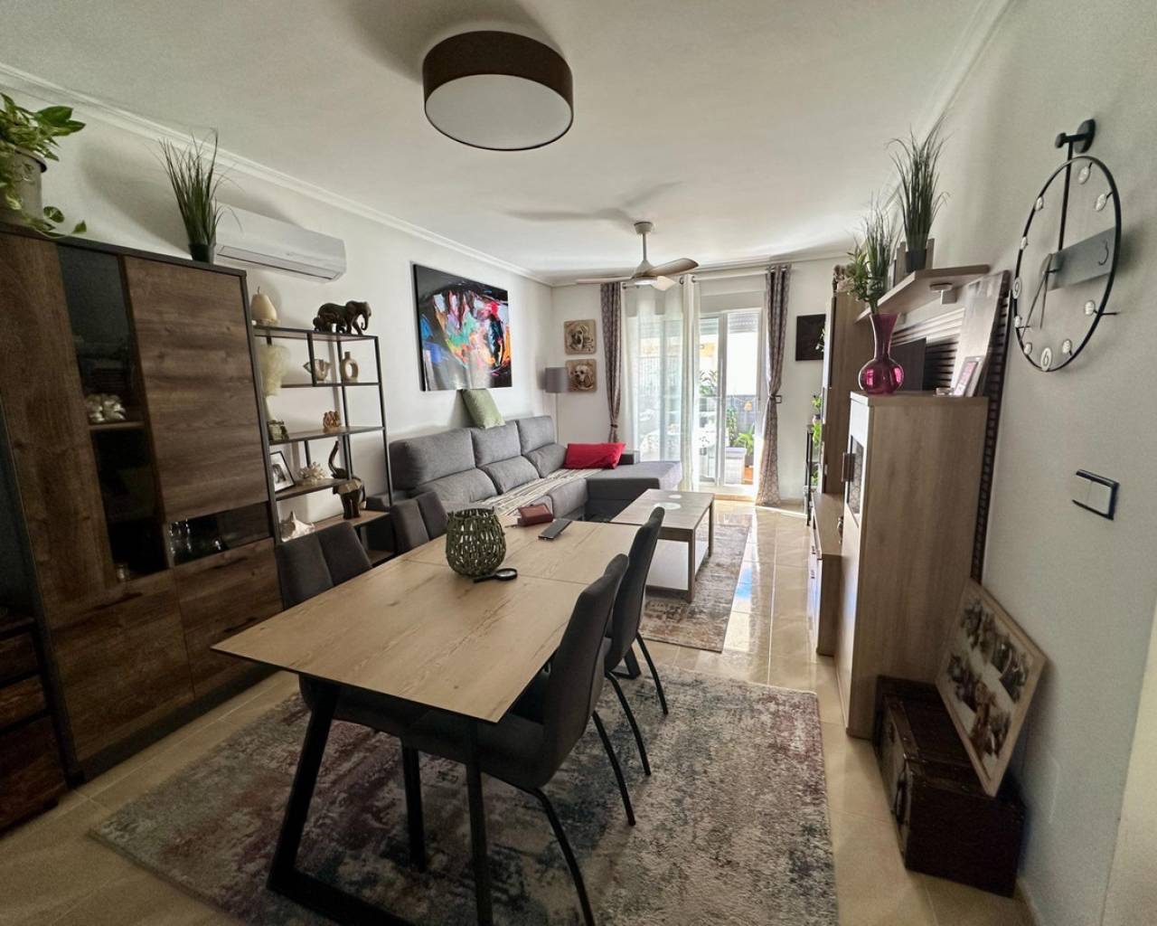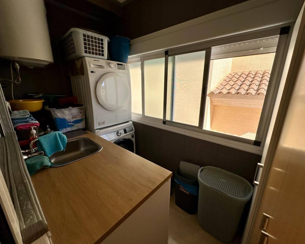 Townhouse with Basement & Solarium in San Miguel de Salinas~This well-presented four-bedroom townhouse is located in a gated community with communal pool in San Miguel de Salinas.~~The property offers a bright living room with access to a sunny terrace, a separate kitchen, one bedroom, and a bathroom on the ground floor. Upstairs you'll find two additional bedrooms, one with a private terrace, plus a family bathroom.~~A private solarium provides open views and all-day sunshine, while the spacious basement has been converted into an extra living area with lounge, bedroom space, and a large storage room.~~Perfect for permanent living or holidays, this home combines space, comfort, and excellent location—just a short drive from Orihuela Costa beaches, golf courses, and local amenities.