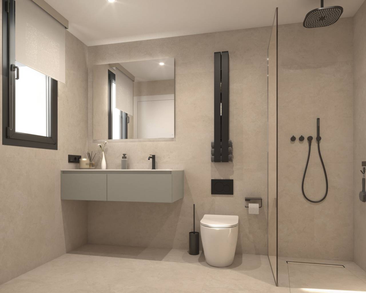 Experience the perfect blend of modern luxury and Mediterranean charm at the exclusive residencial located on the Costa Blanca. Residents enjoy a privileged location just one minute from local bars and restaurants and two minutes from supermarkets, while being only twenty minutes away from the region's finest beaches, prestigious golf courses, and the Alicante-Elche Miguel Hernández Airport. This contemporary project offers nine sophisticated homes featuring one, two, and three-bedroom layouts designed for maximum comfort and style. The architectural design prioritizes spaciousness and functionality, offering diverse living options with generous built area and a large open-plan living and kitchen space. Feature private terraces or patios that invite natural light into every corner of the home. Each residence is crafted with high-quality finishes and practical laundry areas to suit a modern lifestyle. Beyond the individual apartments, this project also provides premium communal amenities including: - A stunning rooftop swimming pool that serves as a private oasis for relaxation. - A secure basement level with private garage spaces and additional storage rooms.