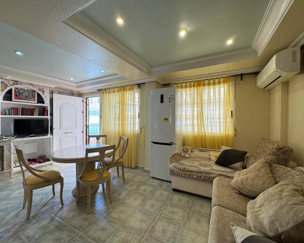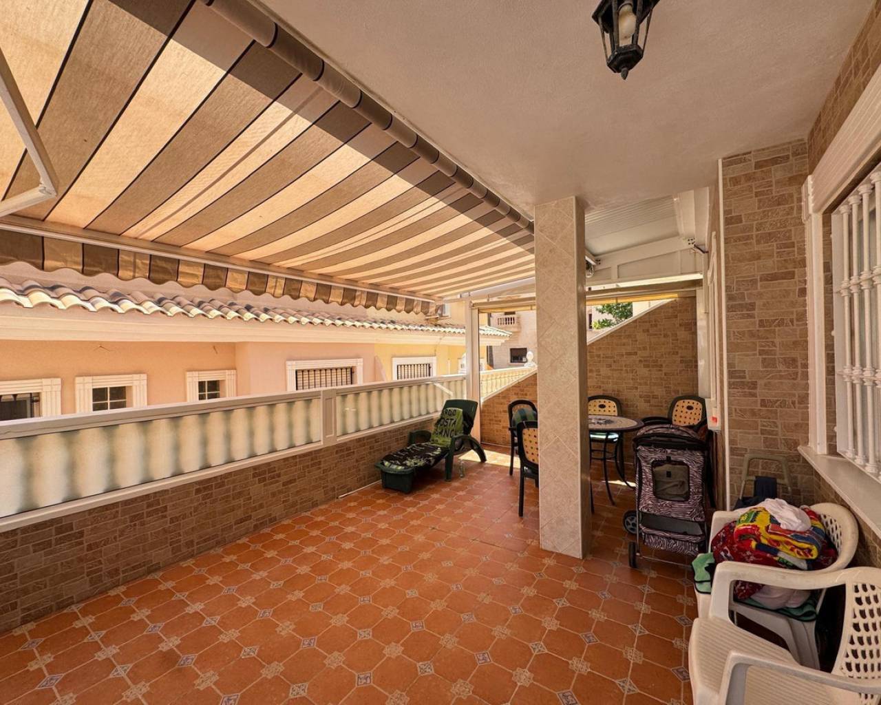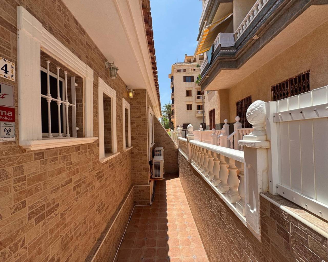 For sale Terraced house. Location Guardamar del Segura (ALICANTE). Total area 91.00 m2. Number of rooms – 3. Number of bedrooms 3. Number of bathrooms 2. Year of construction 2001. Distance to the sea 400 m. Plot area 50 m2. Features: - Communal pool - Solarium - Air conditioning - Lift - Barbecue area