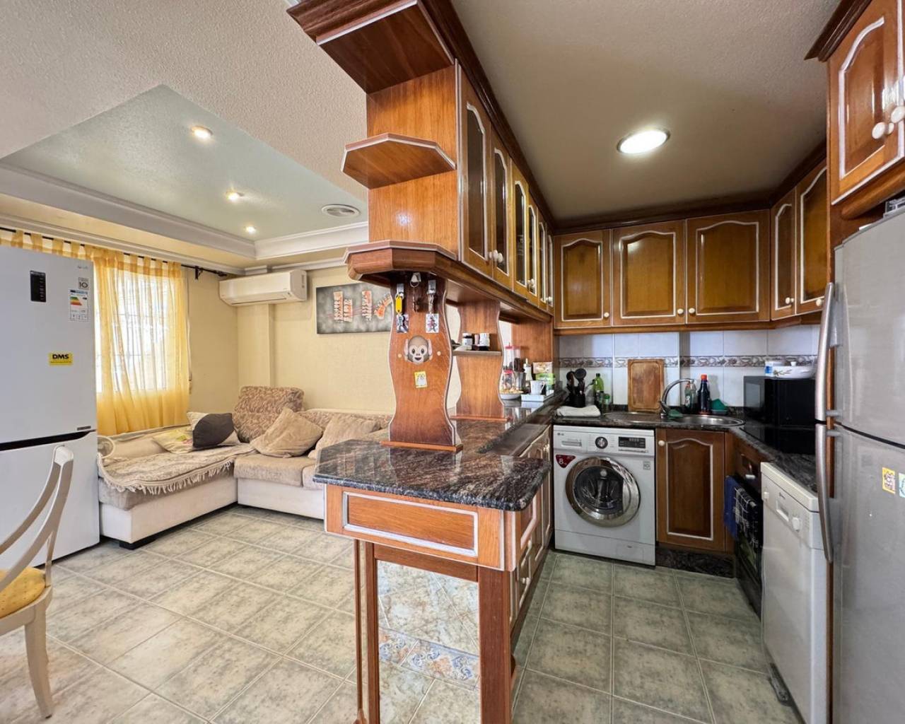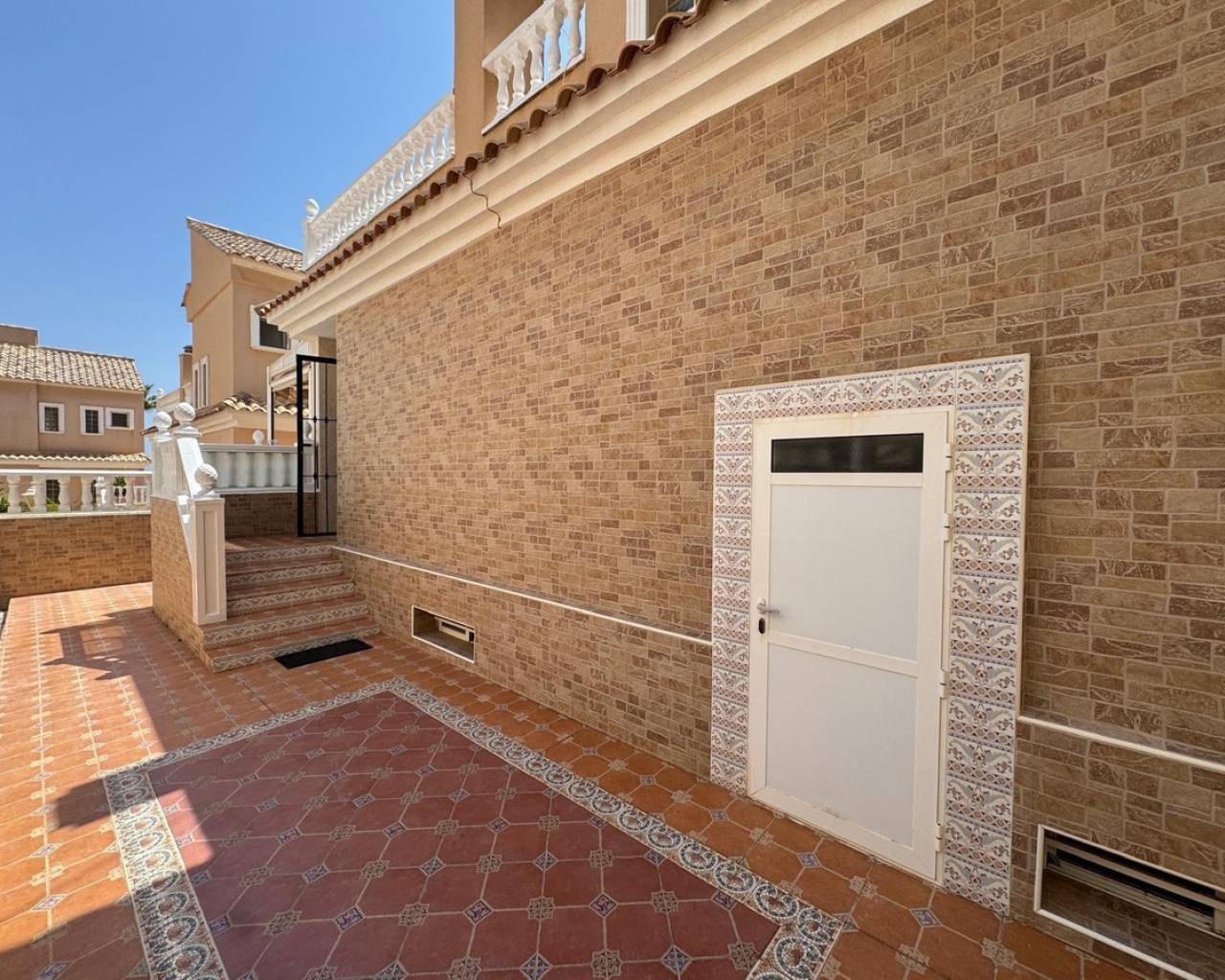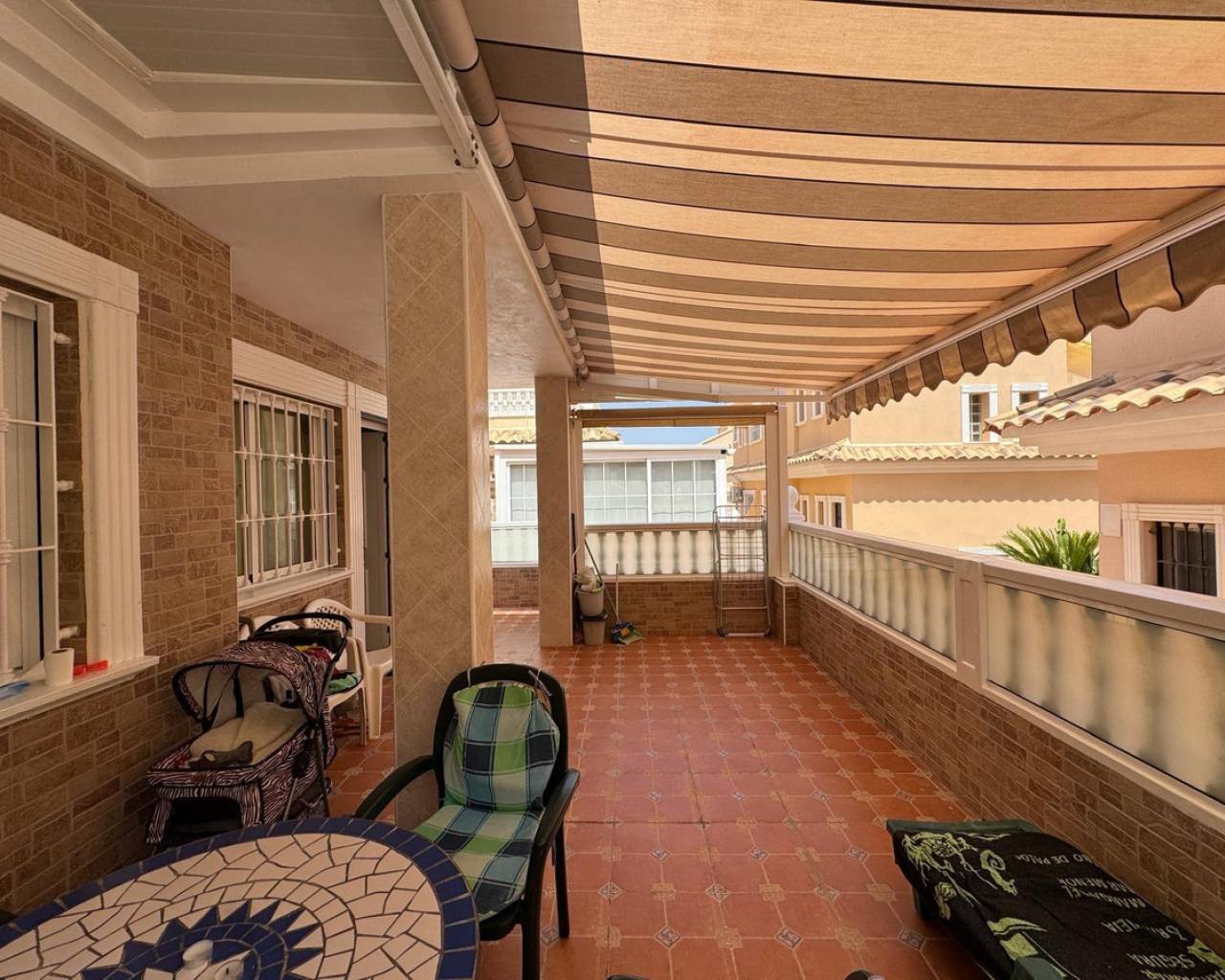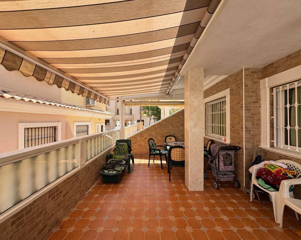 For sale Terraced house. Location Guardamar del Segura (ALICANTE). Total area 91.00 m2. Number of rooms – 3. Number of bedrooms 3. Number of bathrooms 2. Year of construction 2001. Distance to the sea 400 m. Plot area 50 m2. Features: - Communal pool - Solarium - Air conditioning - Lift - Barbecue area