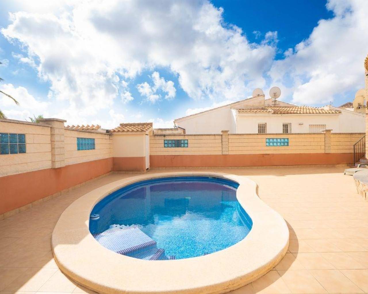 For sale Villa. Location Orihuela Costa (ALICANTE). Total area 79.00 m2. Number of rooms – 4. Number of bedrooms 4. Number of bathrooms 3. Year of construction 1989. Distance to the sea 2.50 km. Plot area 353 m2.