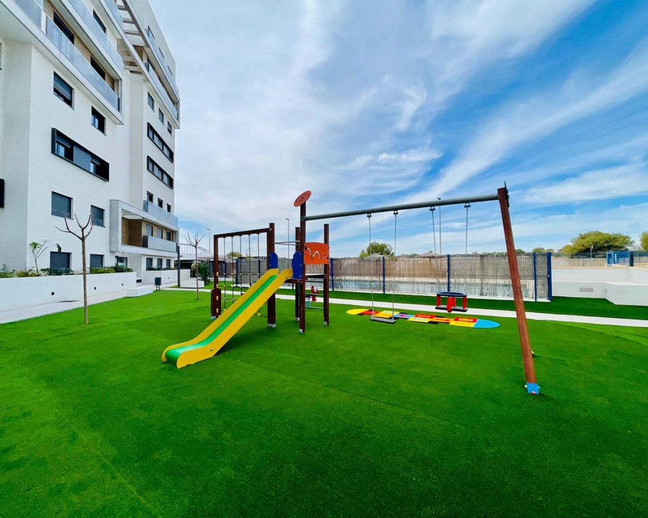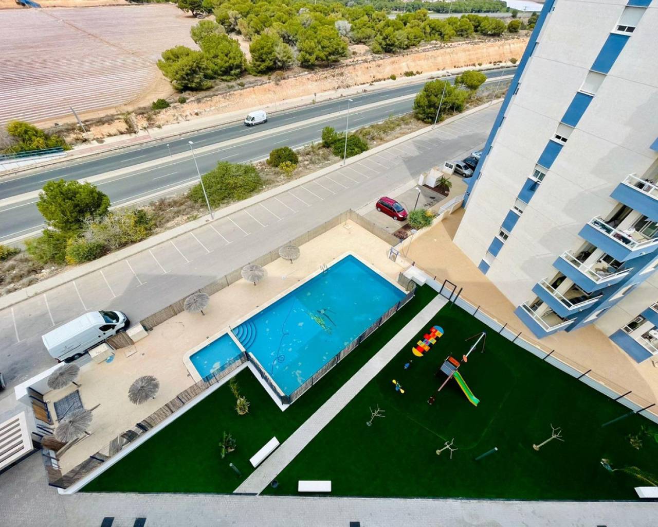 For sale Apartment. Location Orihuela Costa (ALICANTE). Total area 97.00 m2. Number of rooms – 2. Number of bedrooms 2. Number of bathrooms 2. Year of construction 2024. Distance to the sea 600 m. Orientation South. Features: - Communal pool - Solarium - Air conditioning - Lift - Central air conditioning