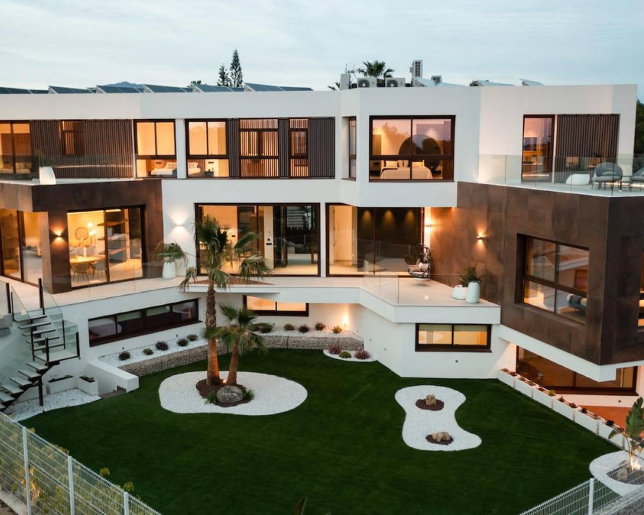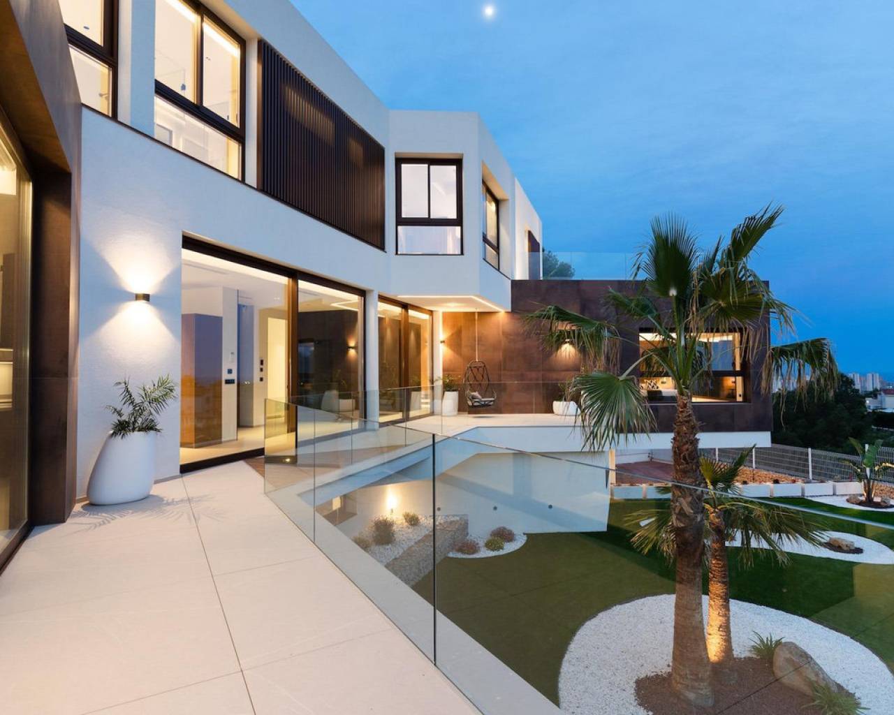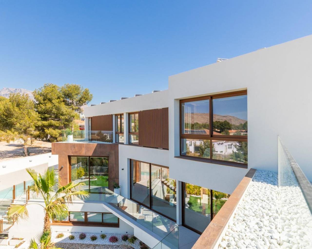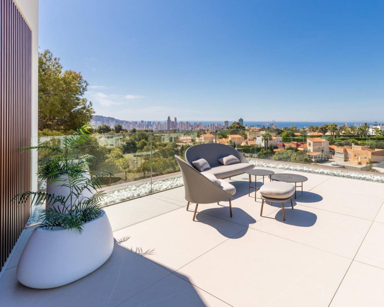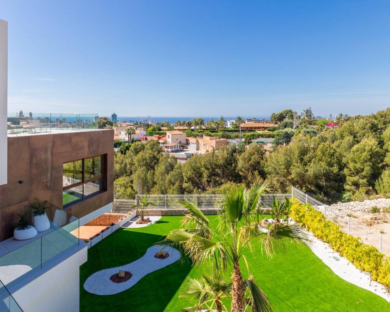 For sale Luxury Villa. Location Benidorm (ALICANTE). Total area 535.00 m2. Number of rooms – 4. Number of bedrooms 4. Number of bathrooms 7. Year of construction 2023. Distance to the sea 2.00 km. Plot area 1759 m2. Orientation South. Features: - Sea views - Private pool - Solarium - Air conditioning - Alarm system - Lift