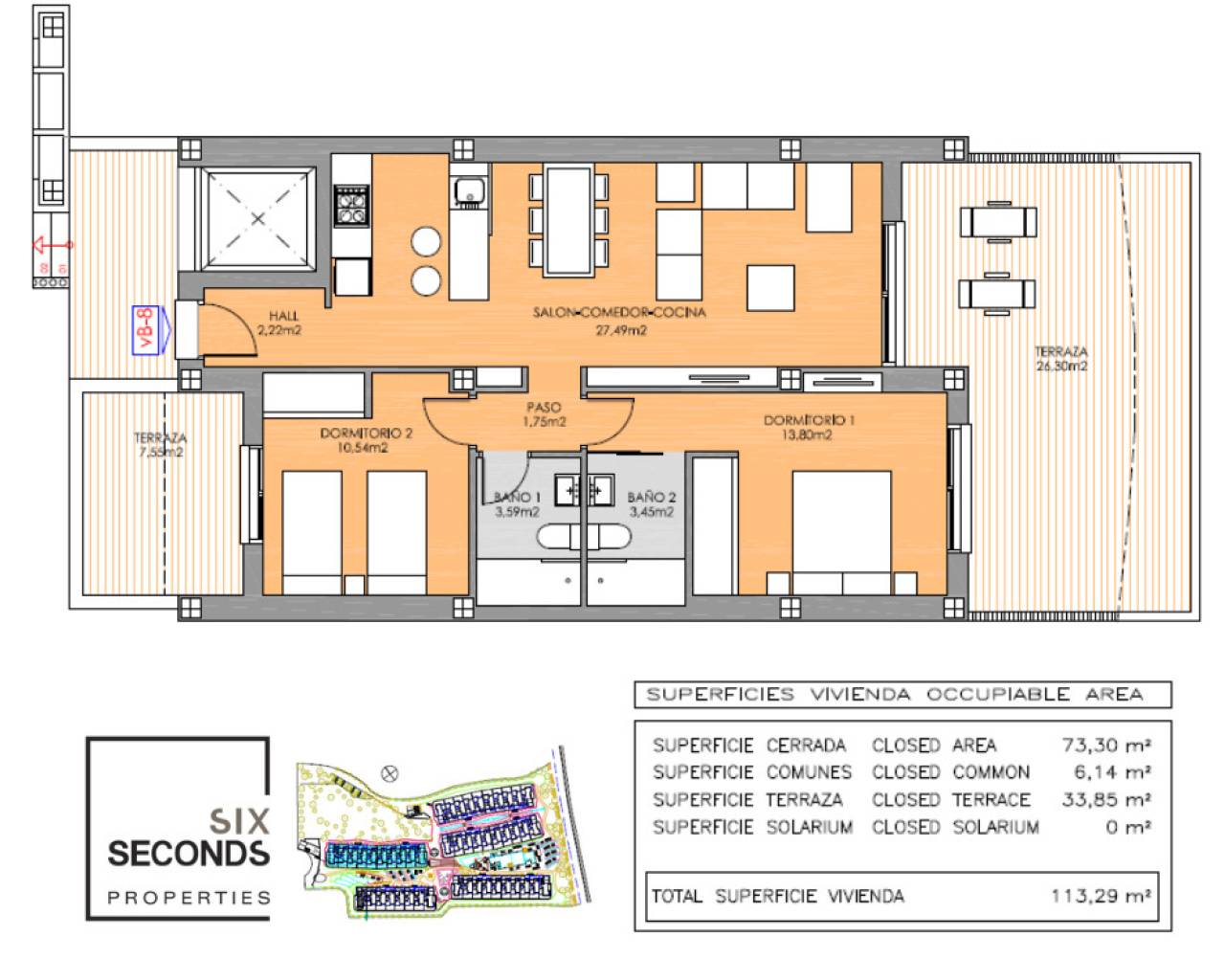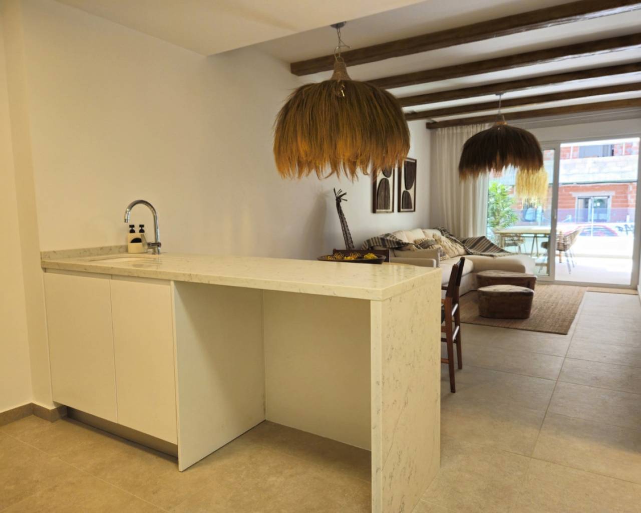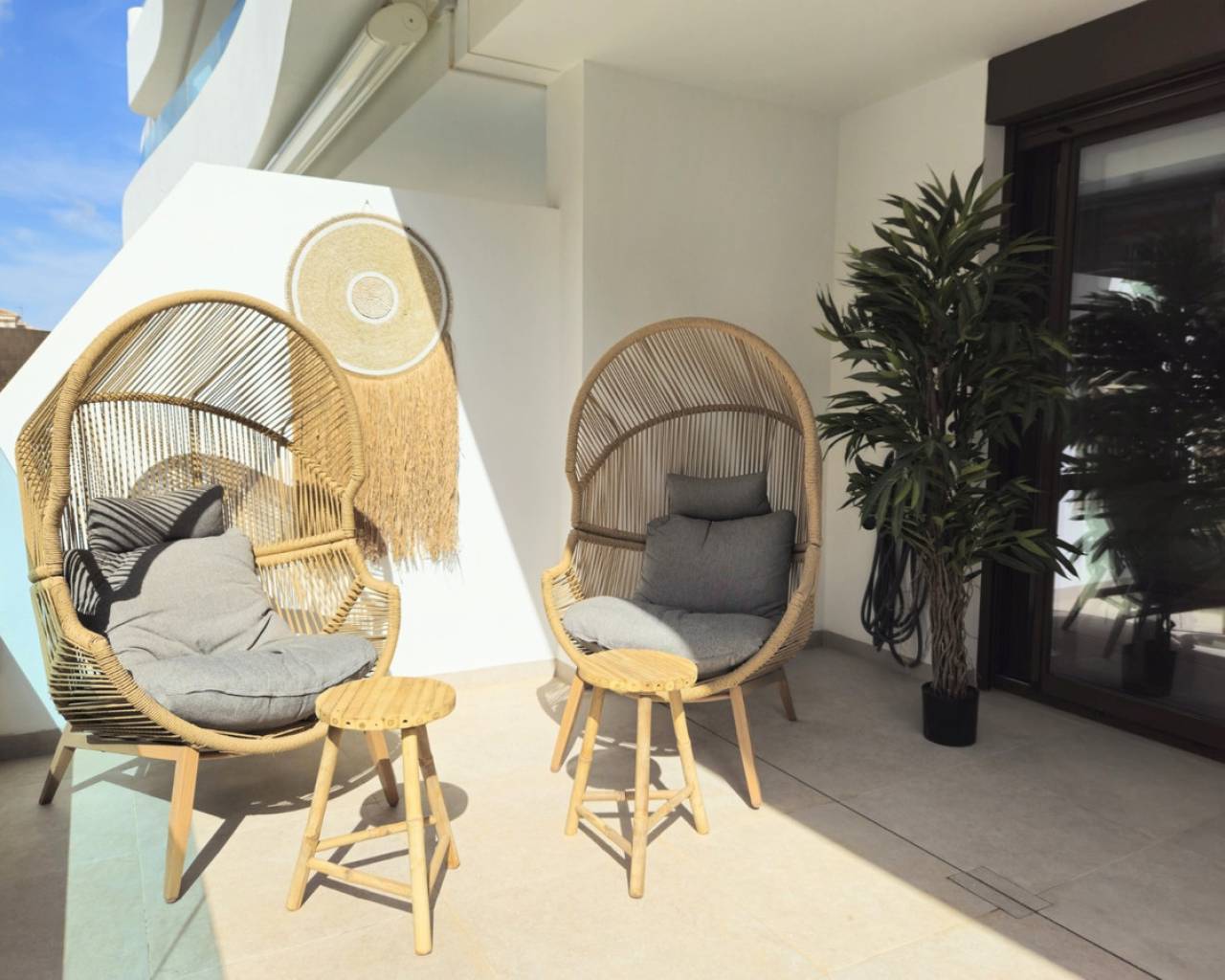 Discover this elegant ground-floor apartment in Playa Flamenca, Orihuela Costa , a prime location on the Costa Blanca that combines tranquility, Mediterranean lifestyle, and proximity to all amenities. This welcoming Mediterranean-style home features two bedrooms and two bathrooms , designed to offer comfort, functionality, and natural light in every space. The heart of the home is a modern living-dining room with an open-plan kitchen , a contemporary concept that seamlessly connects with the rest of the apartment and creates an ideal environment for both daily life and entertaining. From the living room, you can access a pleasant private terrace , perfect for enjoying the sunny climate year-round, having breakfast al fresco, or relaxing at the end of the day. The property is part of a well-maintained complex with a communal swimming pool , surrounded by communal areas ideal for relaxation and leisure. Its excellent location provides easy access to the sea and the beaches of Orihuela Costa , as well as prestigious golf courses , the popular La Zenia shopping center , and a wide range of restaurants, shops, and services . This property represents an ideal opportunity both as a primary residence , a second home on the Costa Blanca or a real estate investment , combining strategic location, comfort and the authentic Mediterranean lifestyle.