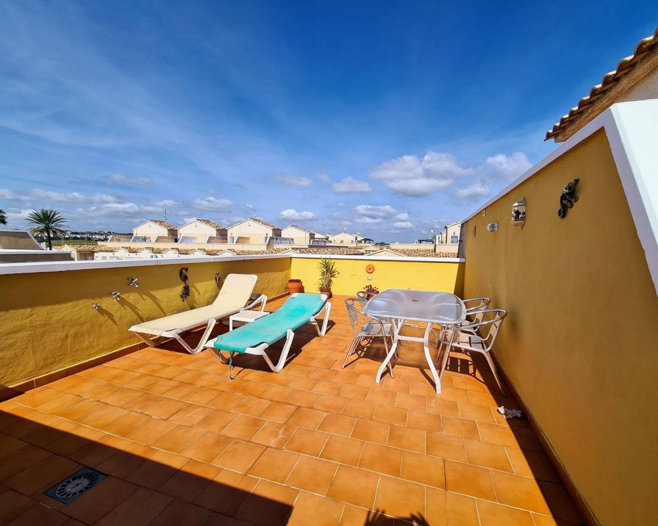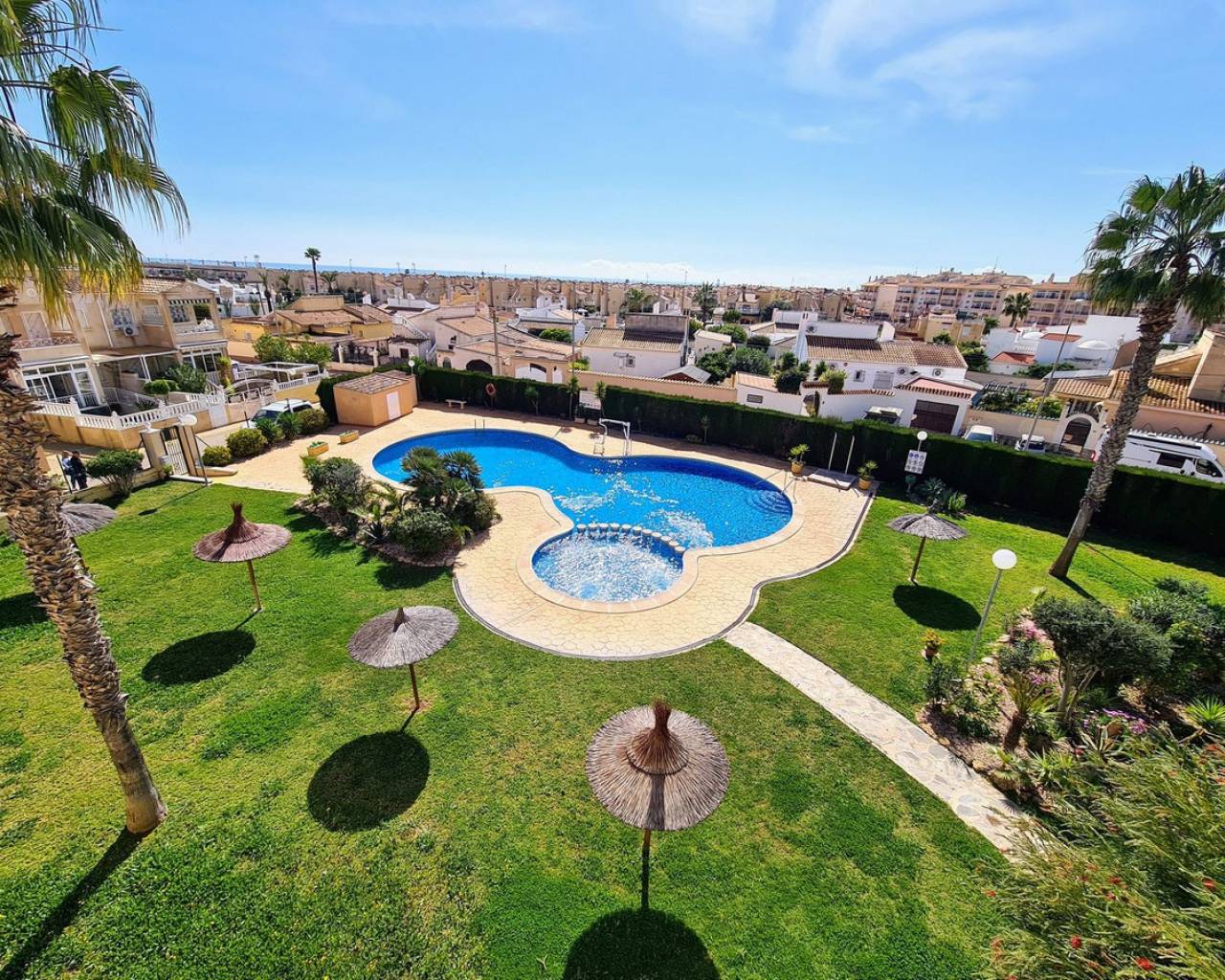 We are proud to present to you this Fabulous Penthouse Apartment Located in the popular area of Playa Flamenca and within walking distance to bars, restaurants and supermarket. The property consists of 2 bedrooms, 1 bathroom, living/dining area and a fully fitted kitchen. The property benefits private balcony, roof solarium with beautiful views of the communal gardens and swimming pool, air conditioning and a communal swimming pool. Playa Flamenca is near to all, i.e. blue-flag beaches, championship golf, tennis, water sports, aqua parks, and go-karting. There are a range of watersports for which you can hire equipment at several locations along the beach to hire a boat for a day trip to Tabarca island or just a fishing trip to horse riding and walking. To fill the gap a little you may want to do a bit of shopping. Playa Flamenca has a well known Saturday market and the boulevard shopping mall is just down the road from the market. Every golfer's Mediterranean dream, with 3 beautiful championship courses of international prestige, within a 10 minutes drive from Playa Flamenca. The Flamenca Beach commercial centre and Via Park are the main locations for bars, shops and restaurants. This lively area has a variety of restaurants serving cuisine from all corners of the globe as well as there being plenty of live entertainment in the many bars. For food shopping we recommend the Mercadona supermarket.