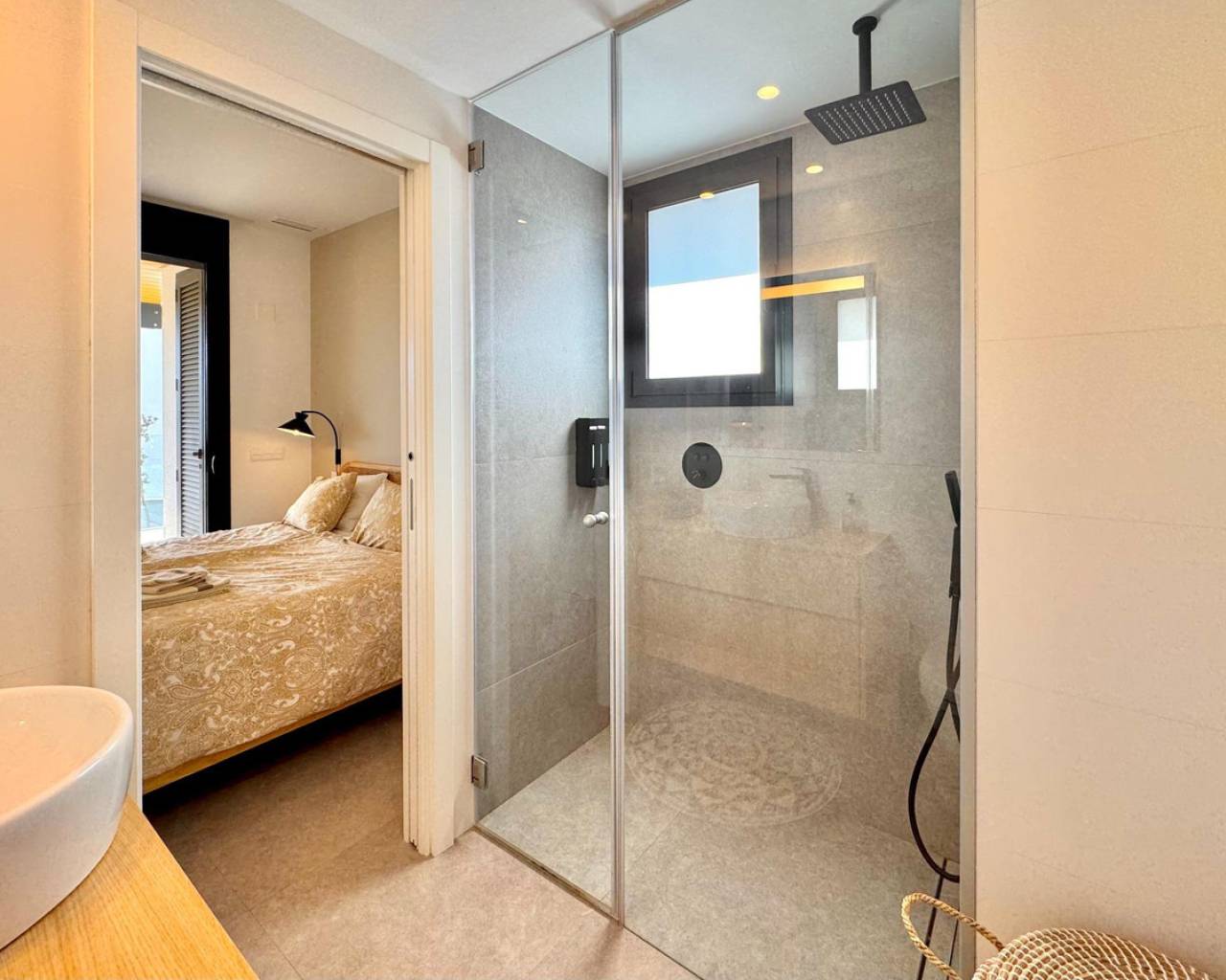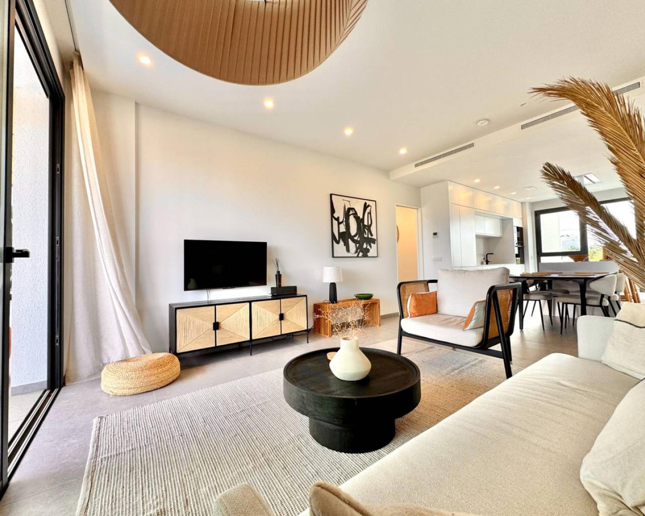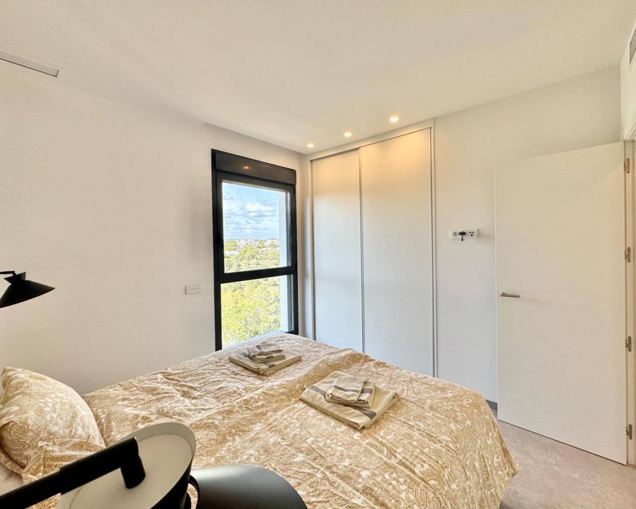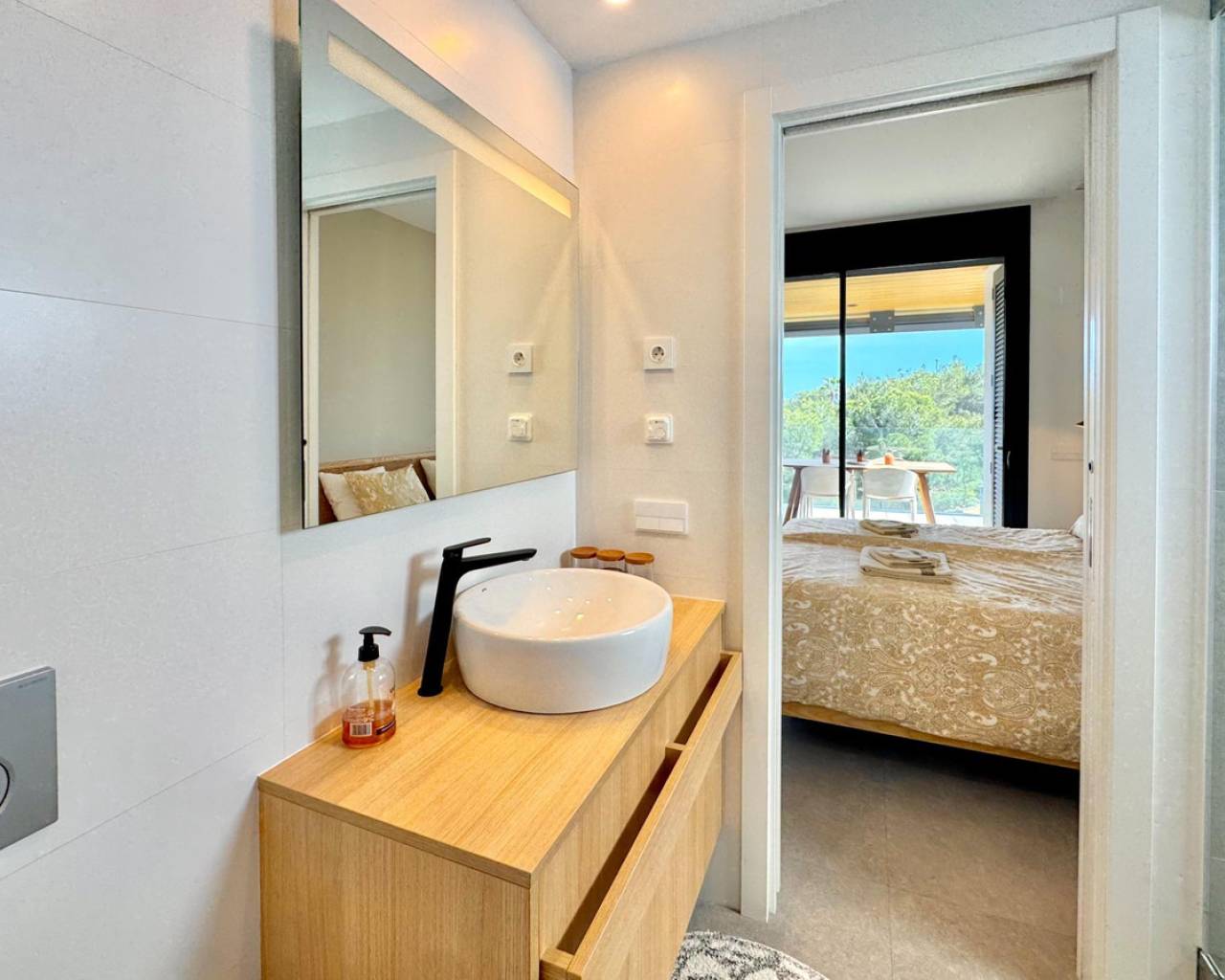 Sunny and modern 2-bedroom apartment in Las Colinas Golf Step into this bright and modern apartment where comfort, style, and light come together beautifully. The open-plan kitchen and living room create a welcoming space for cooking, relaxing, or spending time with family and friends, with plenty of natural light. From the living room, you have direct access to the sunny balcony, perfect for morning coffee, evening drinks, or a quiet moment with a book. The master bedroom features an en-suite bathroom and direct access to the balcony, providing a peaceful retreat at the end of the day. The second bedroom is versatile and can be used as a guest room, office, or extra space for family and friends. Additional features include a private garage, storage room, and access to a well-maintained community pool, ideal for cooling off on warm days or enjoying the Spanish sun. Located in a tranquil setting yet close to restaurants, cafés, supermarkets, and beautiful beaches, this apartment offers the perfect balance of relaxed living and convenience.