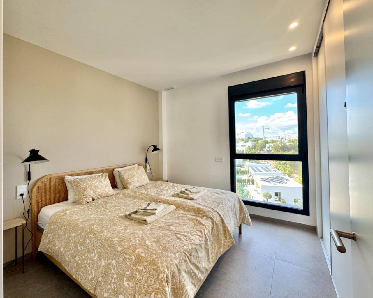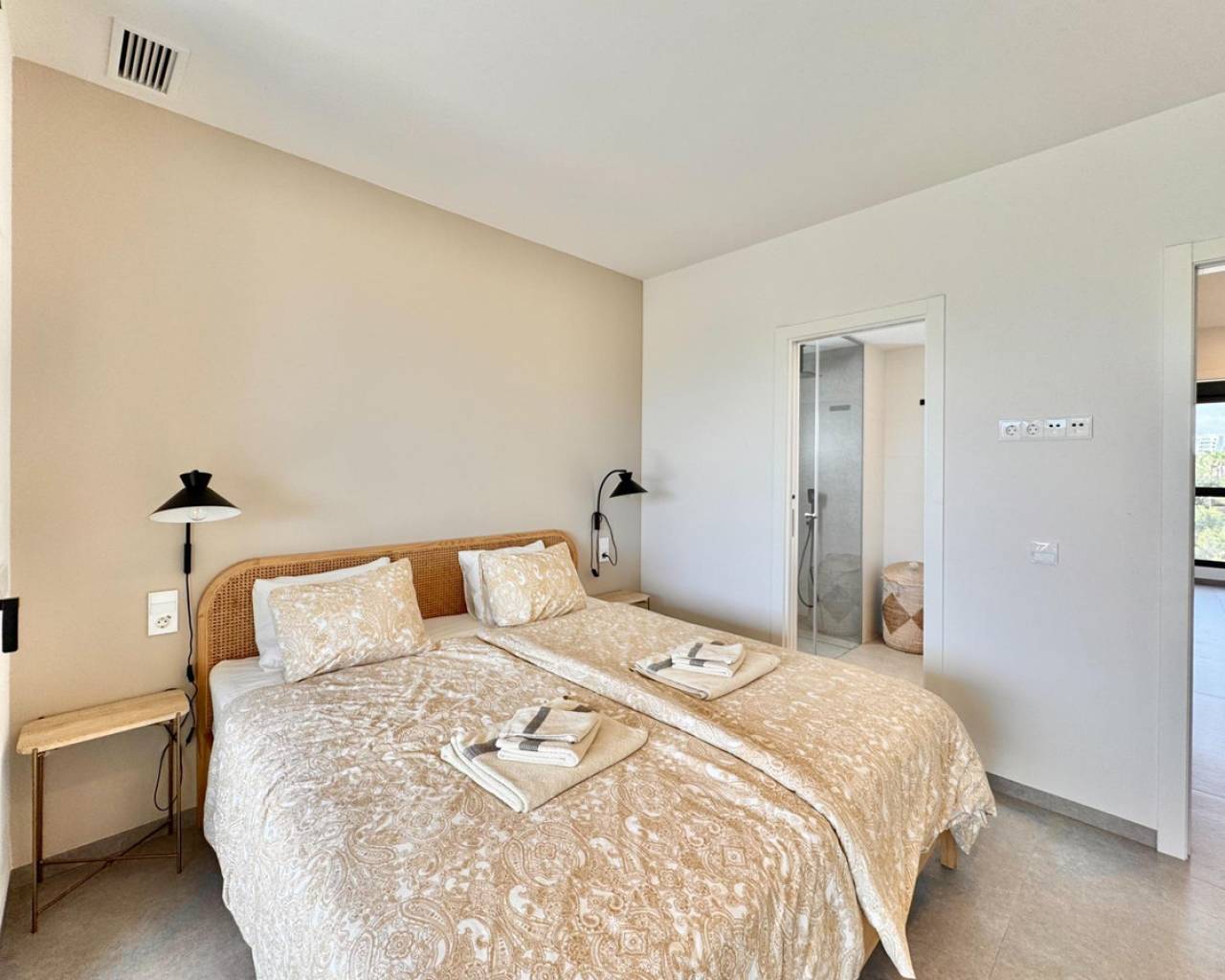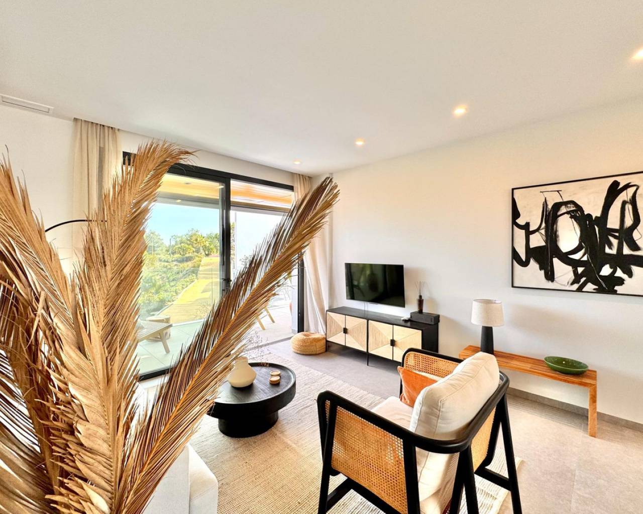 Sunny and modern 2-bedroom apartment in Las Colinas Golf Step into this bright and modern apartment where comfort, style, and light come together beautifully. The open-plan kitchen and living room create a welcoming space for cooking, relaxing, or spending time with family and friends, with plenty of natural light. From the living room, you have direct access to the sunny balcony, perfect for morning coffee, evening drinks, or a quiet moment with a book. The master bedroom features an en-suite bathroom and direct access to the balcony, providing a peaceful retreat at the end of the day. The second bedroom is versatile and can be used as a guest room, office, or extra space for family and friends. Additional features include a private garage, storage room, and access to a well-maintained community pool, ideal for cooling off on warm days or enjoying the Spanish sun. Located in a tranquil setting yet close to restaurants, cafés, supermarkets, and beautiful beaches, this apartment offers the perfect balance of relaxed living and convenience.