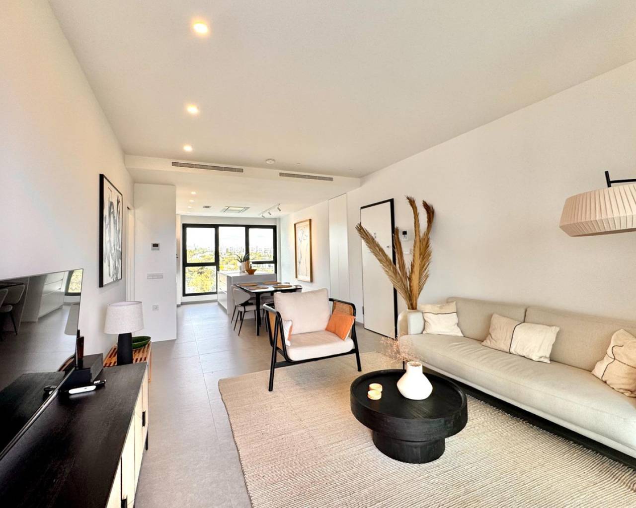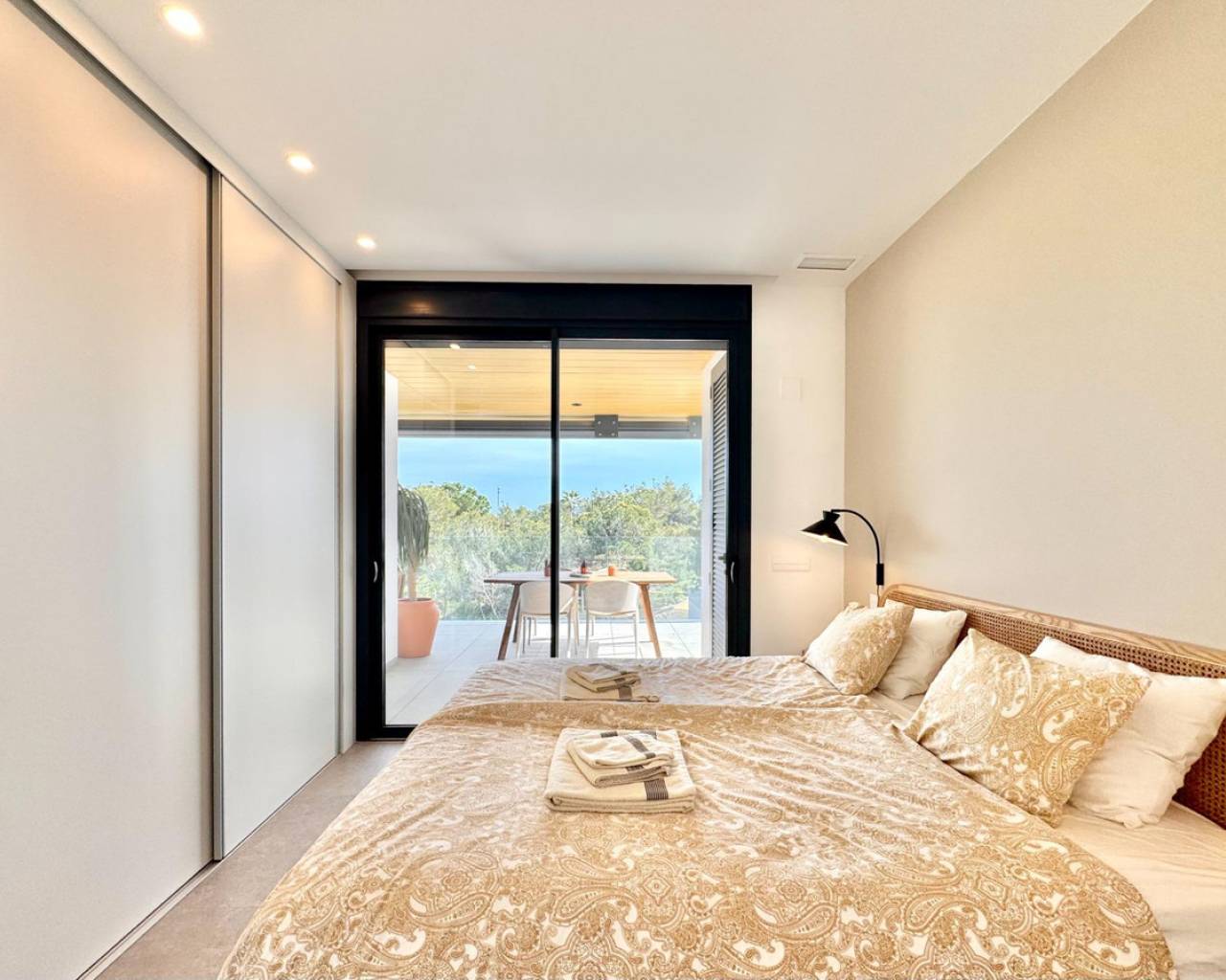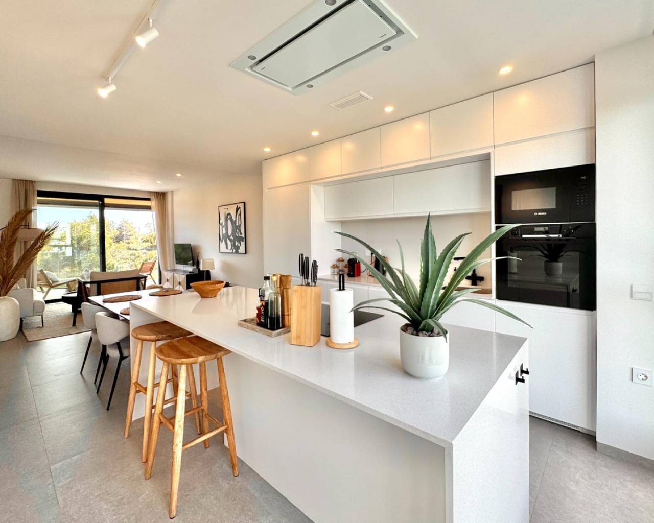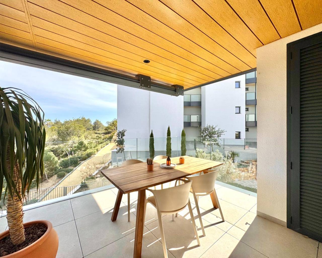 Sunny and modern 2-bedroom apartment in Las Colinas Golf Step into this bright and modern apartment where comfort, style, and light come together beautifully. The open-plan kitchen and living room create a welcoming space for cooking, relaxing, or spending time with family and friends, with plenty of natural light. From the living room, you have direct access to the sunny balcony, perfect for morning coffee, evening drinks, or a quiet moment with a book. The master bedroom features an en-suite bathroom and direct access to the balcony, providing a peaceful retreat at the end of the day. The second bedroom is versatile and can be used as a guest room, office, or extra space for family and friends. Additional features include a private garage, storage room, and access to a well-maintained community pool, ideal for cooling off on warm days or enjoying the Spanish sun. Located in a tranquil setting yet close to restaurants, cafés, supermarkets, and beautiful beaches, this apartment offers the perfect balance of relaxed living and convenience.