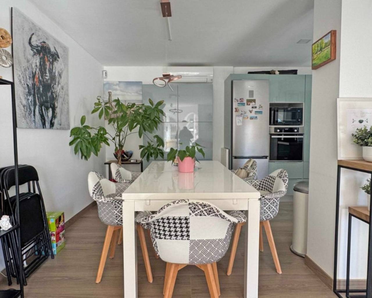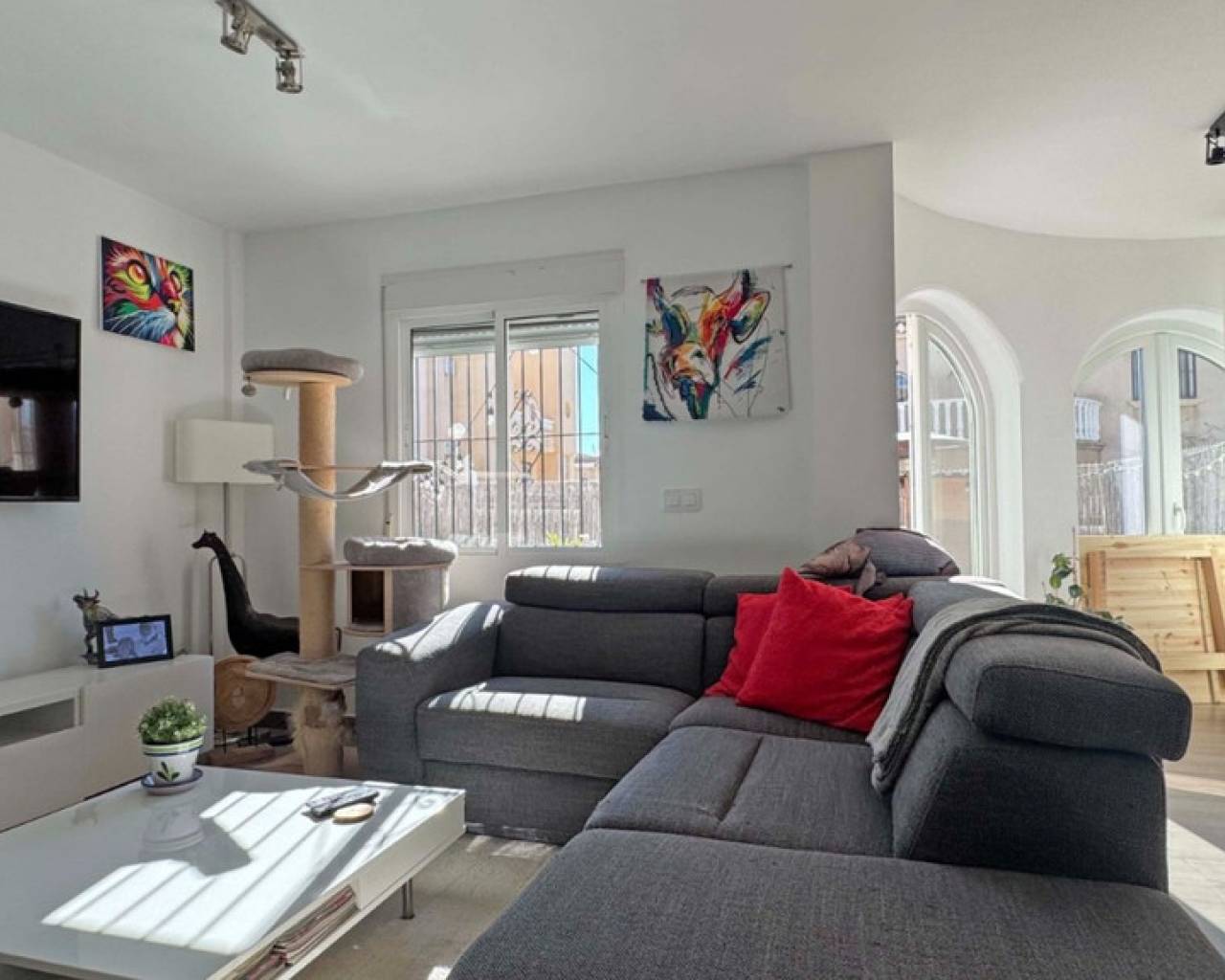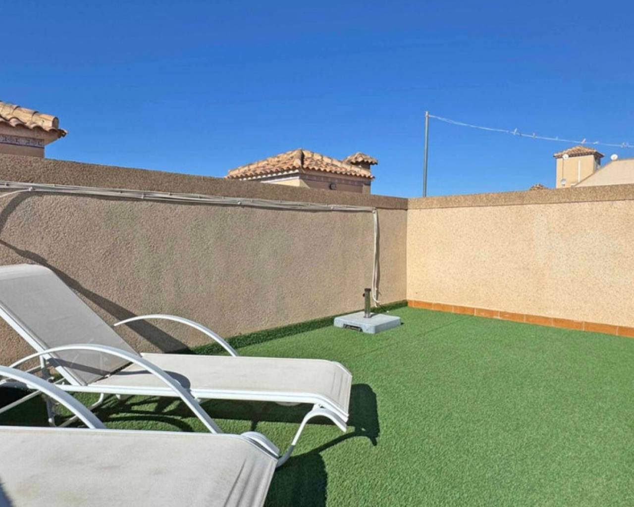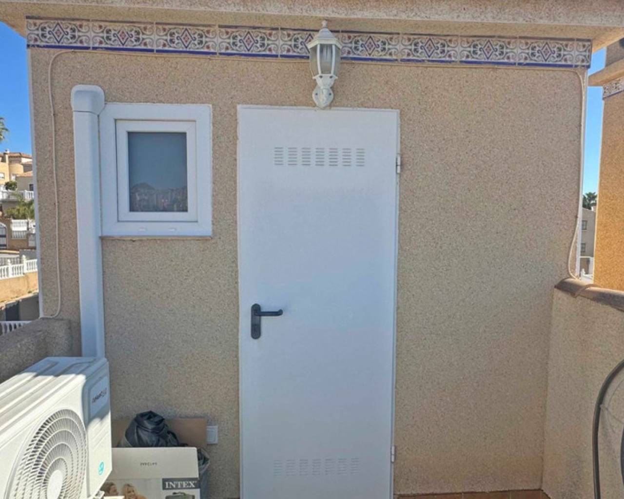 Located in the sought-after Zodiaco V community, this beautifully renovated Zodiaco-style quad villa is an excellent property for sale in Villamartín Orihuela Costa, offering modern living, generous outdoor space, and a fantastic Mediterranean lifestyle close to all amenities. The property has been completely refurbished throughout, including new flooring, modern kitchen, updated bathrooms, electrics, plastering, and contemporary lighting, creating a stylish and move-in-ready home. Set on a spacious private plot, the villa features a large tiled terrace and a private swimming pool with heated Jacuzzi section, perfect for enjoying the Costa Blanca climate all year round. The outdoor space provides plenty of room for sunbathing, outdoor dining, and entertaining guests. Residents also benefit from access to a communal swimming pool within the urbanisation. Inside, the ground floor offers a bright lounge-dining area, a modern fitted kitchen, and a contemporary bathroom with walk-in shower and utility area. Upstairs you will find two double bedrooms with fitted wardrobes and a fully renovated family bathroom. The master bedroom enjoys access to a private balcony. From the landing, stairs lead to the private roof solarium, finished with artificial grass and offering an ideal space for relaxing or entertaining. On this level there is also an additional air-conditioned room, perfect as a third bedroom, home office, or storage space. The villa is located just 500 metres from shops, bars, restaurants, and public transport, while La Fuente commercial centre, Villamartín Plaza, Zenia Boulevard, and several championship golf courses are all within easy reach. Thanks to its excellent location and full renovation, this property is ideal as a home near golf courses and the beaches of Orihuela Costa, and represents an excellent holiday home or investment property in Costa Blanca South.