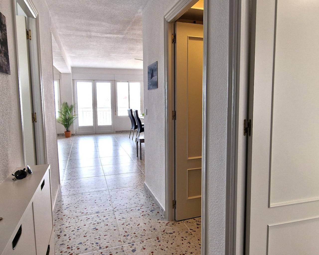 This stunning frontline two-bedroom apartment in Playa de Los Locos is located on the 6th floor and could be exactly the property you have been searching for. Easily accessed by elevator, the apartment was originally designed as a three-bedroom, two-bathroom home. The property was fully renovated in 2025, featuring brand-new flooring throughout, a stylishly updated bathroom, and a modern fully fitted kitchen. It is tastefully furnished with contemporary pieces and high-quality finishes, creating a comfortable and elegant living space. For added practicality, the apartment also benefits from a separate laundry room, enhancing everyday convenience and functionality. From every room, you can enjoy stunning panoramic sea views, creating a bright and relaxing coastal atmosphere throughout the apartment. Los Locos Beach is located just at the foot of the building, allowing you to step straight onto the promenade and sand within moments. A wide range of local amenities, including shops, restaurants, and cafés, are all within easy walking distance, and the nearby bus route provides convenient connections to the rest of Torrevieja and surrounding areas. Act fast! Early viewing is recommended as this exceptional property will not stay on the market for long!