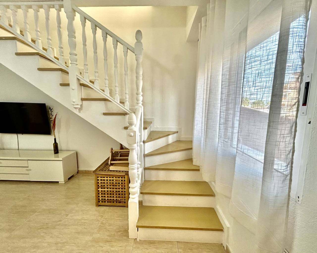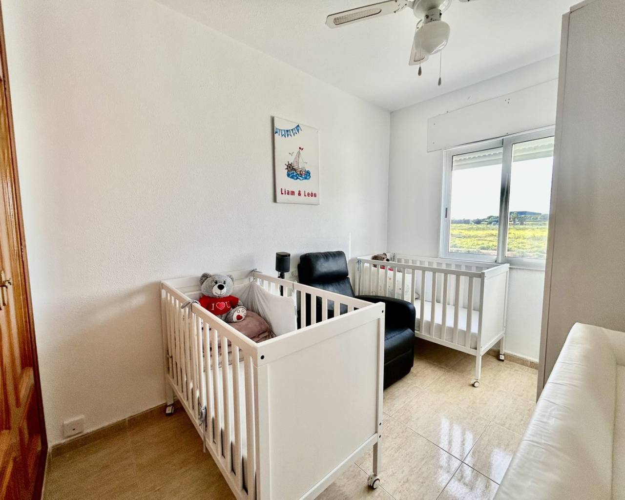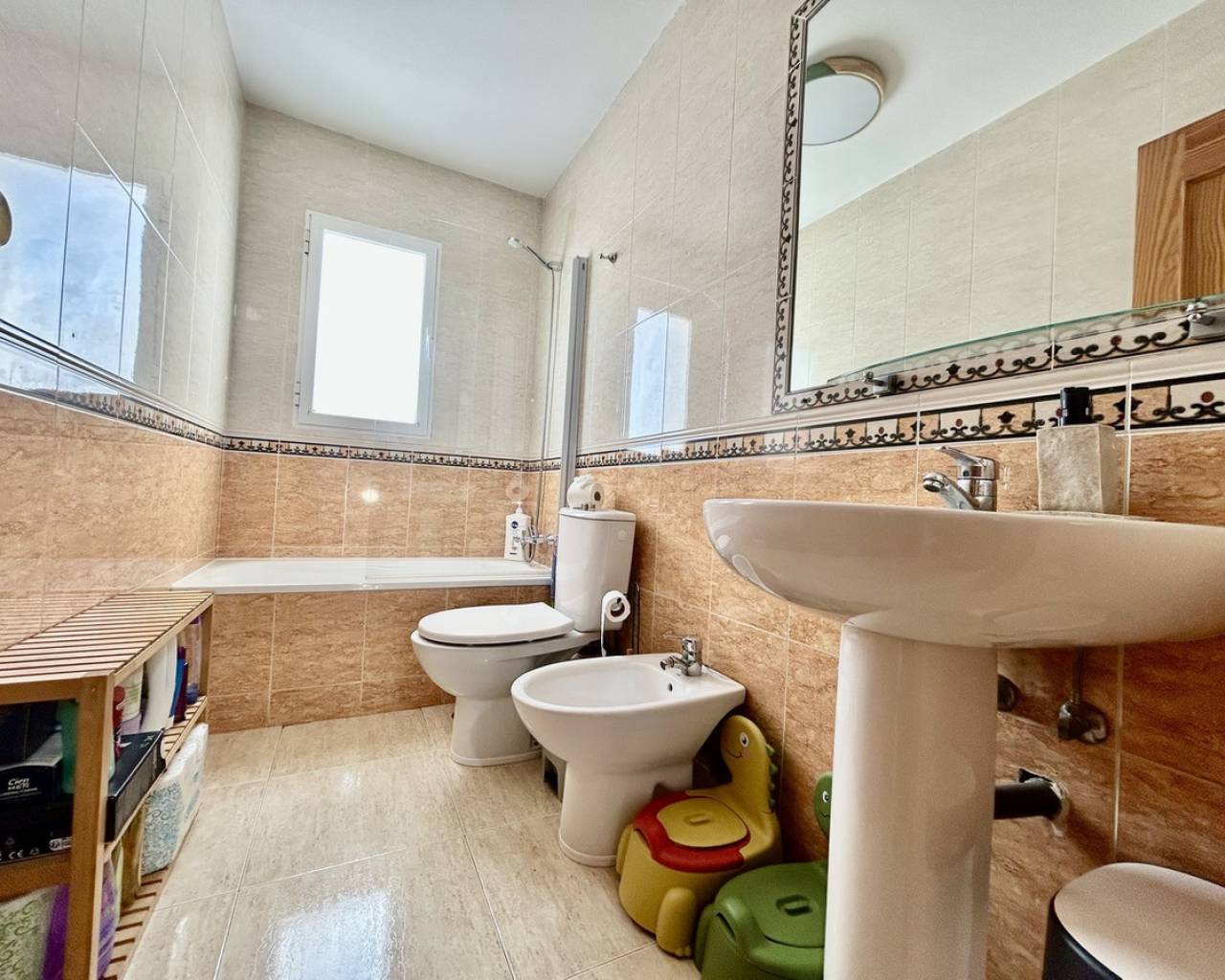 This spacious 4-bedroom townhouse offers the perfect combination of privacy, outdoor living, and convenience, ideally located on a quiet residential street just a short walk from Dos Mares Shopping Center and close to a wide range of shops, restaurants, and everyday amenities. The beautiful beaches of Mar Menor are also just a 5-minute drive away, making this an ideal home for both permanent living and holidays. As you enter the property, you are welcomed by a bright and spacious living room, offering plenty of natural light and a comfortable area for relaxing or entertaining. From here you move through to a large separate kitchen and dining area, providing generous space for family meals and gatherings. The kitchen leads out to the rear of the property where you will find a useful utility area with space for a washing machine, an outdoor toilet, and access to the private garden. The garden has been designed for low maintenance with artificial grass and features a private swimming pool, surrounded by high walls that provide excellent privacy, creating the perfect space to relax, sunbathe, or entertain friends and family. The home is arranged over three levels, offering plenty of space for family life. On the first floor there are two bedrooms and a family bathroom, while the top floor offers two additional bedrooms and another bathroom, making the layout ideal for larger families or hosting guests. One bedroom on each level enjoys its own private terrace, while the other bedrooms benefit from peaceful views over open green fields and towards the surrounding mountains, giving the property a wonderful sense of space and tranquillity. With its generous living space, private pool, quiet location, and close proximity to shops and the beach, this property represents a fantastic opportunity as a permanent home, holiday retreat, or rental investment.