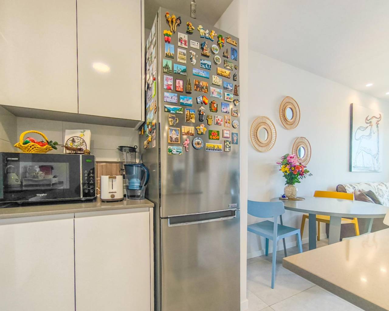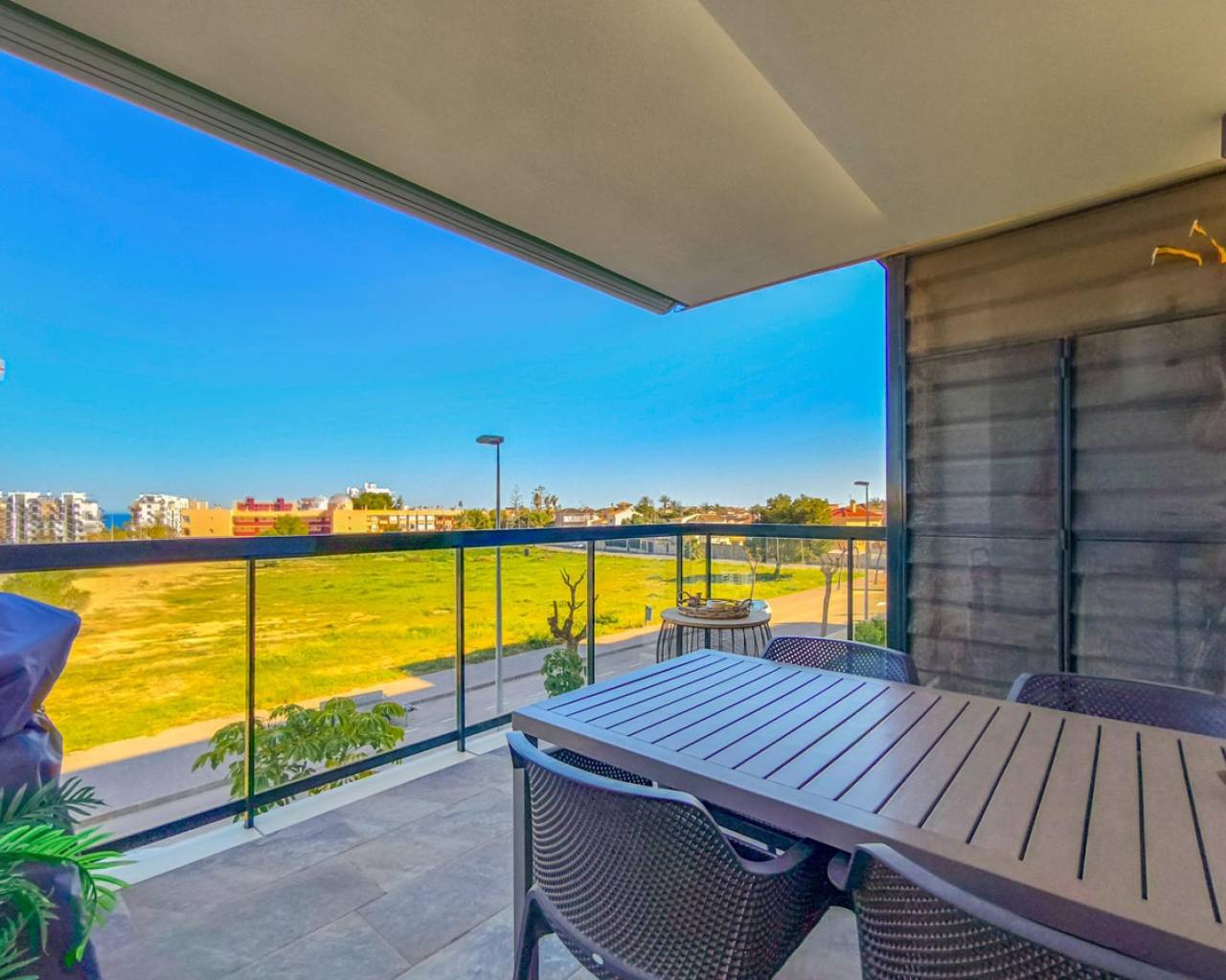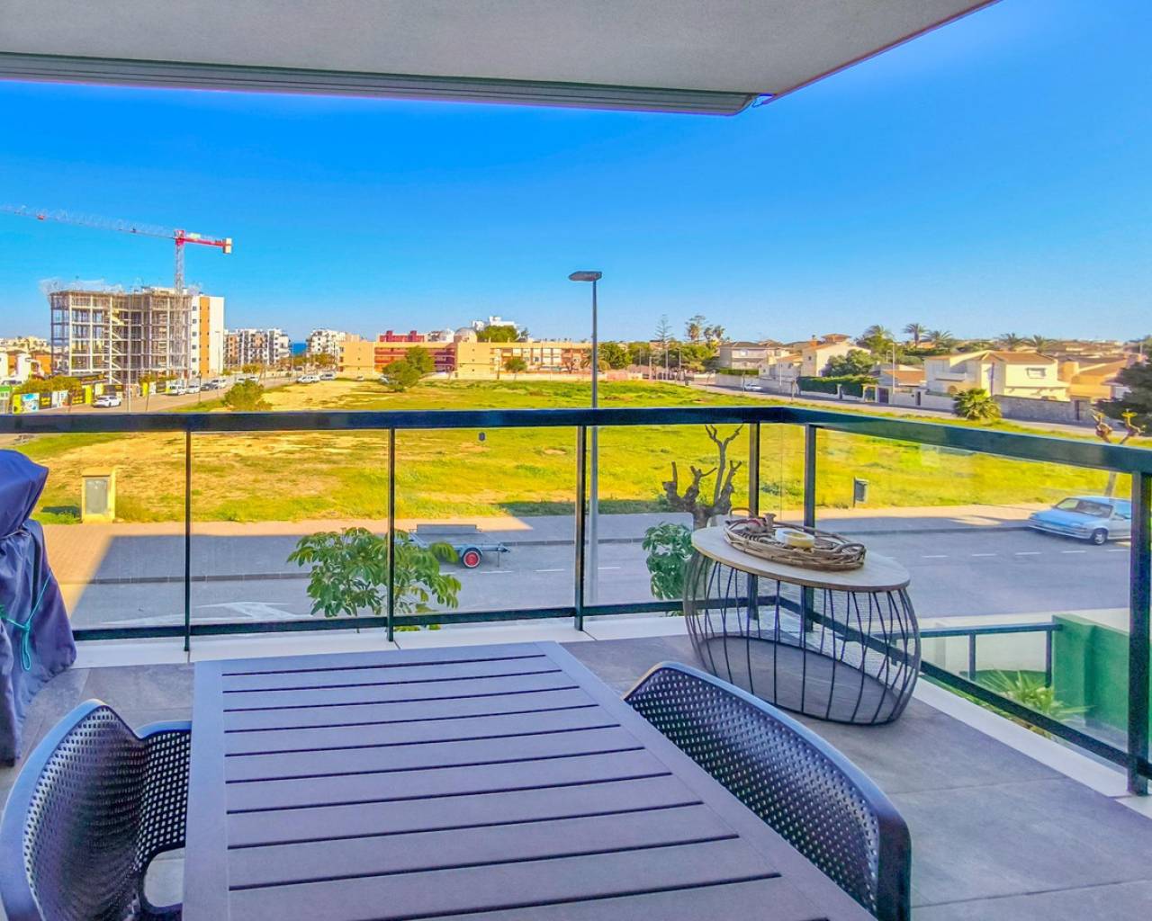 We present this modern apartment in a gated complex with garden and swimming pool, located just 700 meters from one of the best beaches in Mil Palmeras, in the prestigious area of Orihuela Costa. This highly sought-after residential location allows you to enjoy the Mediterranean climate, peace, and an active and healthy lifestyle. A spacious, bright, and very cozy apartment, it features a large south-facing terrace with views of the park and the sea, perfect for relaxing and enjoying the sunny weather. The modern living room is combined with the dining area and open kitchen, equipped with contemporary furniture and appliances. The apartment includes 2 bedrooms with built-in wardrobes, 2 full bathrooms, and a private storage room, ideal for keeping your home organized. A private parking space is also included. This apartment combines beach, comfort, and convenience: just 700 meters to the sea, with supermarkets, restaurants, and all services nearby, and only 10 minutes by car to Zenia Boulevard Shopping Center. All in a quiet and safe environment, perfect for comfortable living. With over 300 days of sunshine per year and a mild climate, every day invites you to enjoy seaside walks, outdoor activities, water sports, golf, and social life. Perfect for families, seniors, or anyone seeking a peaceful and exclusive coastal lifestyle. The property price does not include notary, registration, or applicable taxes, which vary according to current regulations in the Comunidad Valenciana.