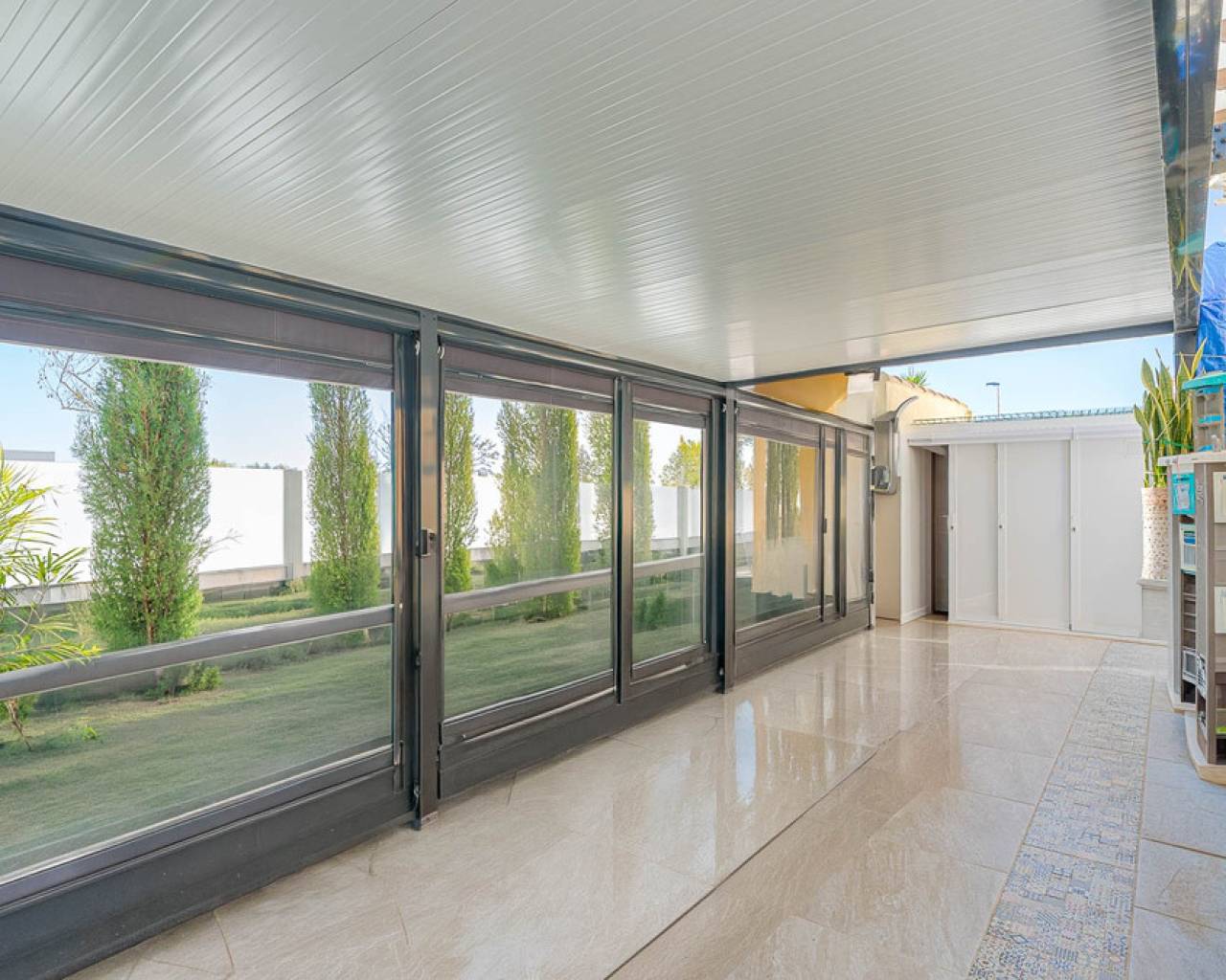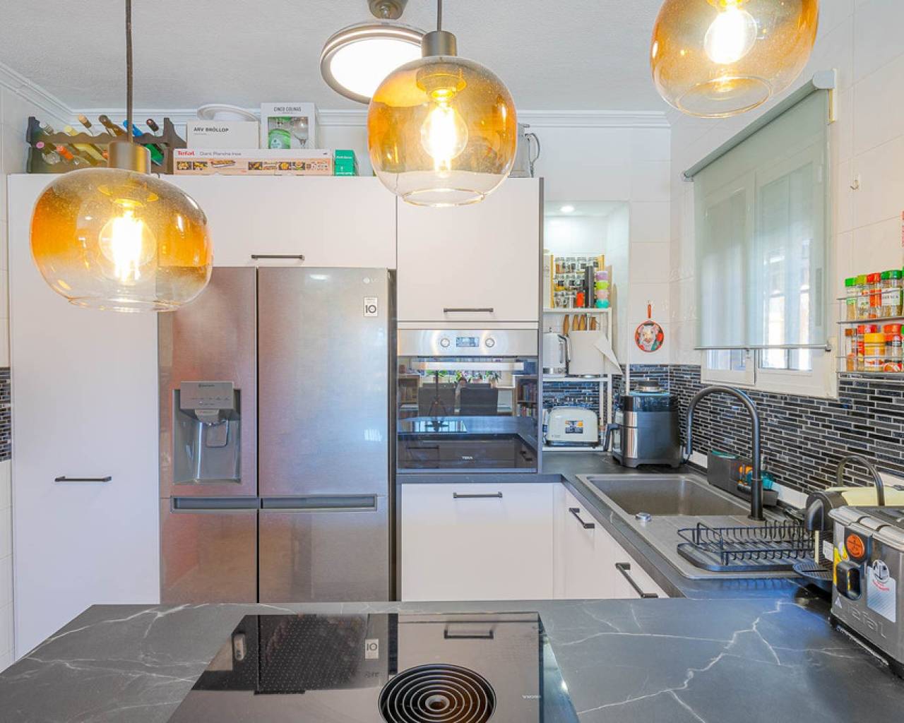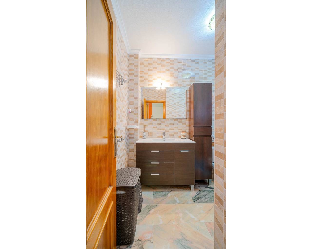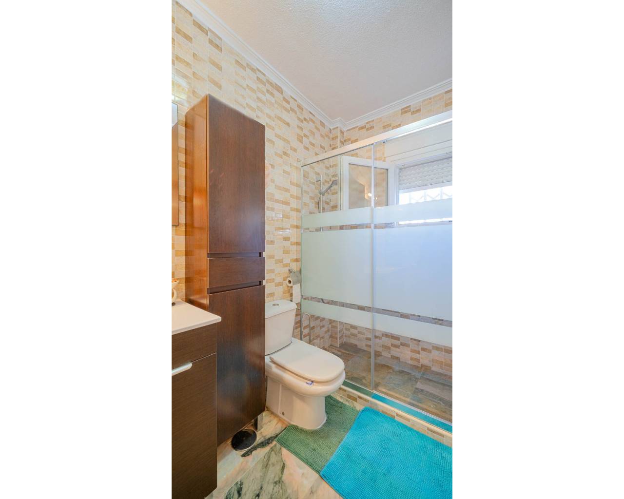 This stylish townhouse with modern renovation is located in the prestigious area of Punta Prima on the beautiful Costa Blanca, within walking distance to the sea and the beaches of Orihuela Costa. The area is well known for its developed infrastructure, pleasant atmosphere, and proximity to all essential amenities, including restaurants, shops, pharmacies, and scenic walking areas, making it perfect for both permanent living and holidays. The property has been recently refurbished to a high standard, offering a modern, elegant, and comfortable living space. The townhouse features a spacious plot with parking and a storage room, as well as a well-designed layout across two levels. Upon entering, you are welcomed by a glazed terrace leading into a bright living and dining area and a fully equipped kitchen. The home includes 2 cozy bedrooms, a modern bathroom, and a guest toilet. One of its standout features is the private rooftop solarium with sea views, an ideal space to relax and enjoy the sunshine all year round. Residents also benefit from access to a large communal swimming pool. Just a few minutes' drive away is the largest shopping center in the area, La Zenia Boulevard, offering a wide range of shops and entertainment options. This is an excellent opportunity for permanent residence, a holiday home, or a smart investment on Spain's sunny coast.