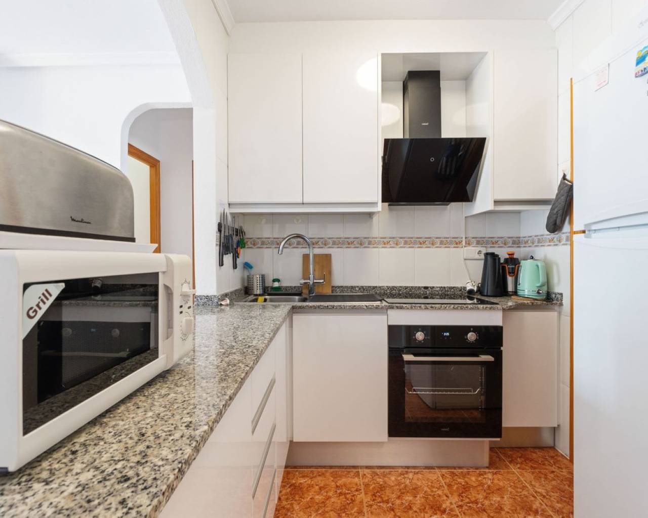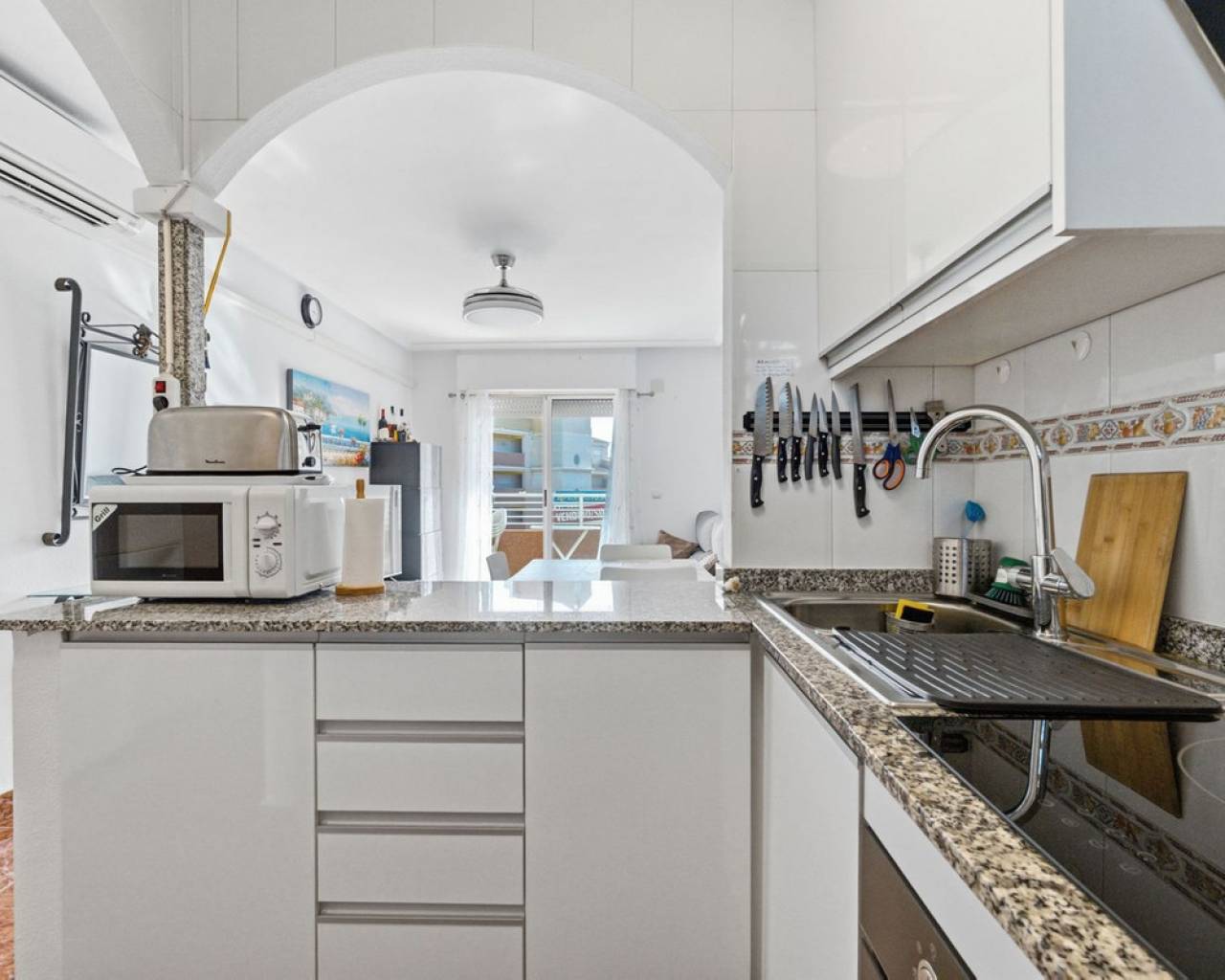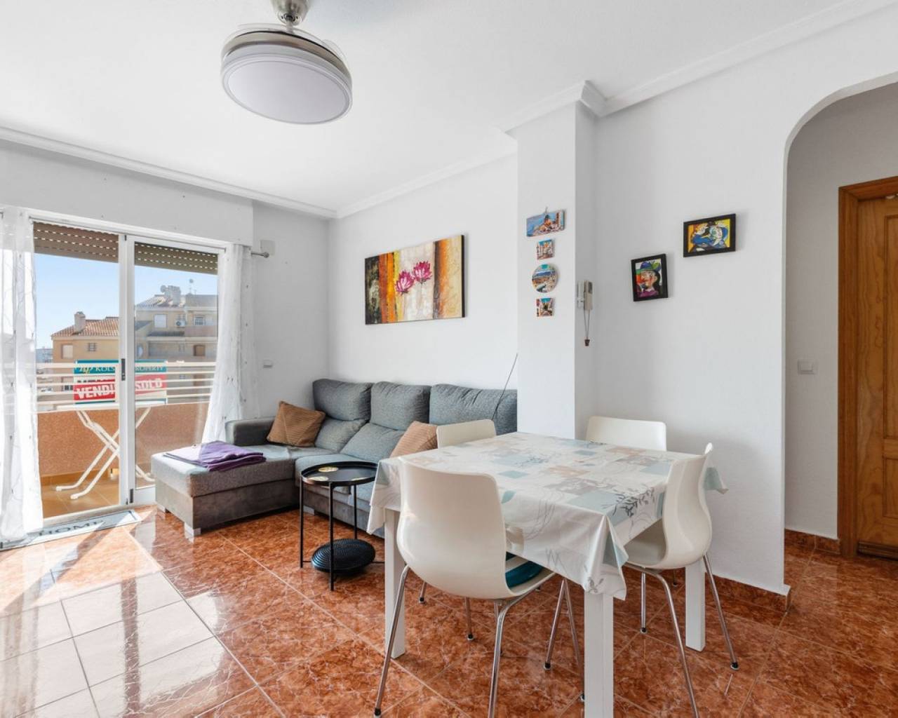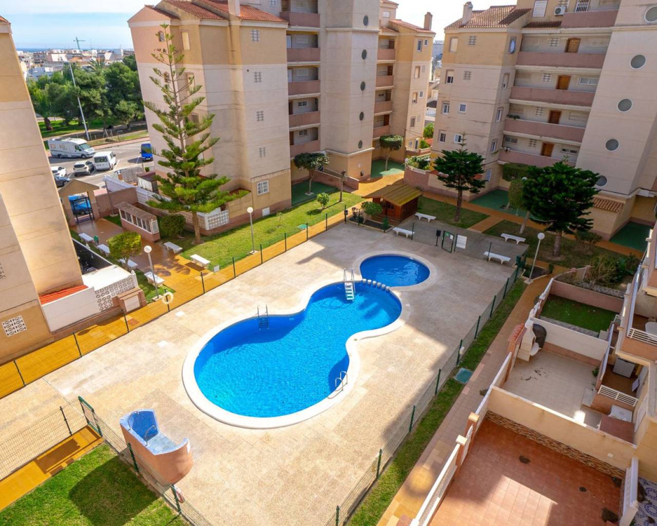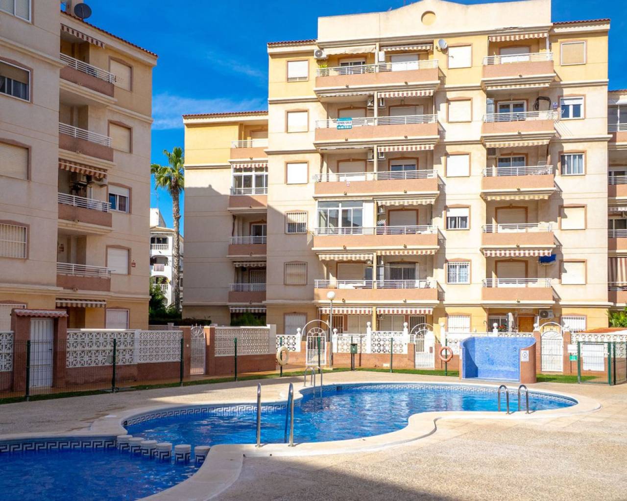 This fantastic apartment located in Calas Blancas, a quiet area near the centre of Torrevieja, is just a short distance from the beautiful beach of Playa de Los Locos, and offers an ideal location for those who want to enjoy life by the Mediterranean Sea. The urbanization has green areas, communal pool, and plenty of parking space. This cosy apartment is located at the 4th floor and has 2 bedrooms, 1 bathroom , a living room with an open kitchen, a lovely balcony that is south/west facing so you will have sun all day , and has magical views out over the pool, the urbanization and its surrounding areas. It also has some sea views. The kitchen was renovated in 2024 with brand-new appliances . The property is sold furnished and with appliances. There is a lift that takes you up to the apartment. This property is ideal for those looking for something close to the sea and surrounded by amenities. Get in touch with us to arrange a viewing and discover all that this property has to offer. ECONOMY: Asking price: 145.000€ + costs of about 13% Community fees: 309€ x 2 per year Garbage Tax: 56€ x 2 per year Property Tax : 116.64€ per year ABOUT TORREVIEJA Torrevieja is a city in the province of Alicante in the Comunidad Valenciana region of Spain. The town is a popular tourist destination, located about 40 minutes drive from the city of Alicante and the airport. Torrevieja was originally a small fishing village, and is today one of Europe's largest salt producers, Torrevieja has previously been called the 'salt city', but in recent years the city has also been called the 'sports city', due to the large sports arenas that have been built in recent years. As a result of this fantastic investment, Torrevieja was one of four organizational cities during the Women's Handball World Championship in 2021. When you stay in Torrevieja, you are a short walk to white, elongated sandy beaches with a 'blue flag' stamp, as an indication of, among other things, high water quality. In the immediate vicinity and often 'right outside' the door you will find a large selection of local shops, restaurants, cafés, shopping centres, green parks, the harbour and the promenade. If you are looking for an area that is full of life all year round and has a healthy microclimate with 320 days of sunshine a year, then this could be for you.