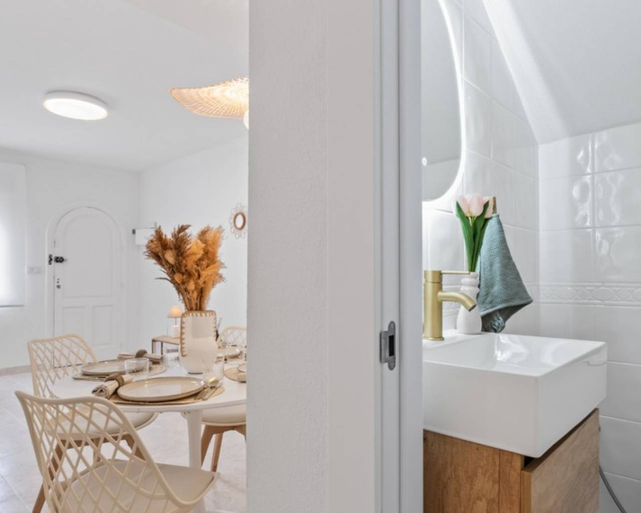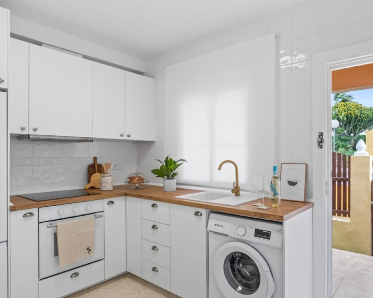 This charming west-facing townhouse is located in the popular area of La Florida, Orihuela Costa, and represents an excellent property for sale in La Florida Orihuela Costa, offering comfort, natural light, and a great location close to all amenities. The property welcomes you with a spacious sunny front terrace, ideal for enjoying afternoon and evening sun. On the main floor, there is a bright and spacious living room, tastefully decorated, along with a guest toilet. The separate modern kitchen is in excellent condition and provides direct access to a private rear terrace, perfect for outdoor dining or relaxing. Upstairs you will find two well-distributed bedrooms with plenty of natural light, as well as a full bathroom. One of the bedrooms has access to a terrace that leads to a private roof solarium, ideal for enjoying sunsets or creating a chill-out space. The property is part of a well-maintained community with a communal swimming pool and gardens, offering a peaceful environment. Ideally located close to shops, restaurants, and services, and just a short drive to Zenia Boulevard, golf courses, and the beaches of Orihuela Costa. An ideal home near golf courses and the beaches of Orihuela Costa, and a great holiday home or investment property in Costa Blanca South.