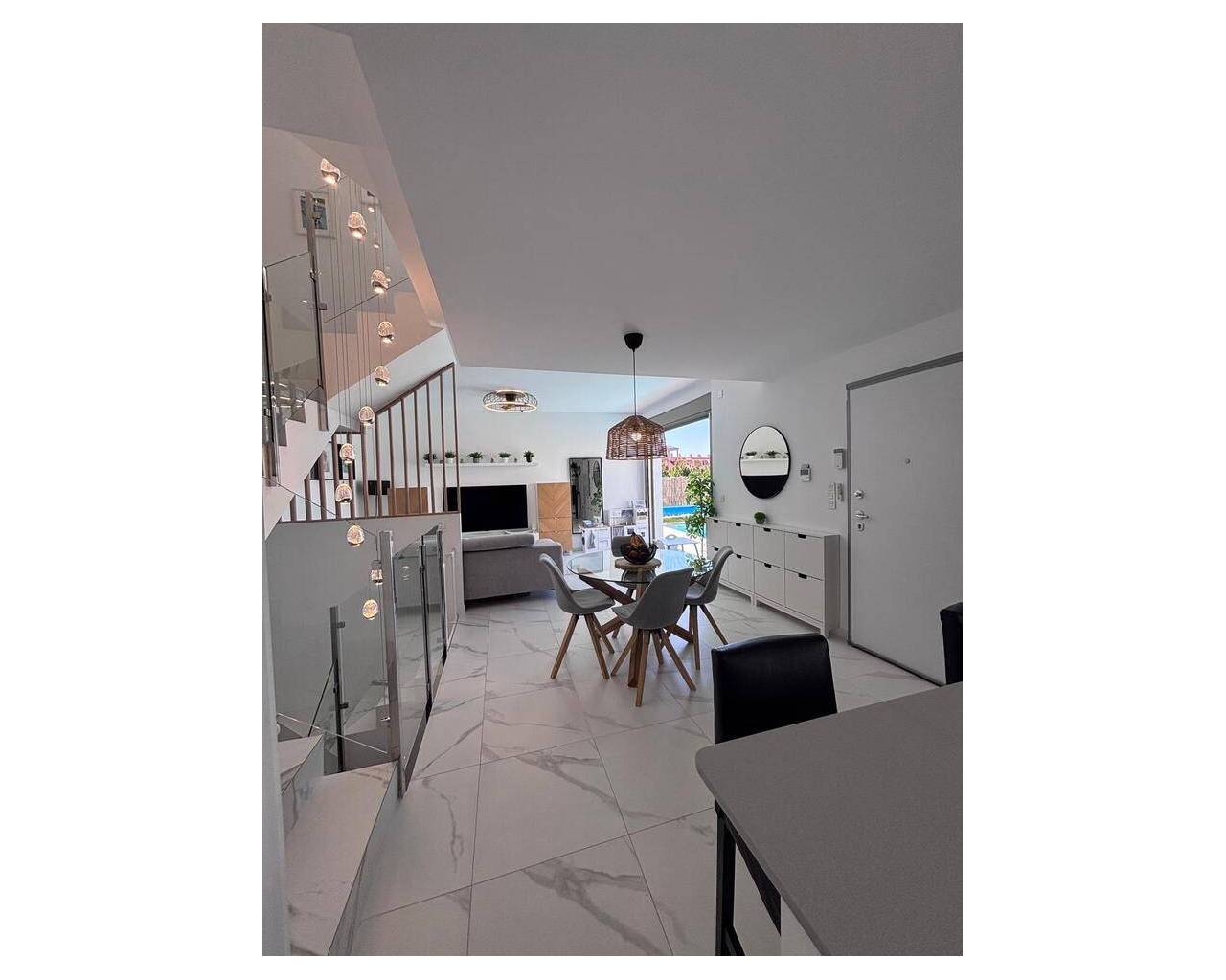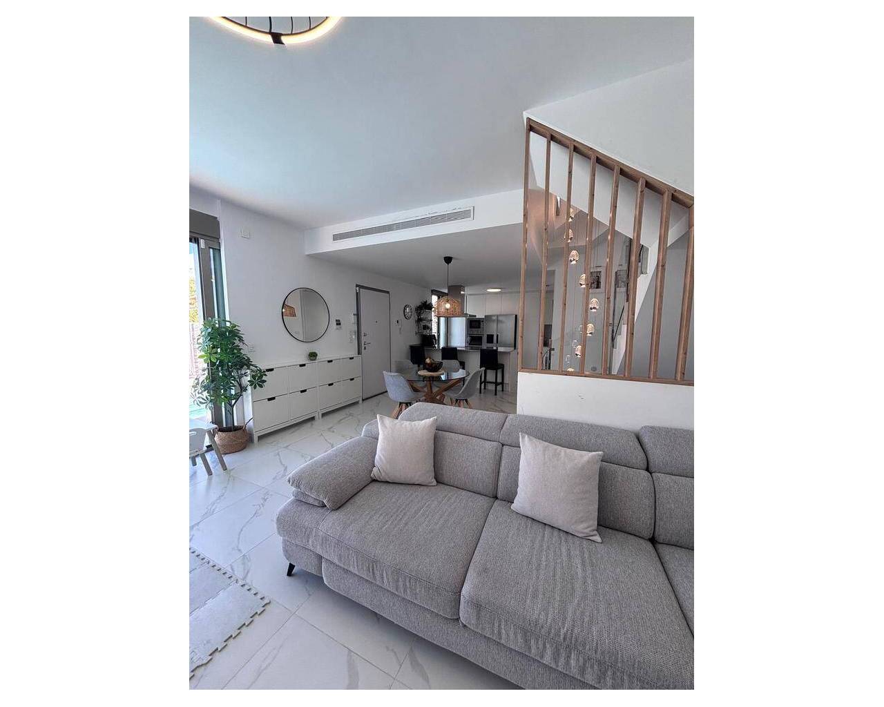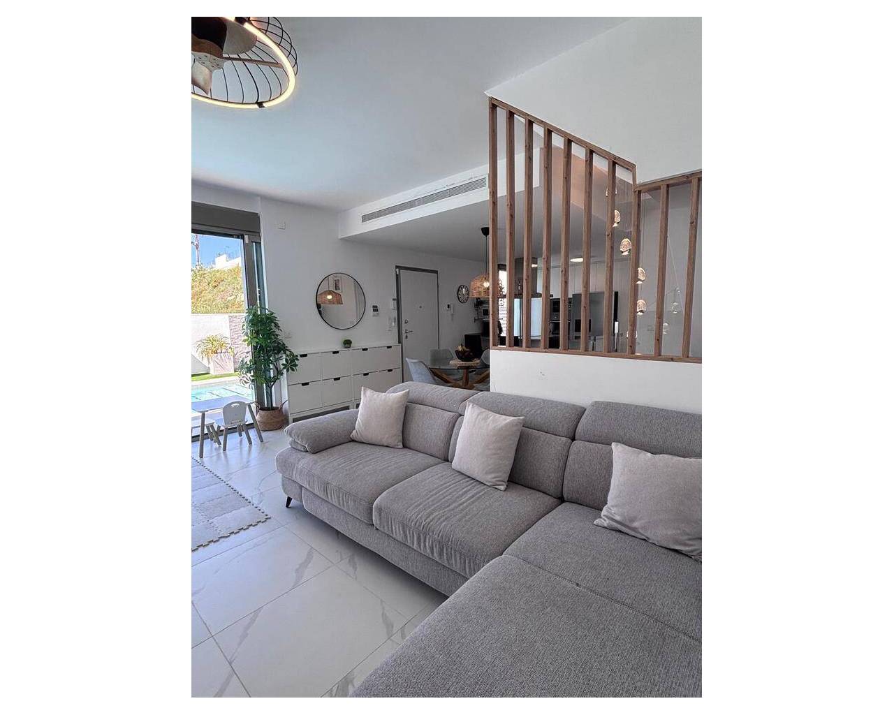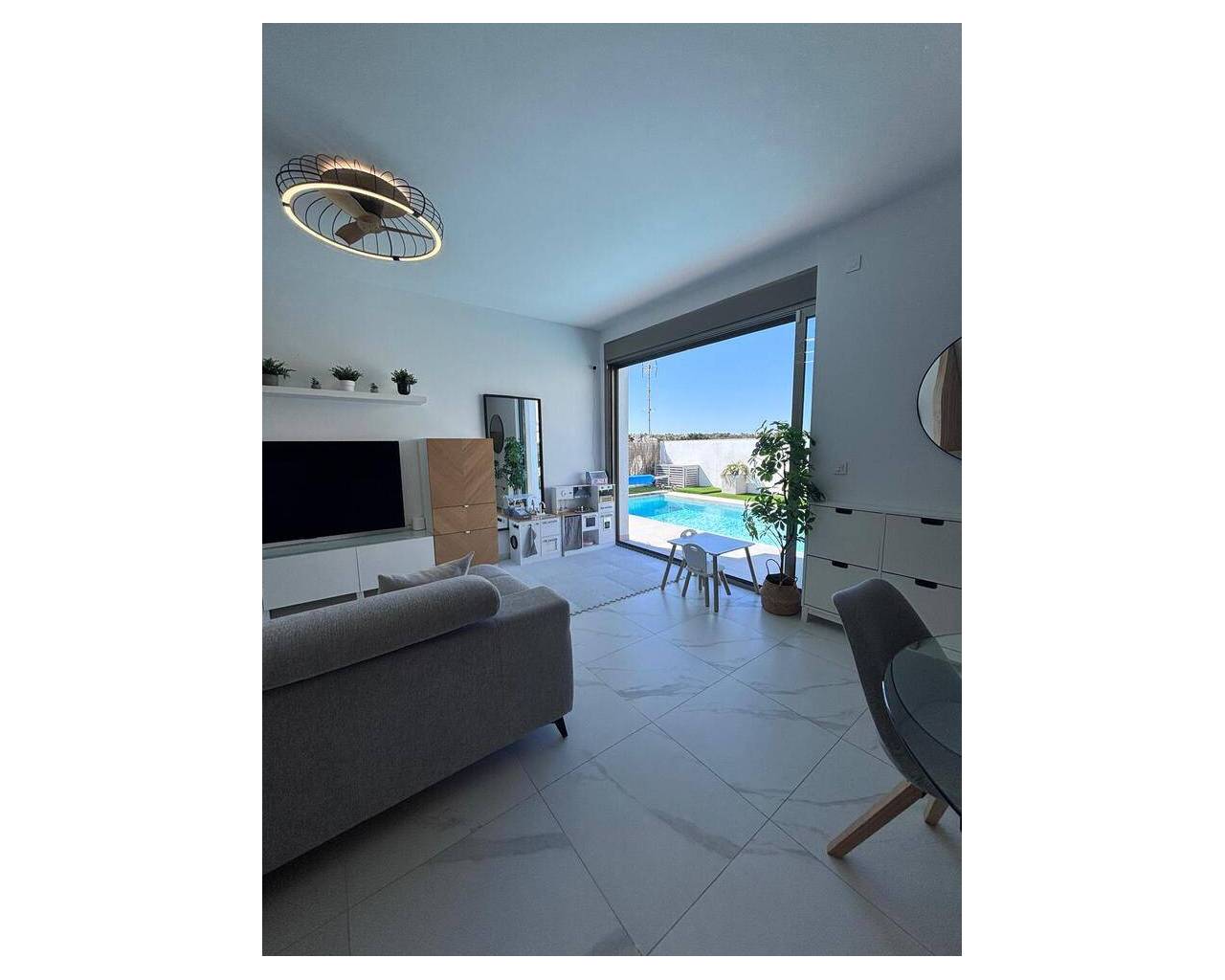 Beautiful 5-Bedroom Contemporary Villa with Heated Pool This stunning southwest-facing corner plot villa offers modern luxury, generous space, and beautiful views, making it the perfect home for both permanent living or holidays in the sun. The property features 5 spacious bedrooms, 3 bathrooms and a guest WC, all designed with comfort and practicality in mind. The main bedroom boasts a stylish ensuite bathroom and walk-in wardrobe, while the additional bedrooms include built-in wardrobes, providing excellent storage throughout. At the heart of the home is a large open-plan kitchen and living area, creating a bright and sociable space ideal for family living and entertaining. The villa benefits from hot and cold air conditioning, ensuring year-round comfort. Outside, the beautifully designed garden offers everything you need to enjoy the Mediterranean lifestyle. The private heated swimming pool is surrounded by sunbathing areas as well as comfortable shaded seating spaces, perfect for relaxing or hosting guests. There is also a children's play area, making it ideal for families. The villa sits on a desirable corner plot with southwest orientation, allowing you to enjoy sunshine throughout the day and spectacular views from both the garden and balcony. Additional features include private parking for two cars, a practical utility area, and a spacious underbuild which provides two additional bedrooms, a bathroom with shower, offering flexible accommodation for guests or extended family. The property is sold fully furnished and has been finished with high-quality silicone exterior paint, providing durability and a fresh modern appearance. A truly exceptional home combining space, style, and breathtaking views