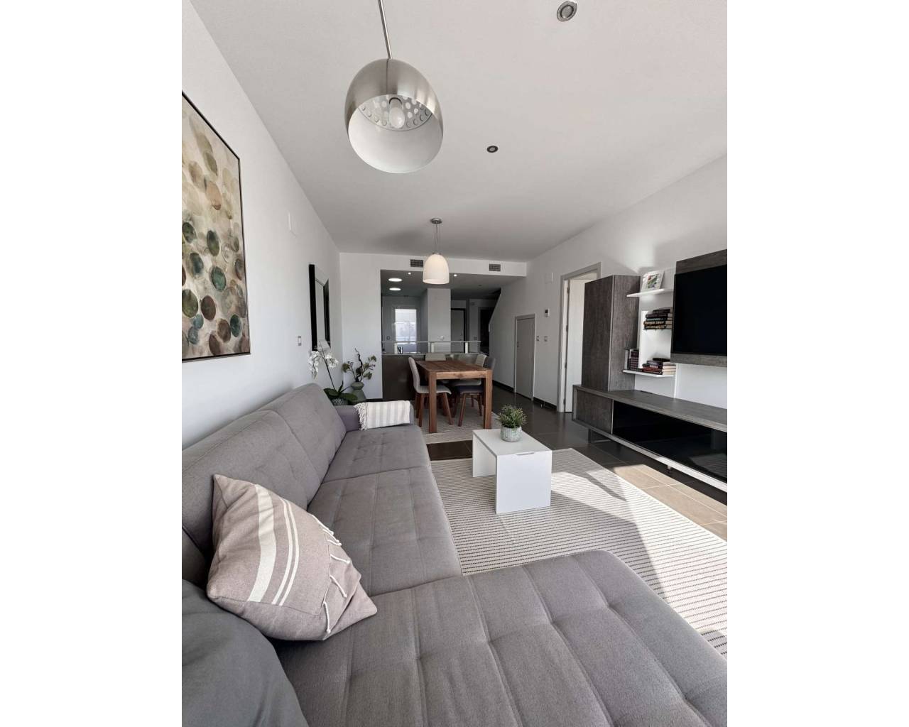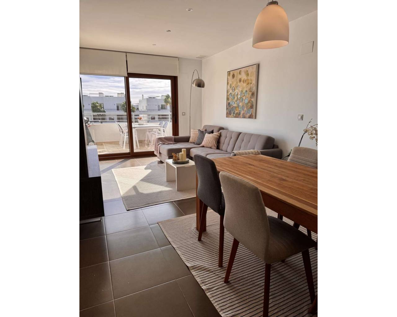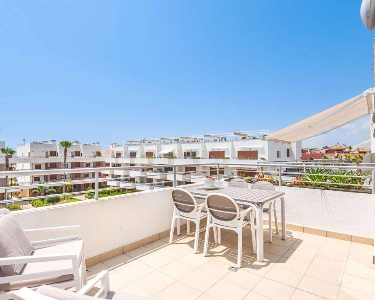 Located in the heart of Lomas de Cabo Roig, Orihuela Costa, this stunning penthouse offers a dream living experience. Decorated with style and elegance, this beautiful home is ready for you to move in and start a new chapter.The open kitchen is fully equipped and seamlessly connected to a utility room for added convenience. The bright living room is filled with natural light, ideal for hosting dinner parties or enjoying cozy nights in. Retreat to one of the two spacious bedrooms, one of which opens up to a charming balcony where you can enjoy your morning coffee. The luxury of two stylish bathrooms adds a touch of modern comfort to this exquisite penthouse. Step outside to your private rooftop terrace, perfect for sunbathing or hosting barbecues. Dive into one of the two inviting pool areas, let the kids play in the playground, or take a leisurely stroll through the beautifully landscaped gardens.Conveniently located close to shops, restaurants, and stunning beaches, this penthouse offers the perfect blend of relaxation and entertainment. Whether you seek a vacation getaway, a remote workspace, or a permanent residence, this location has it all. With easy access to the nearest beach, Zenia Boulevard Shopping Center, and Alicante Airport, this penthouse is both convenient and luxurious.Situated on the third floor of an elevator-equipped building, this penthouse presents breathtaking sea views that will leave you in awe every single day. Don't miss this incredible opportunity to own a slice of paradise in Orihuela Costa!