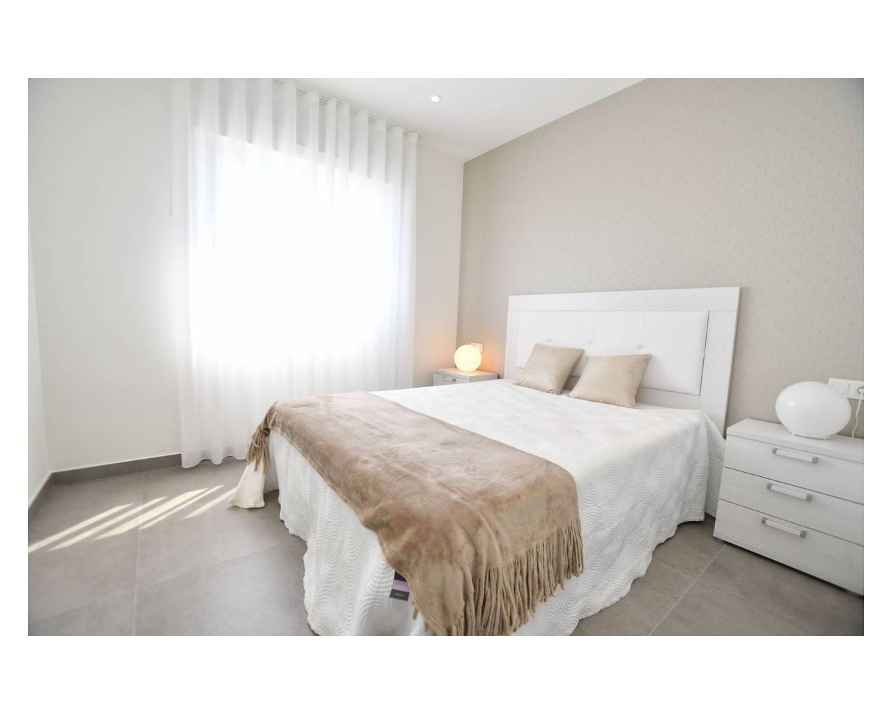 The development its placed in the town of San Miguel de Salinas, specifically in "La cañada" area, sorrounded by a beautiful protected pine forest among the golf courses of Campoamor and Las Colinas, and only 5km away from the sea. The development consists of two types of houses: one in the ground floor with two bedrooms, two bathrooms, two spacious gardens and surface parking; and other in the top floor, made of two bedrooms, two bathrooms, a large solarium and an surface parking. Properties on top floor have sea views. In line with our former developments, the properties feature spacious interiors. Due to its larger dimensions we also offer the possibility to building any of the properties with three bedrooms. The development includes a large garden with grass, covering aproximately 1735m2, a swimming pool with a spa and children ́s area. As well as additional gardens with palm trees and plants. All of this, makes the residential an ideal environment to enjoy the sun year-round with family. Vivienda 1, vivienda 2 - SHOW HOUSE