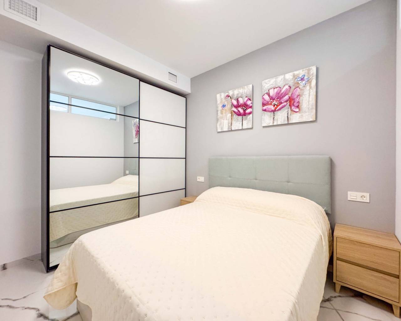 Two almost identical apartments for sale located just 50 meters from Playa del Cura in Torrevieja, an unbeatable location both for living and investment. The properties are on the ground floor and feature two bedrooms and two bathrooms. They have undergone a complete renovation using top-quality materials and finishes, with great attention to detail to provide maximum comfort and a modern design.They are sold fully furnished and equipped with all appliances, ready to move in from day one. The apartments offer a fully equipped open-plan kitchen, a spacious and bright living-dining area, and modern lighting throughout. High-quality windows ensure excellent thermal and acoustic insulation, and the properties also feature electric shutters.The bathrooms include underfloor heating, and the apartments are equipped with centralized air conditioning with an Airzone system, allowing individual temperature control in each room. At the rear of the property, there is a private 20 m² terrace, ideal for creating a chill-out area, outdoor dining space, leisure area, or storage. The terrace includes a built-in cabinet housing the washing machine and water heater, as well as an outdoor shower, perfect for cooling off after a day at the beach.An excellent investment opportunity due to its proximity to the sea and an ideal option to enjoy the coast all year round. Properties ready to move in.