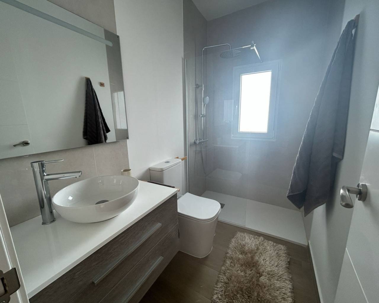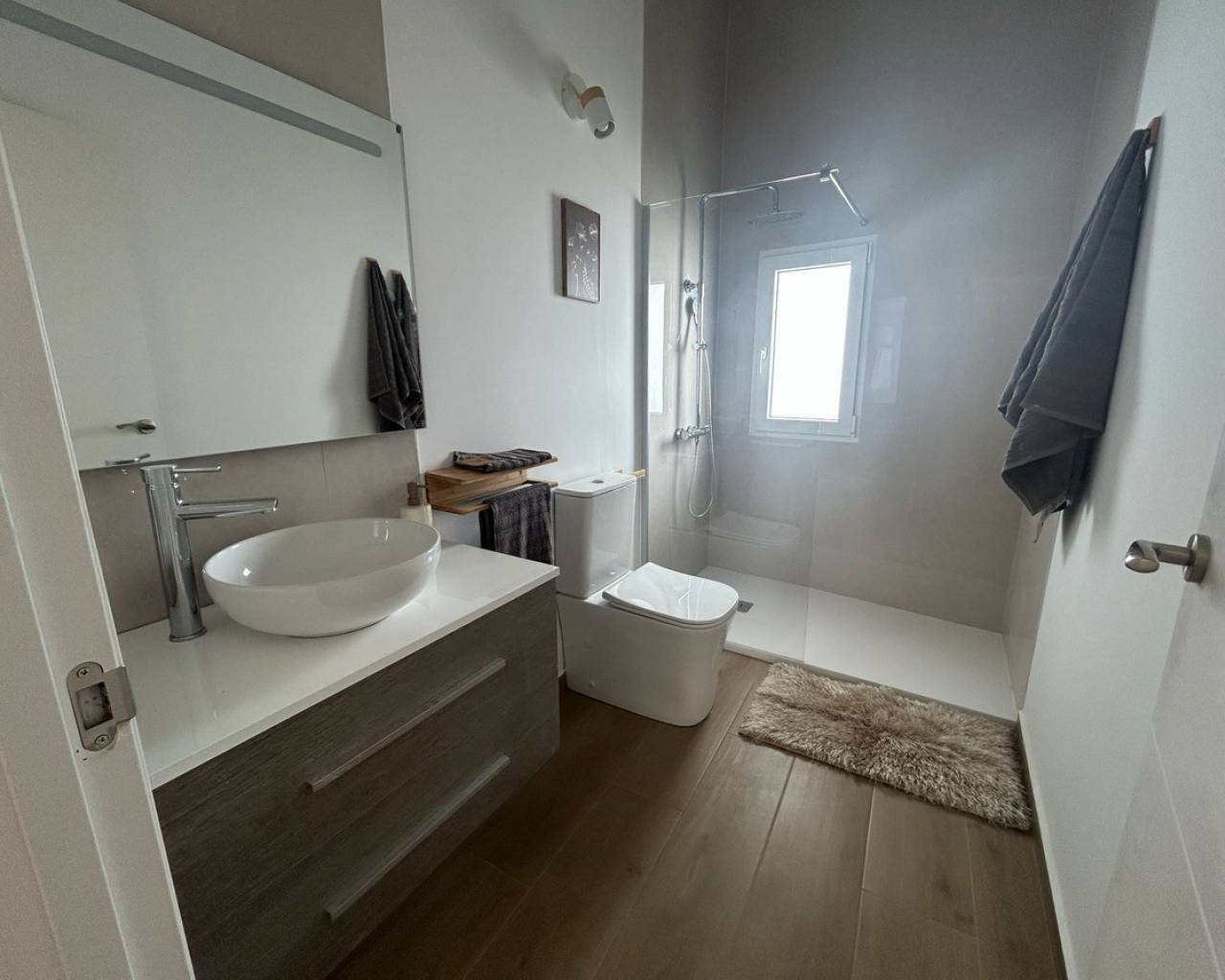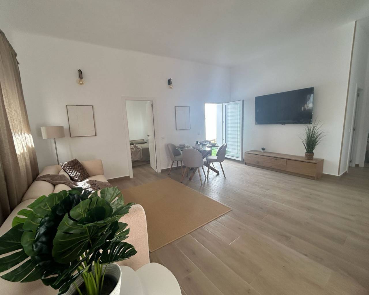 Completely renovated ground floor apartment with sunny location and generous spaces In a quiet and popular neighborhood, where everyday life moves at a pleasant pace and the neighborhood feels homely, a ground floor apartment awaits you that has recently undergone a complete renovation - completed in March 2025. This is a home where every detail has been considered, and where a modern style meets a warm and welcoming atmosphere. The apartment has a built area of 105 square meters and a usable living area of 90 square meters, providing plenty of space for both everyday life and social moments. There are three bedrooms and two elegant bathrooms, both updated with modern material choices that create a harmonious and fresh feel throughout the home. The social room is bright and easy to furnish, with a natural opening onto the sunny terrace. Thanks to the home's southeast orientation, the home is filled with soft morning light that continues well into the day, and the terrace quickly becomes a favorite spot for breakfast, relaxation or the quiet evening breeze. As a ground floor residence, the home also has an inviting and easily accessible location, perfect for those who want to avoid stairs but still have views and light from large windows towards the surroundings. The exterior location enhances the feeling of space and provides a nice connection between inside and outside. The renovation from 2025 has given the home a whole new lease of life – from floors and walls to bathrooms and finishes. The result is a home that is ready to move into without any additional work. The air conditioning ensures that the indoor environment is always comfortable, and the built-in wardrobes offer smart and stylish storage. This is accommodation for those looking for a modern, spacious and completely renovated ground floor apartment, where the light, terrace and new interior create a harmonious whole. A home that is just as suitable as a permanent residence as for sunny longer stays. Please contact us for more information or to book a viewing. We will of course conduct digital viewings if you are unable to be there in person.