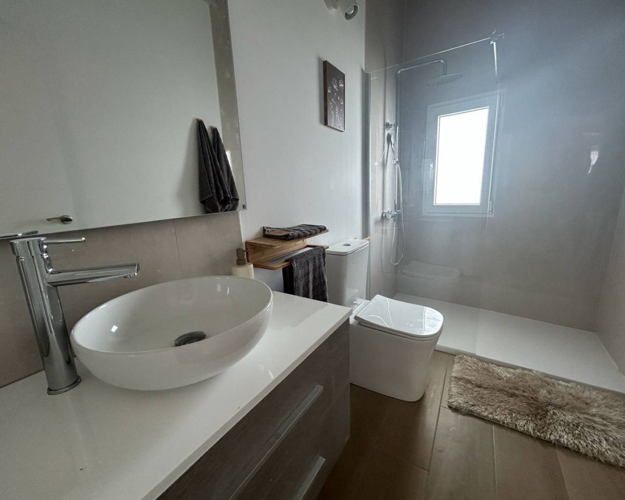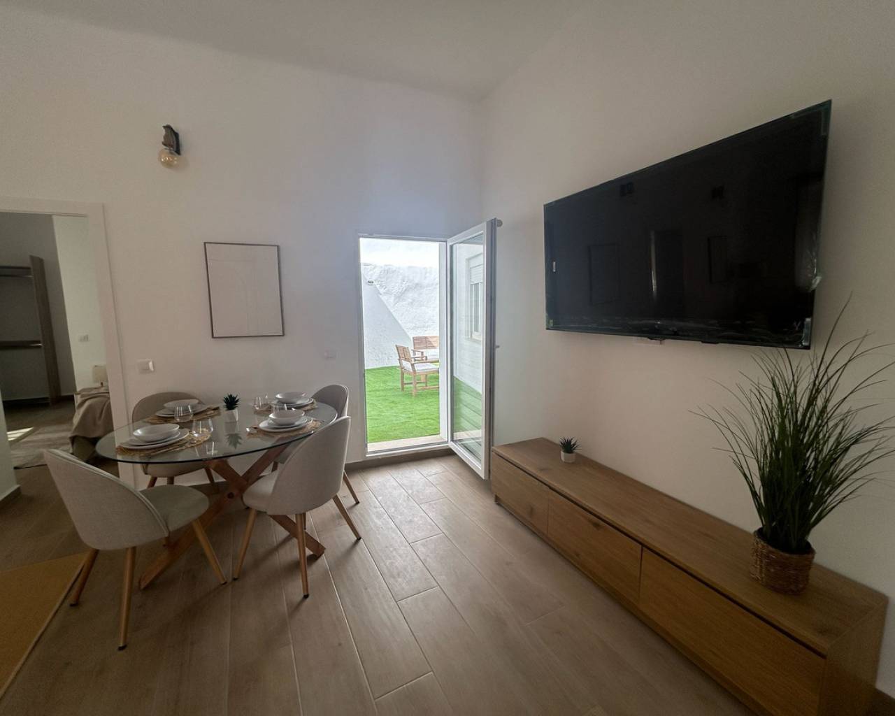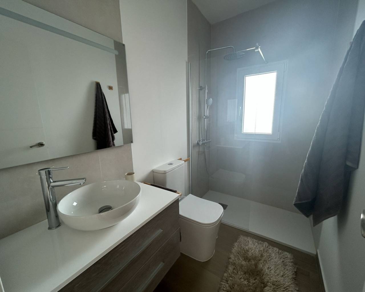 Completely renovated ground floor apartment with sunny location and generous spaces In a quiet and popular neighborhood, where everyday life moves at a pleasant pace and the neighborhood feels homely, a ground floor apartment awaits you that has recently undergone a complete renovation - completed in March 2025. This is a home where every detail has been considered, and where a modern style meets a warm and welcoming atmosphere. The apartment has a built area of 105 square meters and a usable living area of 90 square meters, providing plenty of space for both everyday life and social moments. There are three bedrooms and two elegant bathrooms, both updated with modern material choices that create a harmonious and fresh feel throughout the home. The social room is bright and easy to furnish, with a natural opening onto the sunny terrace. Thanks to the home's southeast orientation, the home is filled with soft morning light that continues well into the day, and the terrace quickly becomes a favorite spot for breakfast, relaxation or the quiet evening breeze. As a ground floor residence, the home also has an inviting and easily accessible location, perfect for those who want to avoid stairs but still have views and light from large windows towards the surroundings. The exterior location enhances the feeling of space and provides a nice connection between inside and outside. The renovation from 2025 has given the home a whole new lease of life – from floors and walls to bathrooms and finishes. The result is a home that is ready to move into without any additional work. The air conditioning ensures that the indoor environment is always comfortable, and the built-in wardrobes offer smart and stylish storage. This is accommodation for those looking for a modern, spacious and completely renovated ground floor apartment, where the light, terrace and new interior create a harmonious whole. A home that is just as suitable as a permanent residence as for sunny longer stays. Please contact us for more information or to book a viewing. We will of course conduct digital viewings if you are unable to be there in person.