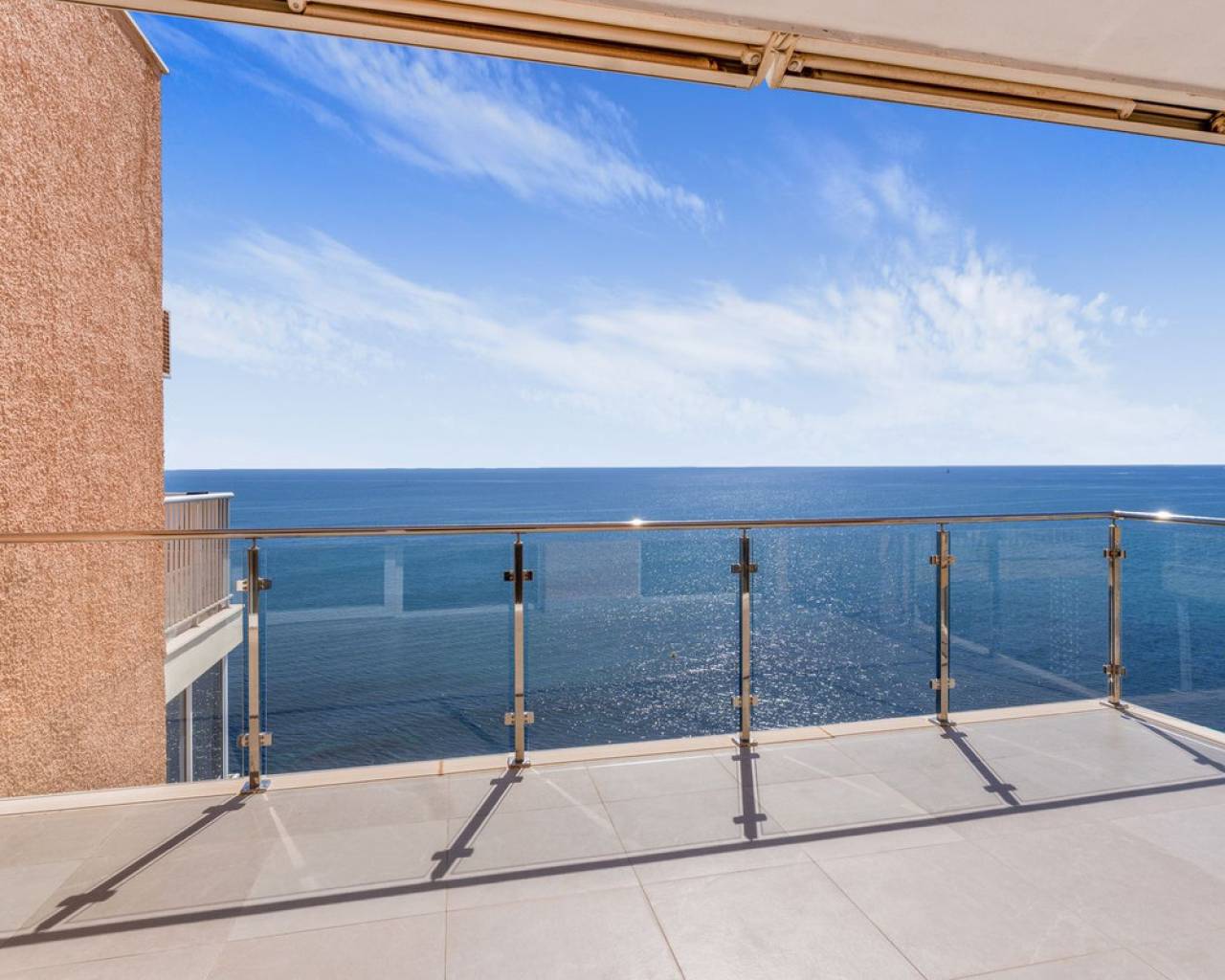 Spectacular sea view – newly renovated apartment on the 11th floor by the Mediterranean Welcome to this tastefully renovated apartment at the top of the house, located just a few meters from the Mediterranean Sea. It offers accommodation beyond the ordinary with a breathtaking panoramic view of the sea that creates a unique and peaceful atmosphere. The apartment covers 86 m² with a generous 16 m² balcony, perfect for enjoying the sun, the sea breeze and the fantastic view of the sparkling Mediterranean Sea. The apartment has undergone a careful renovation where modern material choices meet stylish design. The large windows create a wonderful light and an open, airy feeling. The location is hard to beat – with the promenade and the Mediterranean right outside the door, you get accommodation that combines a holiday feeling all year round with comfortable everyday life. Facts about the apartment: 86 m² living space 16 m² balcony Floor 11, Top of the house. Only a few meters from the Mediterranean Sea Completely renovated in a modern style Fantastic panoramic views of the sea Bright and airy accommodation Facades and balconies newly renovated. The elevators are being replaced, will be completed shortly. Already financed. For those who wish, there is also the possibility of purchasing a parking space in the garage.