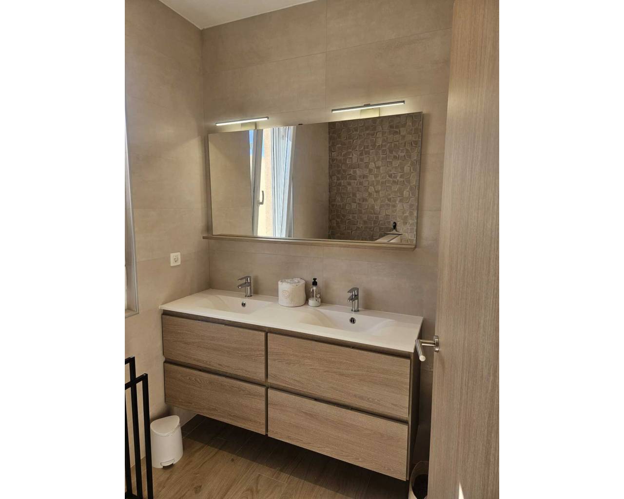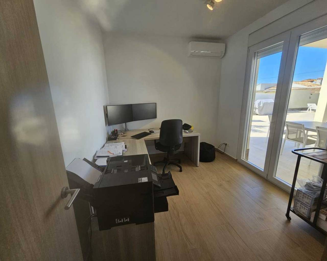 Beautiful detached 4 bedroom villa on an 800m² plot, with a garden and a private swimming pool in La Torreta, Torrevieja, Alicante. The main house has a living/dining room with an open plan fully equipped kitchen with a dishwasher, oven, Siemens induction hob and large refrigerator. The kitchen is right next to a large 150m² terrace. There are four bedrooms and two bathrooms. Behind the main house is a 63m² small house currently used as storage, but previously it had a living/dining room, kitchen, a bedroom and a bathroom. The main house has air conditioning in each room. There are 30 solar panels on the roof and a 15Kw battery. The electricity bill is 0€. Outside there are two large terraces with a large swimming pool (10x4,5), next to which is a jacuzzi and an outdoor shower with hot water. There is also a large porch to park a car out of the sun, an alarm system inside the house but also on the outside. Also CCTV system and doorbell that is linked with your smartphone.