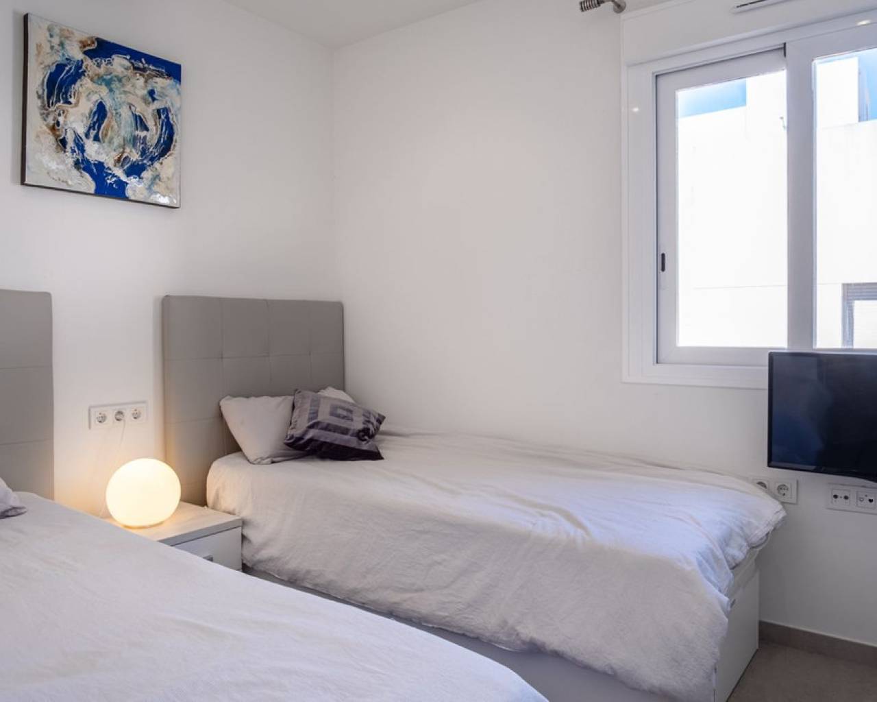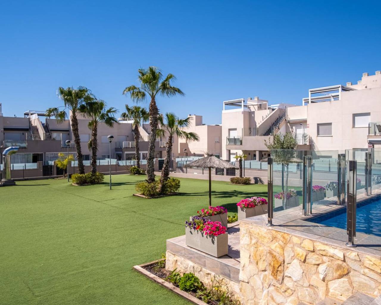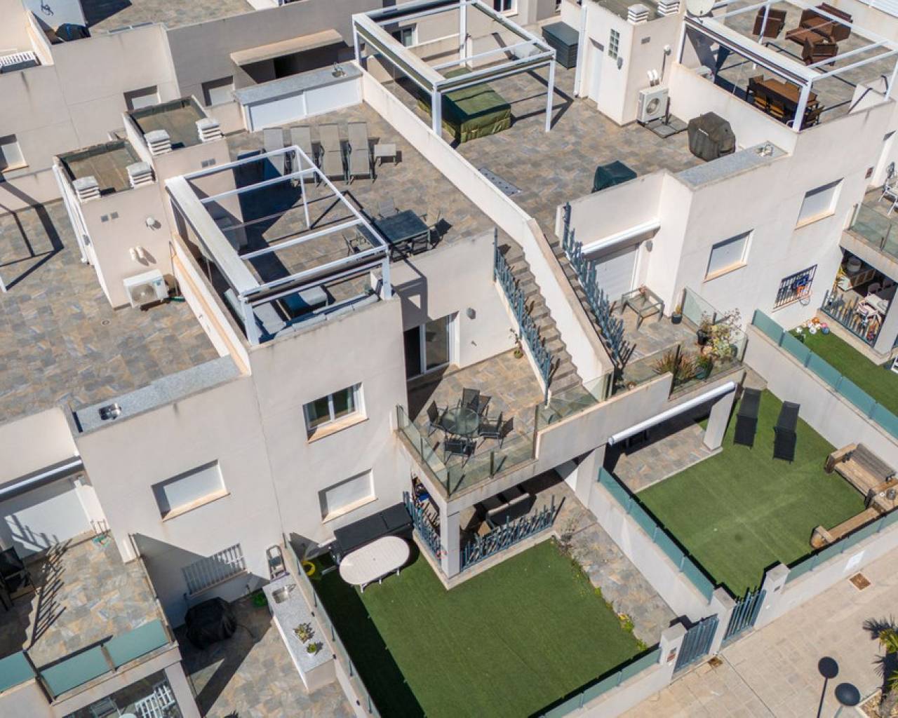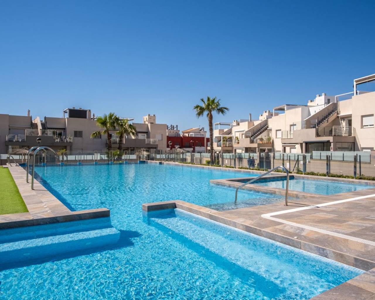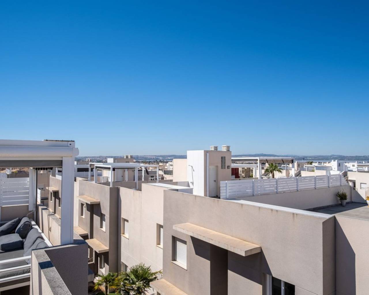 Exclusive Home with Spectacular Rooftop Terrace in Sought-After Solpark – Aguas Nuevas, Torrevieja Welcome to this stylish and modern apartment in impeccable condition, located in the highly sought-after area of Solpark in Aguas Nuevas – one of Torrevieja's most popular and well-maintained residential communities. Here you will find a home where design, comfort, and Mediterranean living come together in perfect harmony. The property features two elegant bedrooms and two tastefully designed bathrooms, created for both comfort and functionality. Bright materials, generous natural light, and a well-thought-out layout create an airy and exclusive atmosphere throughout the home. Start your day with a cup of coffee on the balcony in the morning sun, while enjoying the peaceful and beautifully maintained surroundings. The true highlight of this home is the impressive private rooftop terrace of 65 sqm – a fantastic oasis where you can enjoy the sun from morning until evening. There is plenty of space for lounge furniture, a dining area, and social gatherings under the Spanish sky. Perfect for sunset dinners, relaxing days in the sun, or memorable evenings with family and friends. The apartment is equipped with air conditioning throughout, ensuring a comfortable indoor climate all year round. Solpark is a modern and exclusive residential complex, known for its high standards, beautiful pool areas, and tranquil atmosphere. At the same time, you are just a short distance from Torrevieja's beaches, restaurants, shopping, golf courses, and all essential amenities, making this an ideal home both for permanent living and for holidays. This is a property for those seeking something truly special – an elegant and carefree lifestyle on the Costa Blanca, where every day is defined by sunshine, comfort, and quality of life. A unique opportunity to acquire an exclusive home in one of the area's most desirable residences