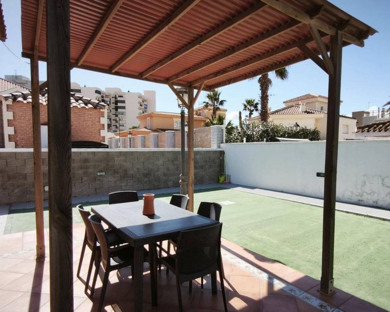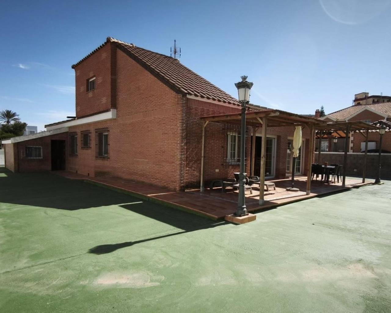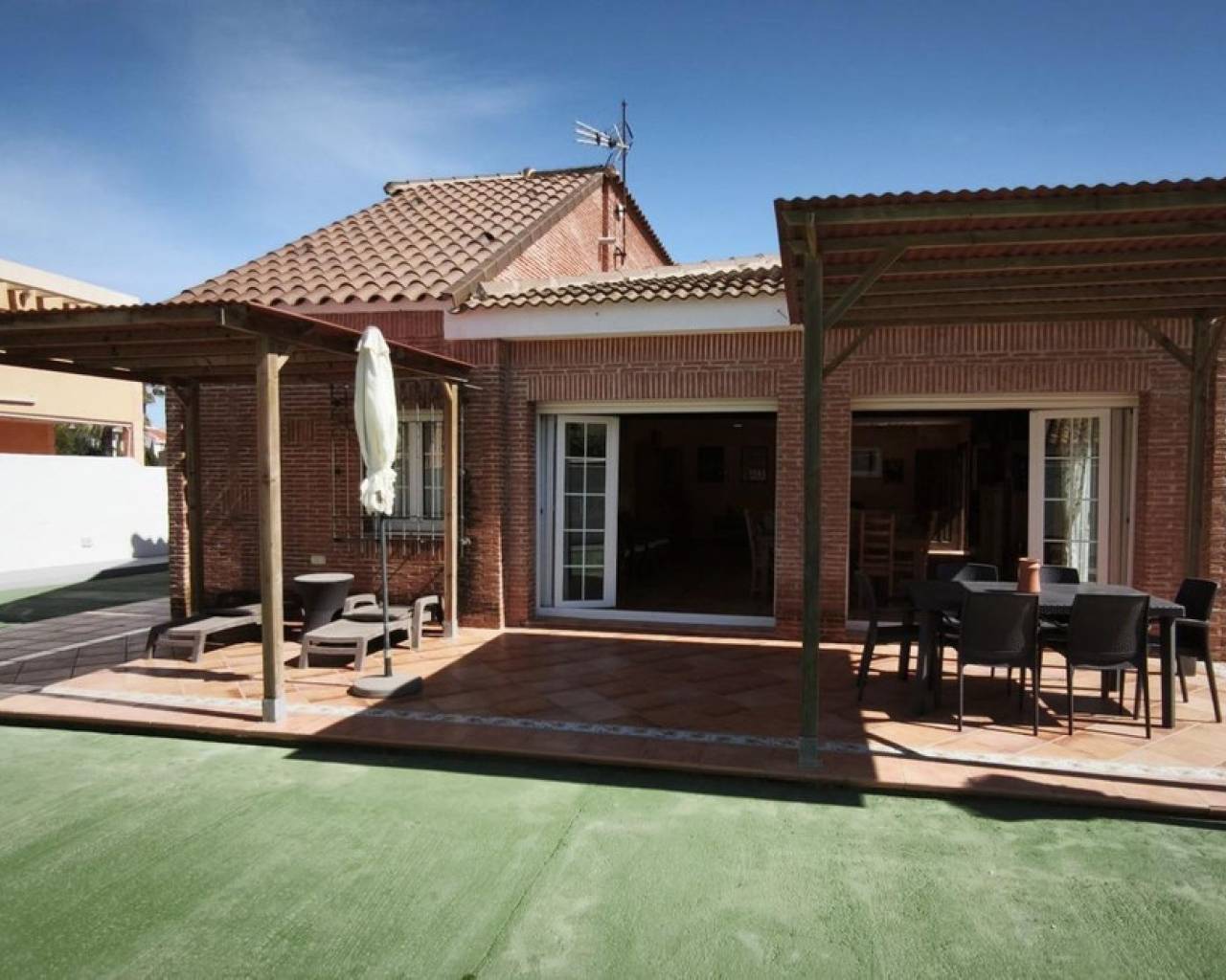 This detached villa in La Manga of 220m² on a 676m² plot, located at the beginning of La Manga, offers you an exclusive lifestyle just steps away from the sea. It is a ground-floor home designed with wheelchair access, with a total of 4 bedrooms and 3 full bathrooms. Double bedrooms with en-suite bathrooms. Guest House: Independent outdoor space, ideal for visitors or total privacy. Impeccable Condition: Comprehensive renovation in 2012 (pipes, installations, and walls). Stoneware floors, tilt-and-turn Climalit windows, and fitted wardrobes in all rooms. Ceiling fans in all bedrooms and the living room. Attic and private parking for 3 vehicles. At the beginning of La Manga, with all services nearby: supermarket, pharmacy, etc. Is this the home you were looking for for your family? Message me and let's schedule a viewing today. Features 50 meters from the sea 676 m² plot Wheelchair access Independent guest house Comprehensive renovation in 2012 Tilt-and-turn Climalit windows Fitted wardrobes in all rooms Private parking for 3 vehicles Attic Fans in all rooms