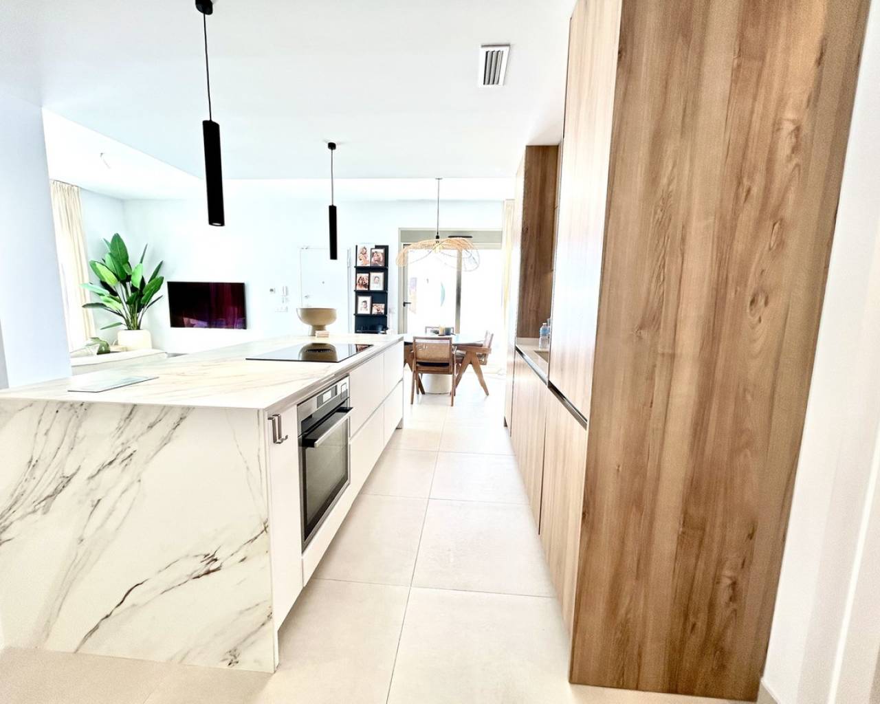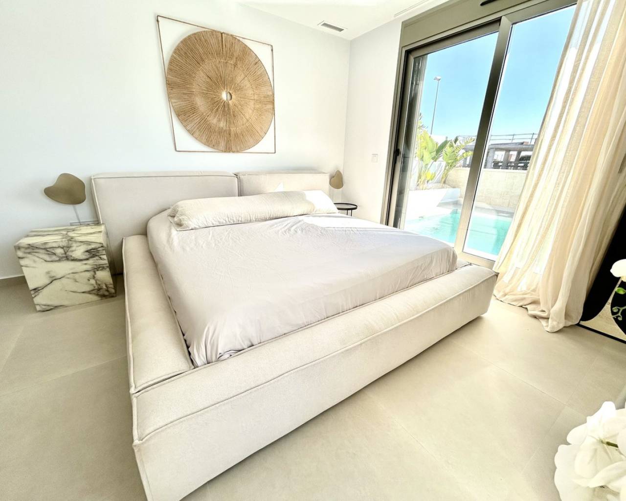 Set within a peaceful and exclusive residential area of San Miguel de Salinas, this exceptional three-year-old detached villa offers a refined blend of modern architecture, versatile living space, and energy-efficient design — perfect for those seeking comfort, privacy, and Mediterranean luxury. The main living accommodation is arranged across one beautifully designed level, featuring three spacious bedrooms and two stylish bathrooms. The open-plan living and dining area is filled with natural light and flows seamlessly to the outdoor terrace and private swimming pool, creating an ideal setting for both relaxed family living and sophisticated entertaining. A standout feature of this property is the private rooftop solarium, offering panoramic views and an additional outdoor living space. Complete with a fully equipped outdoor kitchen, it provides the perfect environment for al fresco dining, sunset drinks, and year-round entertaining under the Spanish sky. The villa also benefits from a substantial full-size underbuild, offering exceptional flexibility and lifestyle potential. This level currently comprises: a fourth bedroom and third bathroom, ideal for guests or independent accommodation a large private gym and a separate playroom This expansive space can easily be adapted into a cinema room, home office, guest apartment, or bespoke leisure suite depending on your needs. In addition, the property is fitted with 10 solar panels, enhancing energy efficiency and significantly reducing electricity costs while supporting sustainable living. Key luxury features include: 4 bedrooms | 3 bathrooms Single-level main living for ease and comfort Spectacular rooftop solarium with outdoor kitchen Private swimming pool and multiple outdoor entertaining areas Large, highly versatile underbuild with independent potential Solar-powered electricity system Quiet, upscale location close to golf courses, beaches, and amenities This villa presents a rare opportunity to acquire a nearly new, energy-efficient home with extensive indoor and outdoor living space in one of the most desirable areas of the southern Costa Blanca — ideal as a permanent residence, executive holiday retreat, or premium investment property.