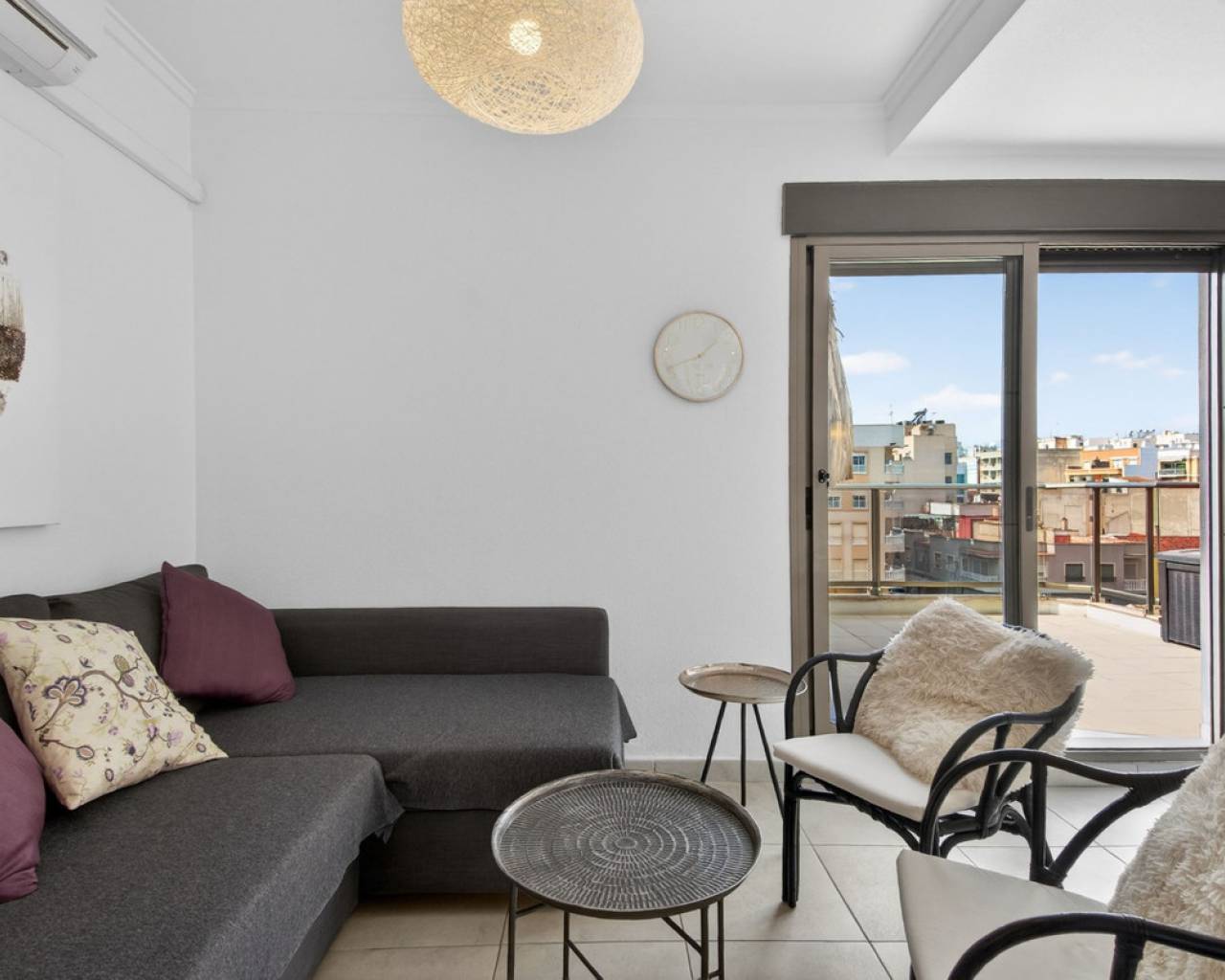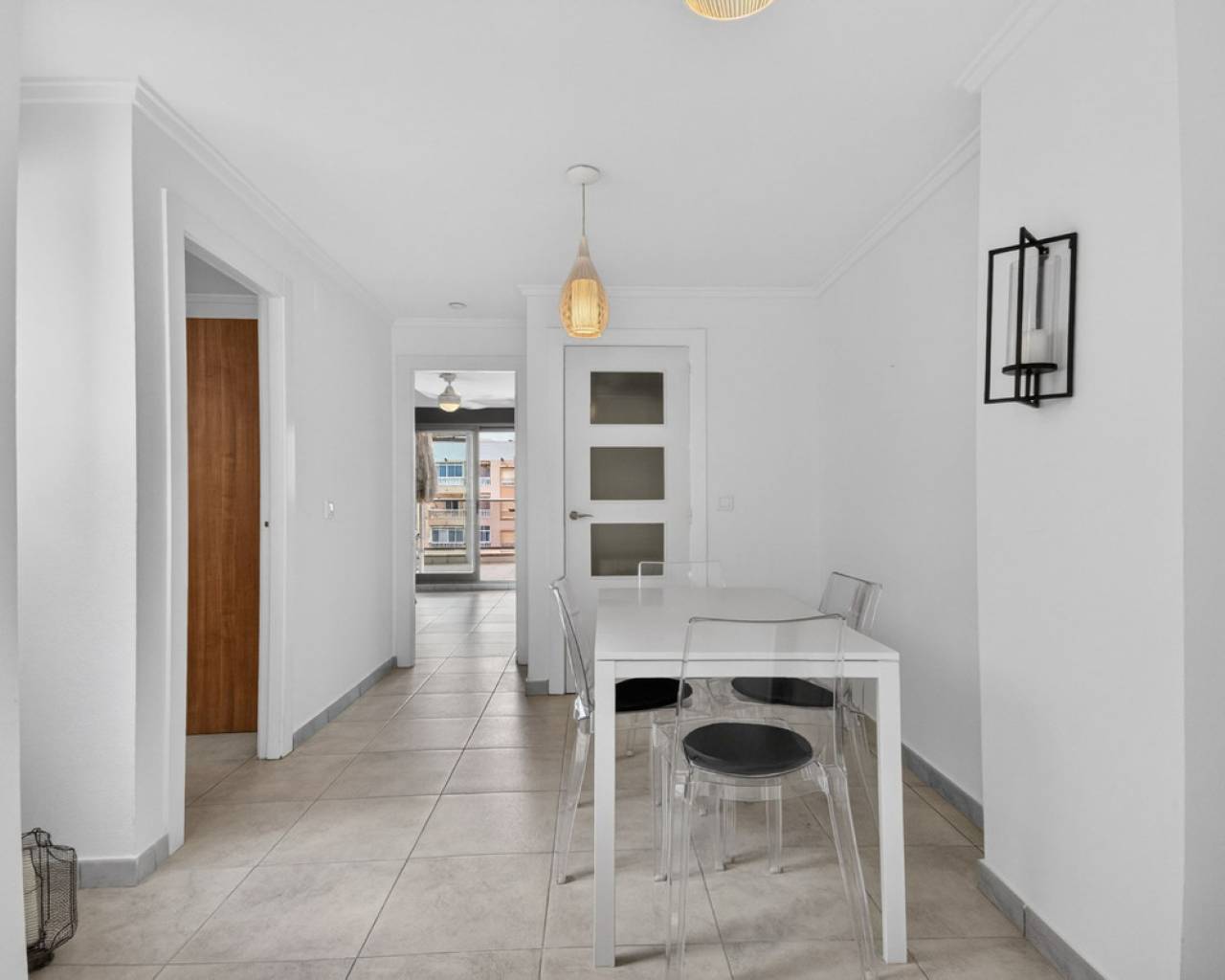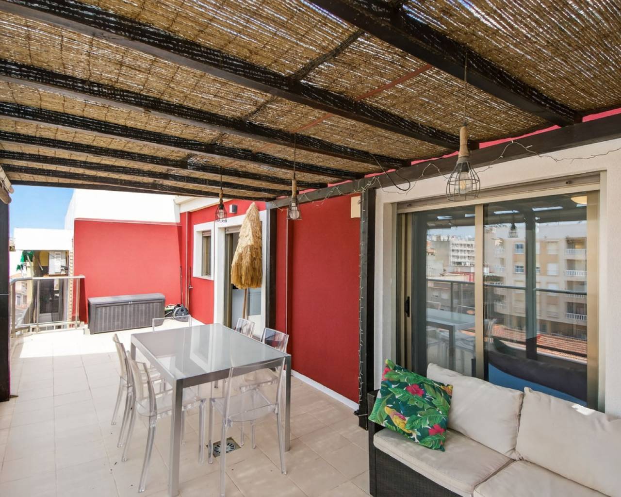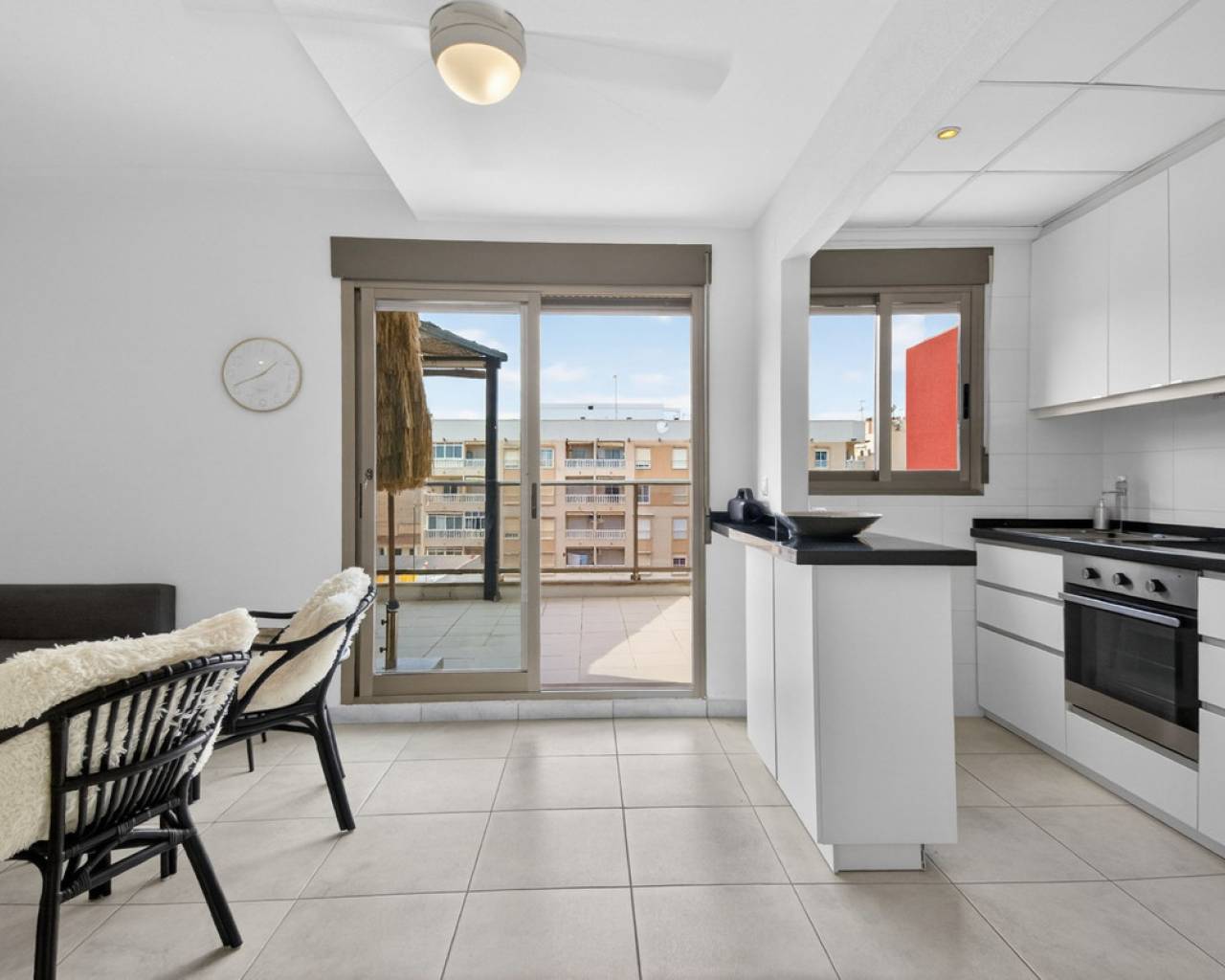 We are delighted to present this exclusive penthouse in the heart of Guardamar del Segura. This bright and beautifully presented apartment features a stylish Scandinavian design and offers two spacious bedrooms, two modern bathrooms, a separate laundry room, and a large storage room. The open-plan living and dining area creates a welcoming atmosphere, flowing seamlessly onto a generous private terrace where you can enjoy afternoon and evening sunshine. Residents also have access to a shared rooftop terrace. Ideally located just a short stroll from the beach, the property is surrounded by an excellent selection of restaurants, local shops, and everyday amenities. This is a perfect home for those seeking a contemporary, well-maintained penthouse in a prime location, with fantastic year-round sunshine. Contact us today to arrange a viewing. Welcome to Guardamar del Segura!