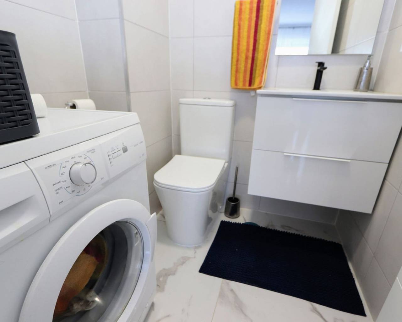 Take a look at this beautiful fully renovated Beachside 1st Floor Apartment located in the popular Punta Prima area. The apartment consists of two bedrooms, 2 bathrooms, living/dining area and a fully fitted kitchen. The property benefits from a private terrace with sea views, air conditioning, parking and sold furnished. The complex offers a communal swimming pool area and unnumbered parking spaces. Punta Prima is a premier Spanish seaside resort on the southern Costa Blanca, located within 30 minutes of both Murcia and Alicante international airports. The local beaches are exceptionally clean and hold Blue Flag status. The area also boasts a commercial center with a supermarket and a variety of international restaurants. Residents can enjoy three nearby golf courses, as well as water sports, fishing, and sailing. The local market at Playa Flamenca is open on Saturdays for fresh produce and shopping. For those who enjoy walking, Torrevieja is just a thirty-minute stroll along the coast, with an hourly bus service also available