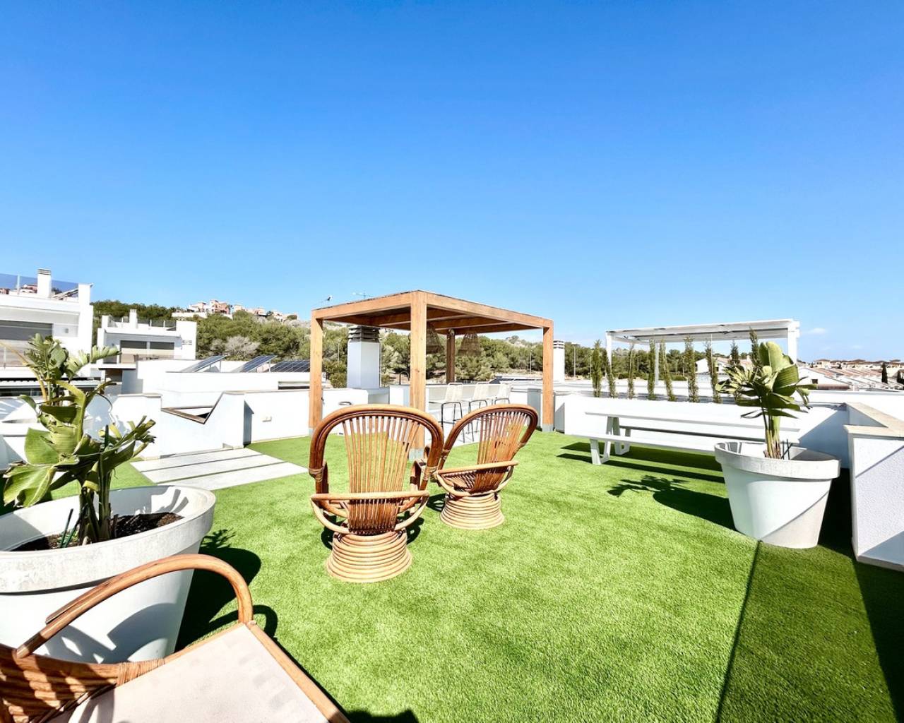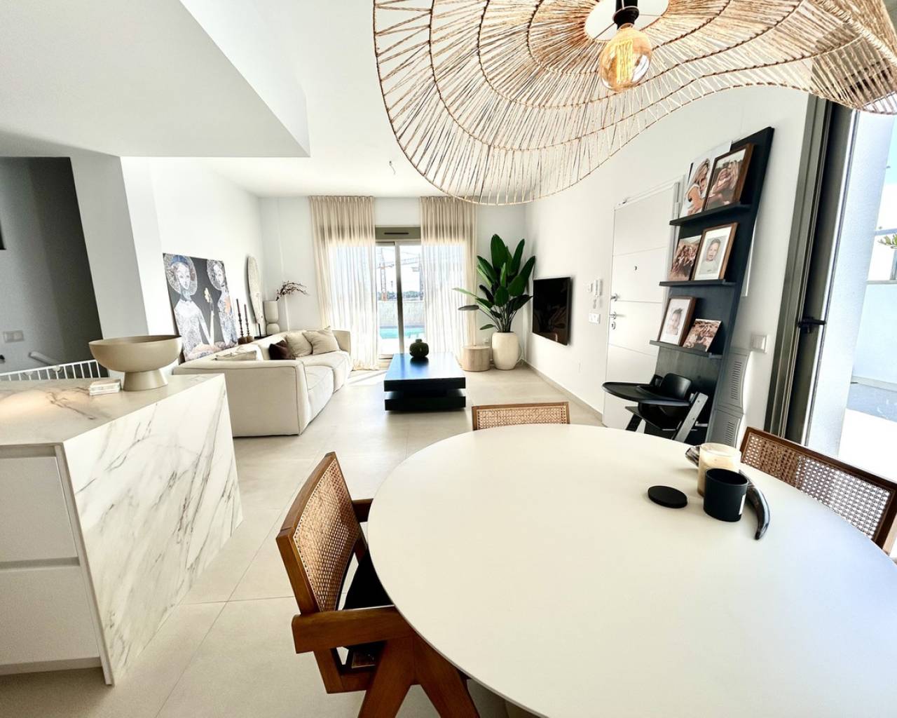 Set within a peaceful and exclusive residential area of San Miguel de Salinas, this exceptional three-year-old detached villa offers a refined blend of modern architecture, versatile living space, and energy-efficient design — perfect for those seeking comfort, privacy, and Mediterranean luxury. The main living accommodation is arranged across one beautifully designed level, featuring three spacious bedrooms and two stylish bathrooms. The open-plan living and dining area is filled with natural light and flows seamlessly to the outdoor terrace and private swimming pool, creating an ideal setting for both relaxed family living and sophisticated entertaining. A standout feature of this property is the private rooftop solarium, offering panoramic views and an additional outdoor living space. Complete with a fully equipped outdoor kitchen, it provides the perfect environment for al fresco dining, sunset drinks, and year-round entertaining under the Spanish sky. The villa also benefits from a substantial full-size underbuild, offering exceptional flexibility and lifestyle potential. This level currently comprises: a fourth bedroom and third bathroom, ideal for guests or independent accommodation a large private gym and a separate playroom This expansive space can easily be adapted into a cinema room, home office, guest apartment, or bespoke leisure suite depending on your needs. In addition, the property is fitted with 10 solar panels, enhancing energy efficiency and significantly reducing electricity costs while supporting sustainable living. Key luxury features include: 4 bedrooms | 3 bathrooms Single-level main living for ease and comfort Spectacular rooftop solarium with outdoor kitchen Private swimming pool and multiple outdoor entertaining areas Large, highly versatile underbuild with independent potential Solar-powered electricity system Quiet, upscale location close to golf courses, beaches, and amenities This villa presents a rare opportunity to acquire a nearly new, energy-efficient home with extensive indoor and outdoor living space in one of the most desirable areas of the southern Costa Blanca — ideal as a permanent residence, executive holiday retreat, or premium investment property.