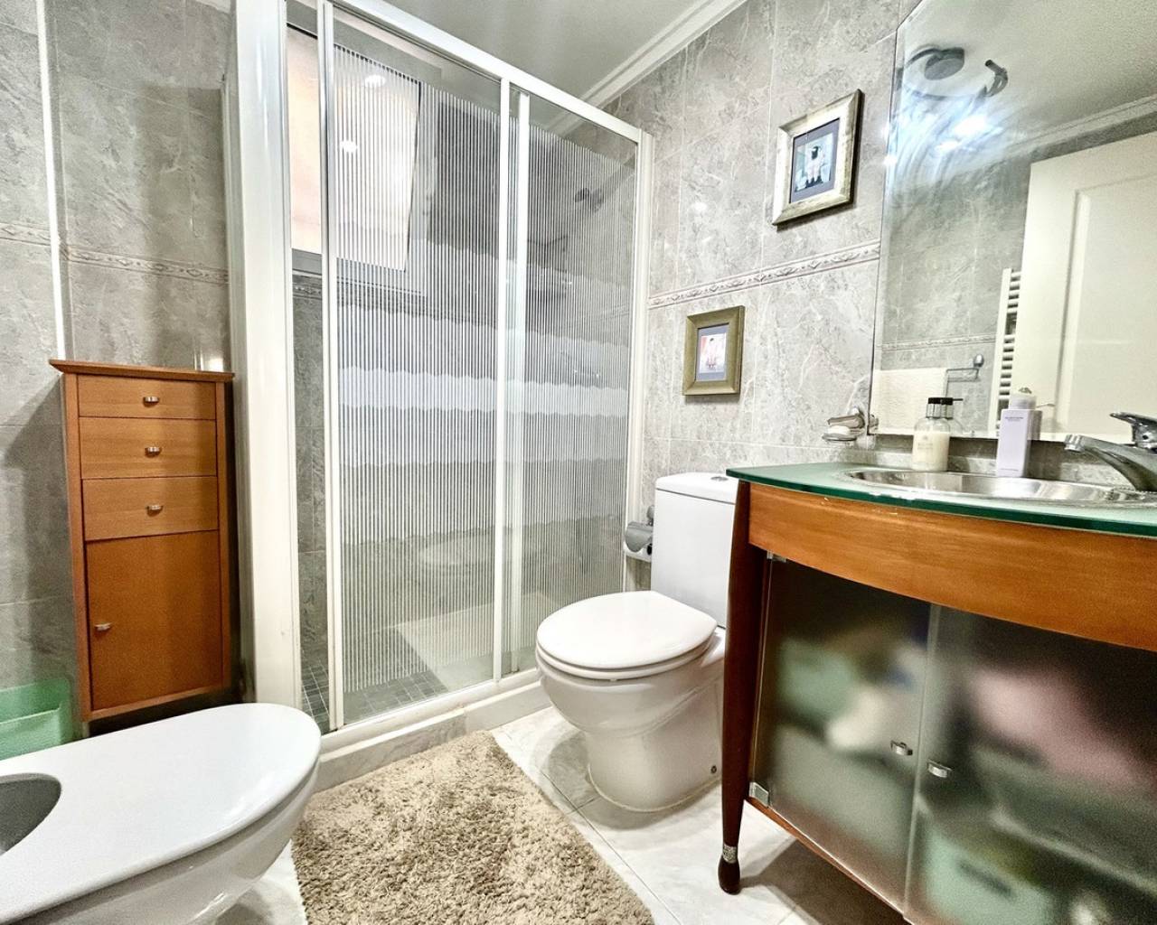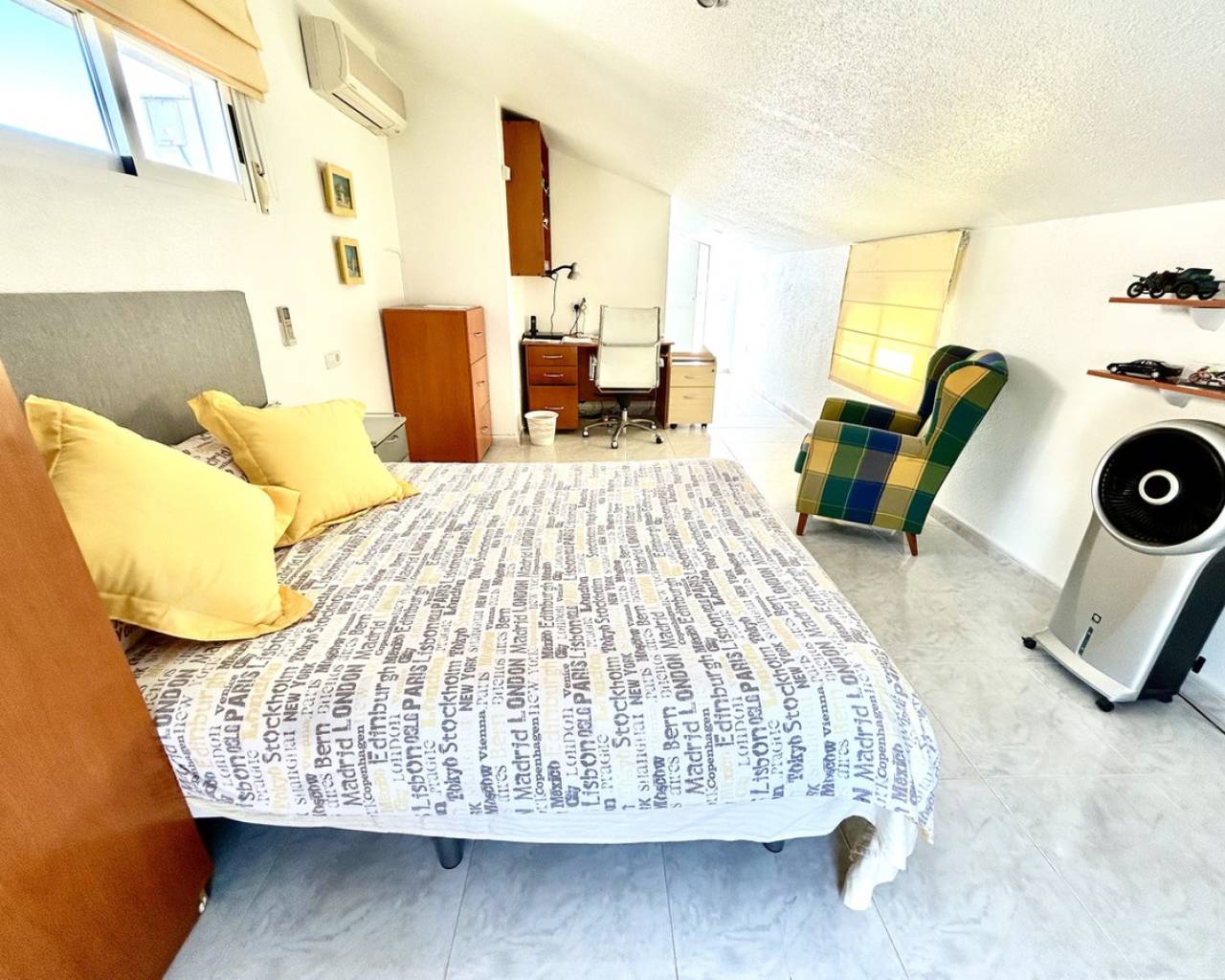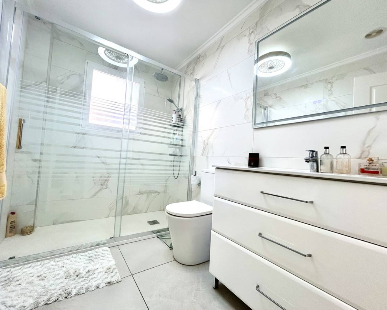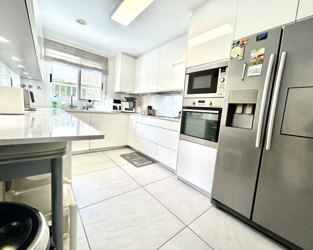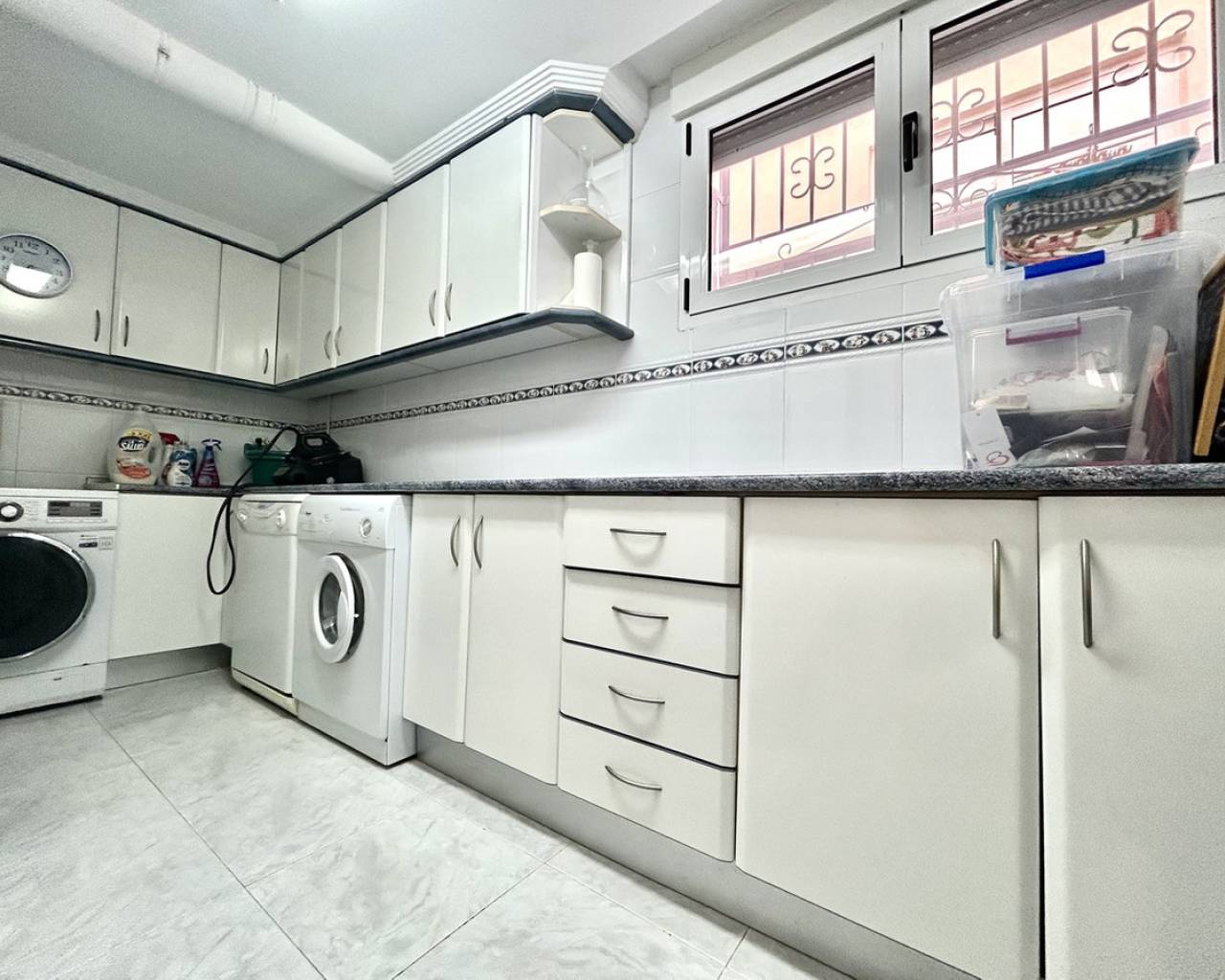 Nestled in the heart of Pinar de Campoverde, this stunning 4-bedroom, 3-bathroom villa offers the perfect blend of comfort, space, and Mediterranean lifestyle — all just a short stroll from local bars, restaurants, shops, and everyday amenities. Designed for both relaxed family living and effortless entertaining, the property boasts a private swimming pool, beautifully landscaped gardens illuminated with solar lighting, and a fully equipped outdoor kitchen — ideal for hosting guests and enjoying long summer evenings. For added peace of mind, the villa is fitted with security cameras throughout. Inside, the home is equipped with oil central heating and air conditioning, ensuring year-round comfort. The main level welcomes you with a spacious and bright living room, complemented by a dedicated dining area and a separate modern kitchen. Also on this floor is the impressive master bedroom featuring a contemporary ensuite bathroom. Downstairs, you'll find a large entertainment area — perfect as a games room, cinema space, or guest suite — along with an additional bedroom and bathroom, offering flexibility for visitors or extended family. The top floor hosts two further bedrooms and two bathrooms, all finished to a high standard. From here, you can enjoy beautiful sea views, which are also visible from the expansive terrace — a perfect spot for morning coffee or sunset relaxation. Completing the property is a large private garage, providing secure parking and additional storage. This villa combines an excellent central location, generous living space, and desirable outdoor features, making it an exceptional opportunity whether as a permanent residence, holiday home, or investment.