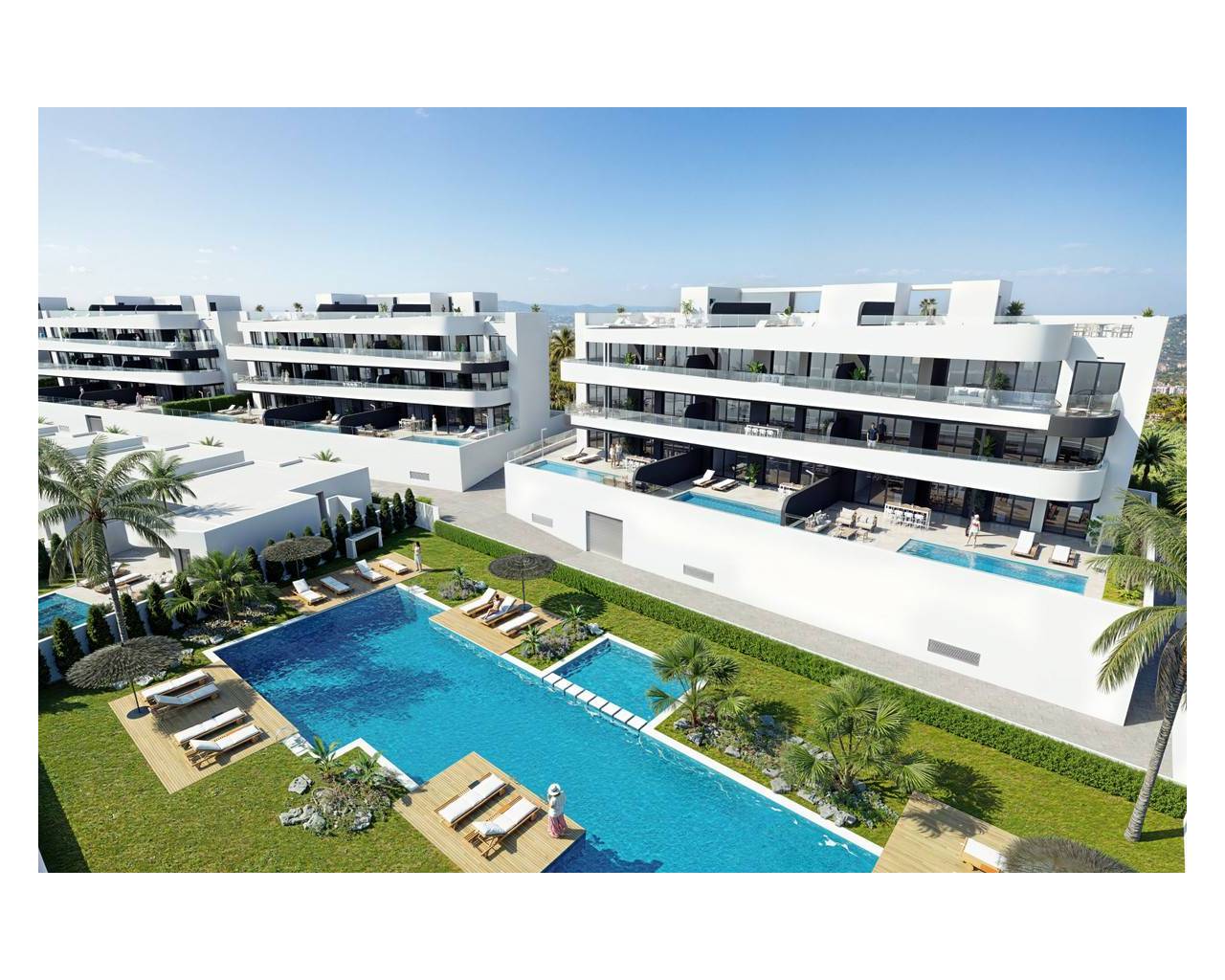 The Costa Cálida has become one of the most desirable destinations along the Mediterranean, ideal for both living and investment. Its mild climate, natural surroundings, and strong tourism appeal make it a perfect choice for those seeking high-quality homes near the sea. Currently, new residential projects in the area combine modern design, prime locations, and high construction standards. You can explore the latest developments and arrange a personalized visit to experience them firsthand. One of the featured developments is situated on the front line of Serena Golf, just minutes from Mar Menor. This prime location offers a unique balance between a peaceful natural environment and convenient access to the vibrant town of Los Alcázares, where you'll find restaurants, shops, sports facilities, and a marina. This seamless connection between nature, leisure, and urban living is one of the defining features of these developments. Each property has been carefully designed to maximize natural light, enhance cross ventilation, and create a strong visual connection between indoor and outdoor spaces. Ground-floor apartments include private gardens, offering additional outdoor living areas with full privacy. The buildings are equipped with two elevators for easy access from all levels, and every apartment includes a parking space. Additional features include: - Spacious terraces with integrated planters - Open views of the golf course and the sea - Landscaped communal areas that create a calm and inviting atmosphere These apartments stand out for their orientation, private outdoor spaces, and panoramic views. Built with high-quality materials, each home is designed to prioritize comfort, functionality, and modern living.