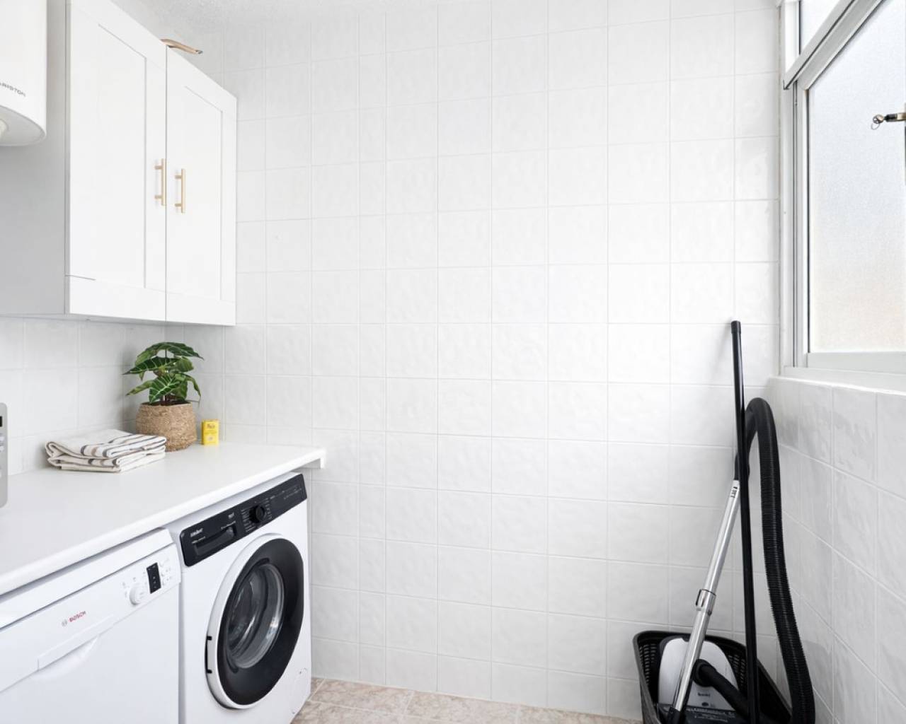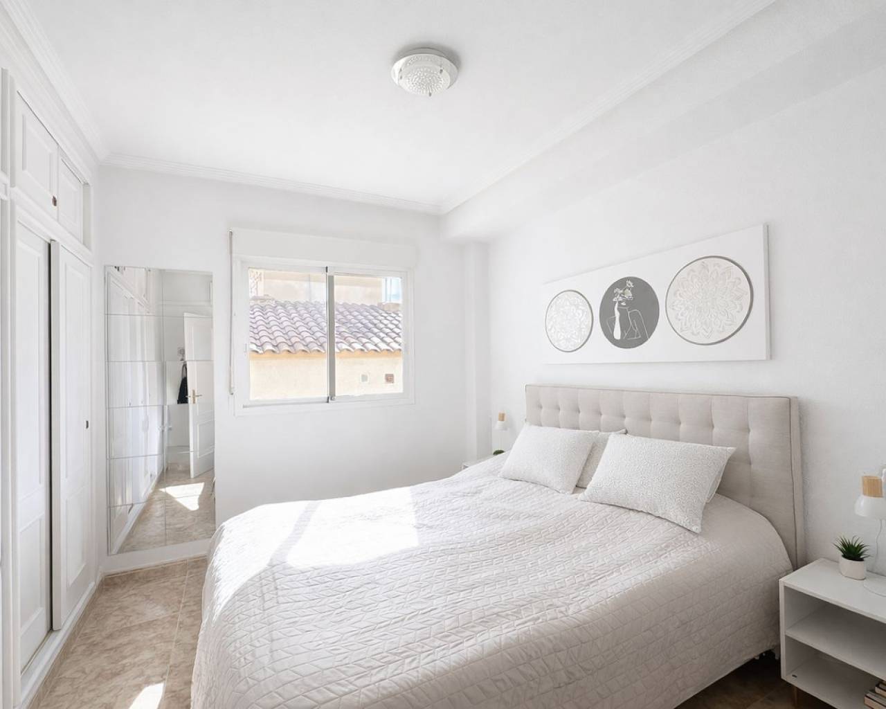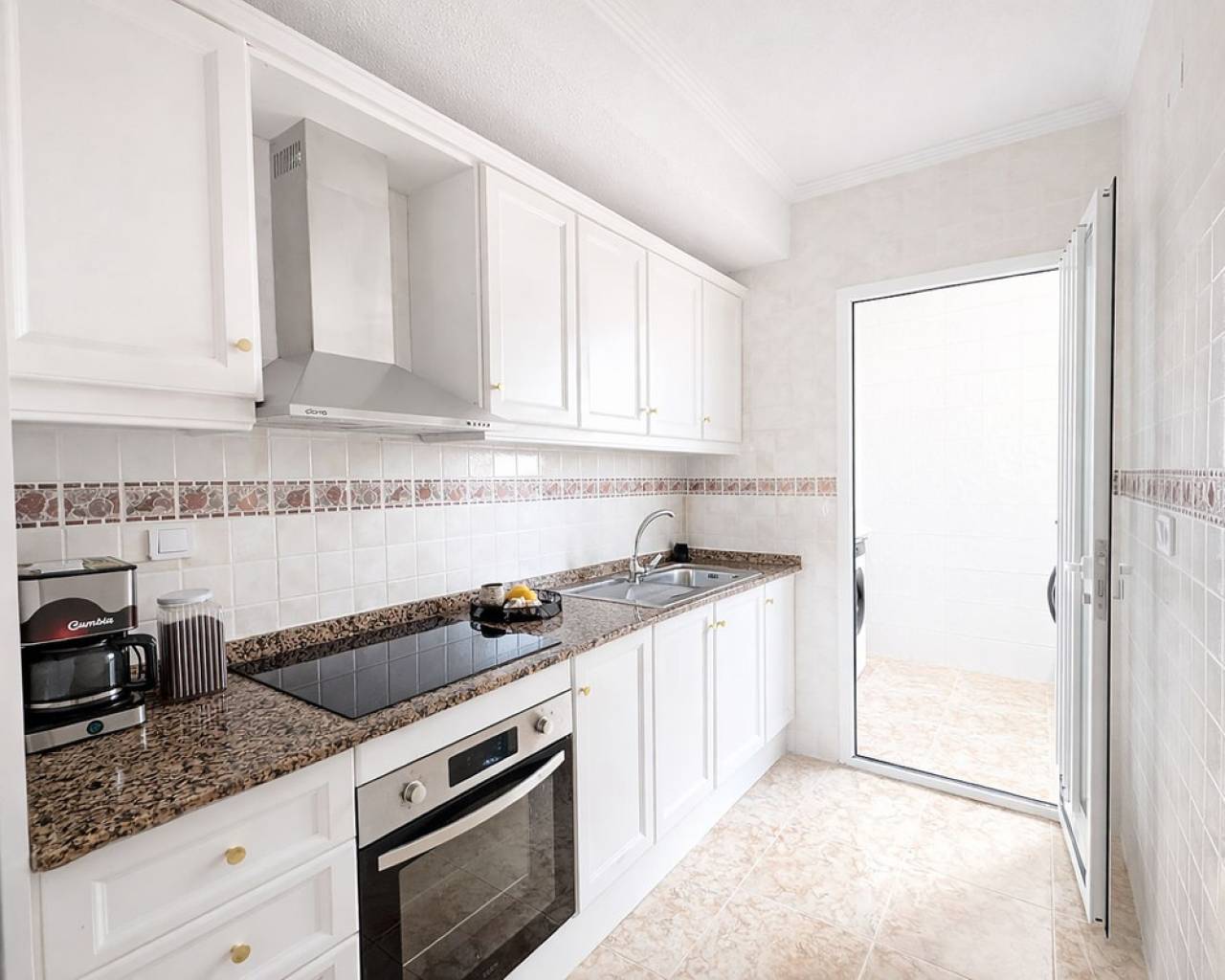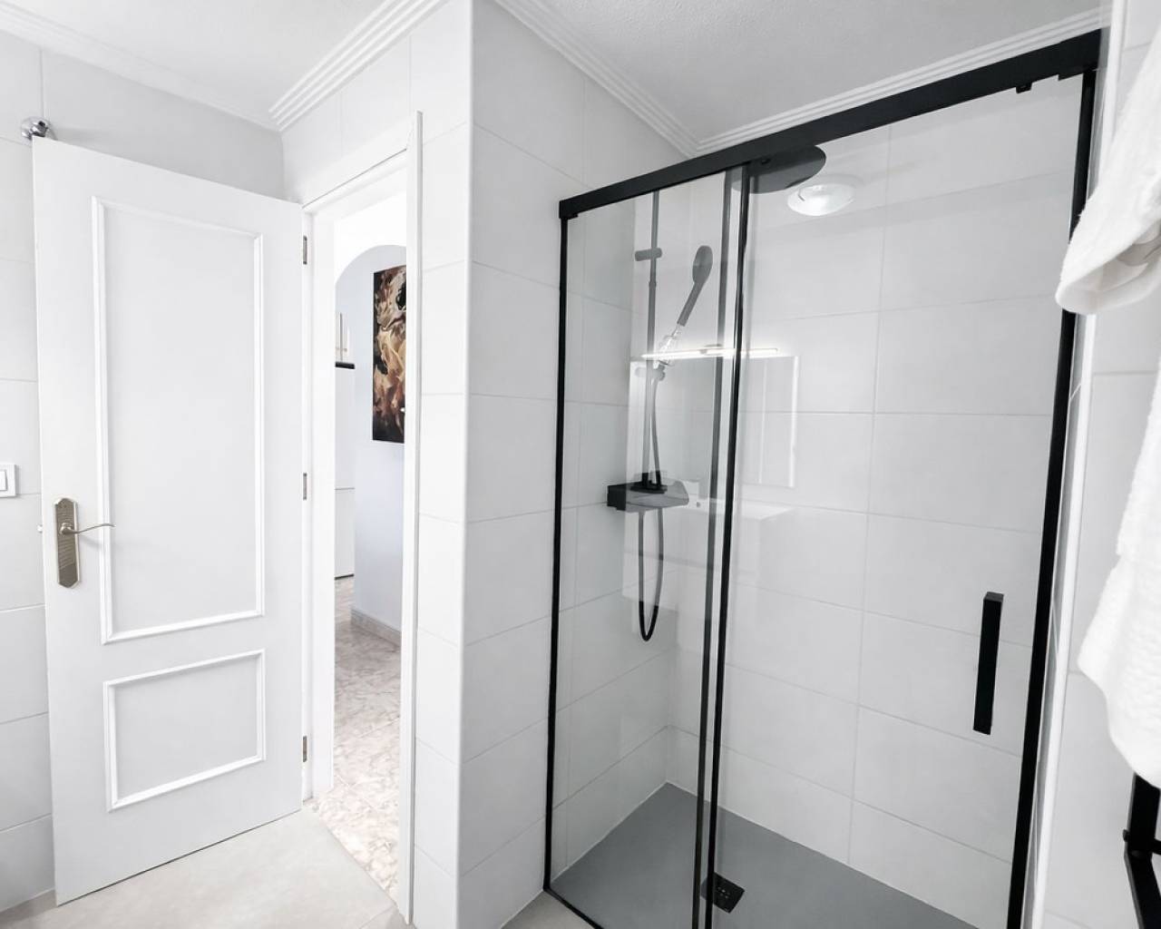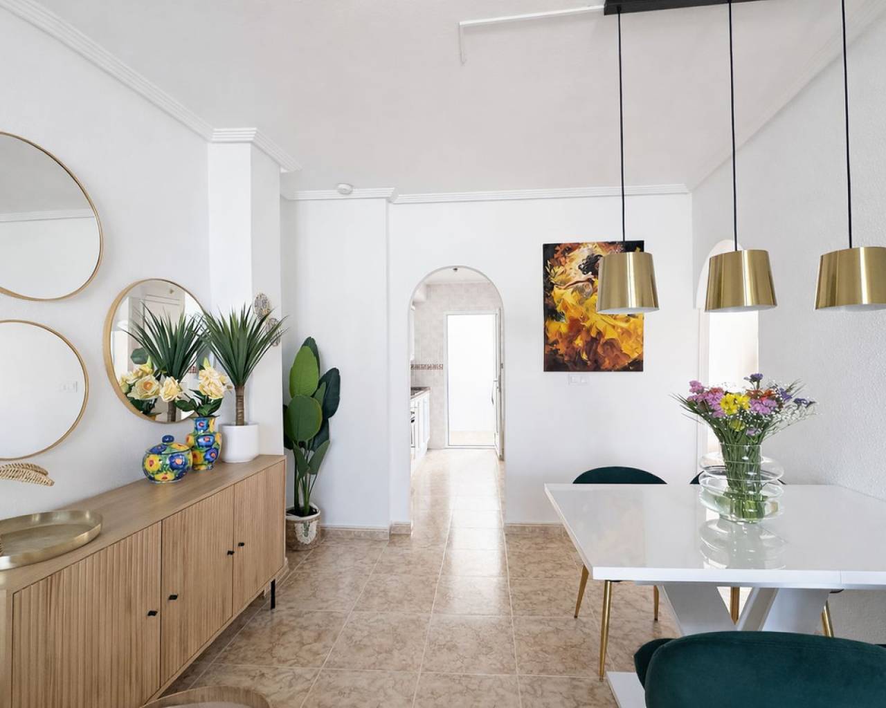 Top Floor Apartment with Sea Views & Private Rooftop Terrace – Los Altos, Costa Blanca This exceptional top floor apartment offers a rare combination of privacy, natural light, and panoramic sea views in a prime south-facing position. Located at the highest point of the building, the property enjoys a peaceful setting with open views across rooftops and towards the Mediterranean Sea, creating a true sense of space and tranquility. The apartment has been fully renovated in a refined Scandinavian style, where clean lines and modern finishes meet subtle Mediterranean warmth. Sold fully furnished, the property is ready to move into immediately, making it an ideal choice for both permanent living and holiday use. Inside, the home features two spacious bedrooms with built-in wardrobes and a fully renovated bathroom finished with high-quality materials. The bright living area flows naturally into a glazed balcony, which extends the living space and offers calming views over the communal pool, lush gardens, and the sea in the distance. The modern kitchen is fully equipped with new appliances, including an induction hob and oven, and is complemented by a practical patio area with integrated laundry space. The highlight of the property is the private rooftop terrace of over 25 sqm, perfectly positioned to the south. This elevated outdoor space is designed for both relaxation and social living, offering uninterrupted views of the Mediterranean. A unique feature is the private mini gym, allowing you to train in complete privacy while enjoying the surrounding views. The property is located in a well-maintained and quiet urbanisation with access to communal pools and green areas, while still being close to all essential amenities. Punta Marina shopping centre, with its selection of restaurants, bars, and services, is within walking distance, and the beach can be reached in approximately 25 minutes. Key features include: South-facing top floor position with sea views Private rooftop terrace (25+ sqm) with panoramic views Fully renovated in modern Scandinavian style Sold fully furnished and move-in ready 2 bedrooms and 1 high-quality bathroom Glazed balcony with views of pool, gardens, and sea Fully equipped kitchen with new appliances Private underground garage space Quiet urbanisation with communal pool and green areas Walking distance to Punta Marina and close to the beach This is a property designed for buyers seeking a high-quality home that combines modern design, outdoor living, and a premium lifestyle on the Costa Blanca.