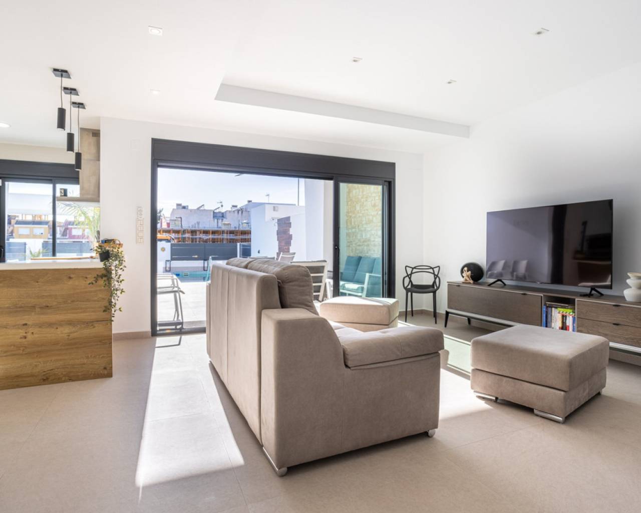This exceptional almost new detached villa offers a perfect blend of contemporary design, comfort, and investment potential. Set on a 238m² private plot, the property has been thoughtfully designed to maximize space, natural light, and seamless indoor–outdoor living, with a total built area of approximately 150m². Upon entering the villa, you are welcomed into a bright and spacious open-plan living area, where clean architectural lines and large windows create an airy, modern atmosphere. The fully fitted kitchen is elegantly integrated into the space and comes complete with quality electrical appliances, offering both style and practicality—ideal for everyday living or entertaining guests. The main level comprises three generously sized bedrooms, all designed with comfort in mind, along with two contemporary bathrooms finished to a high standard. An additional guest WC adds convenience for visitors. One of the standout features of this property is the expansive basement level, which significantly enhances the living space. This versatile area includes an additional bedroom and offers endless possibilities—whether as a guest suite, home cinema, gym, office, or games room. Step outside to your own private oasis, where a 6x3 metre swimming pool takes centre stage, surrounded by ample terrace space for sunbathing, dining, and relaxing in complete privacy. The outdoor area has been designed for low maintenance while still providing an inviting environment for enjoying the Mediterranean lifestyle. The property also benefits from secure parking within the plot. This villa is equipped with a range of modern features to ensure maximum comfort and energy efficiency, including ducted air conditioning throughout, electric blinds, and a solar panel system (12 panels) to reduce energy costs and environmental impact. Offered fully furnished, the property is ready for immediate occupation or rental. Importantly, it also includes a valid tourist licence, making it a highly attractive opportunity for those seeking a turnkey investment with strong rental potential. Combining sleek modern living with practical features and excellent income prospects, this villa represents a rare opportunity to acquire a move-in-ready home in pristine condition.
