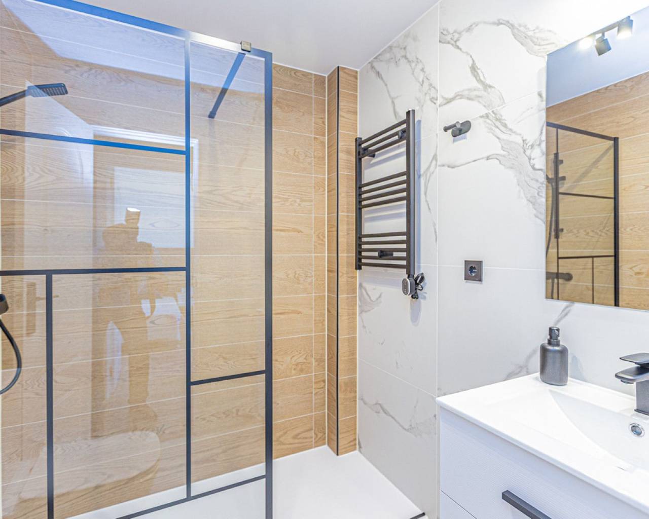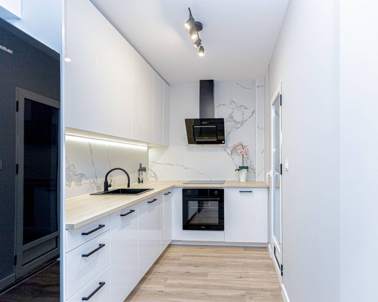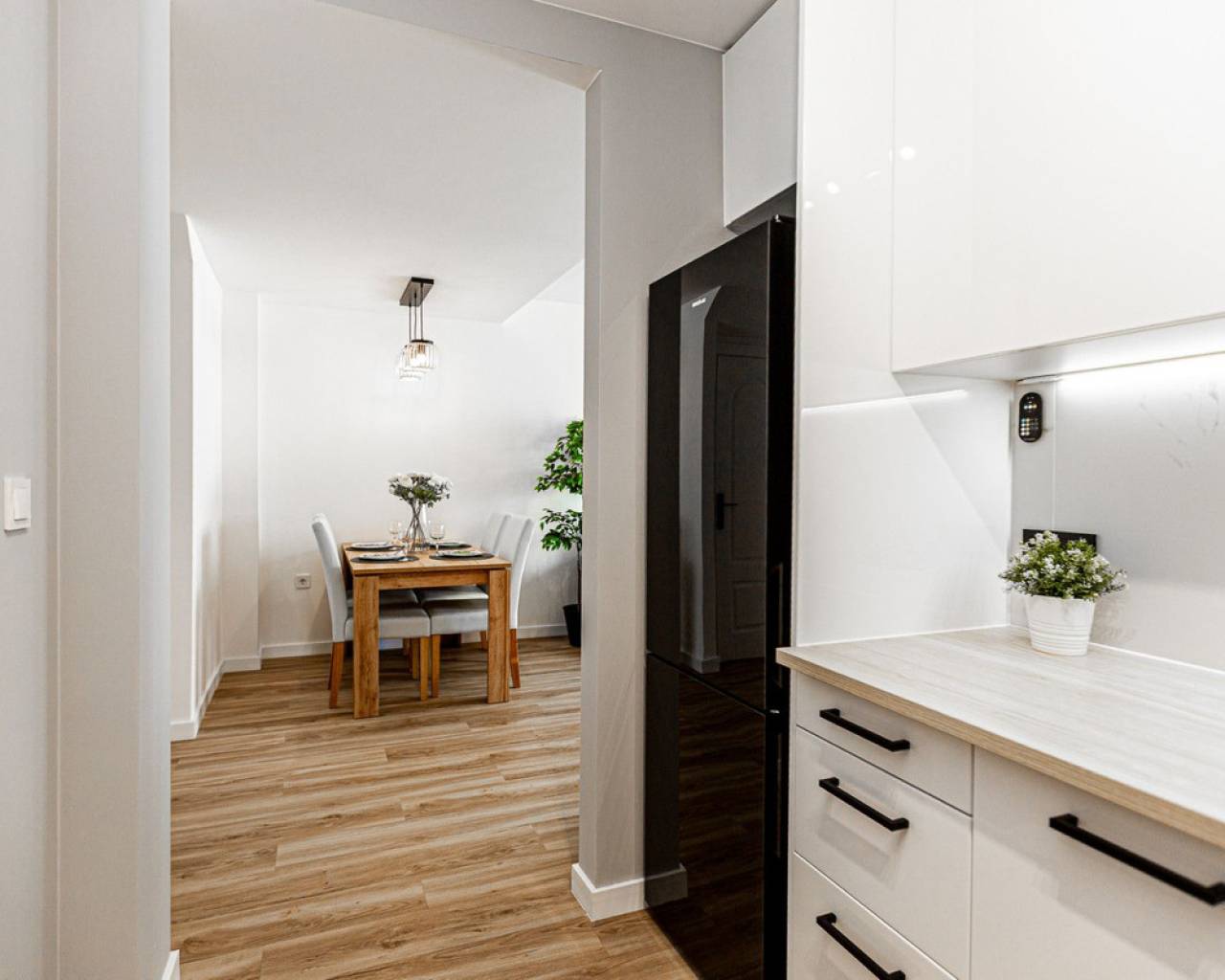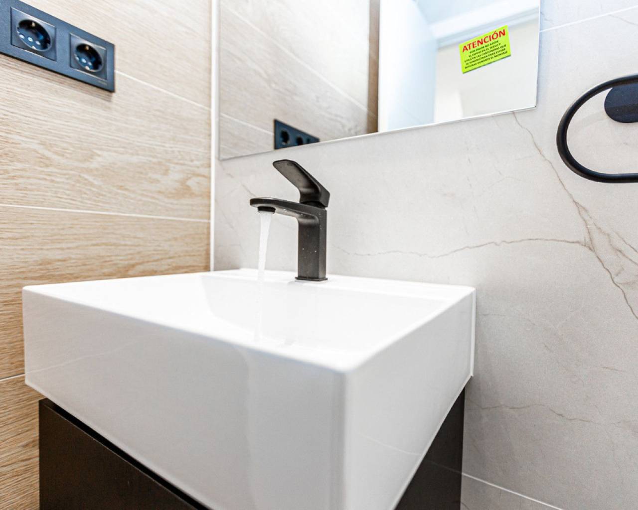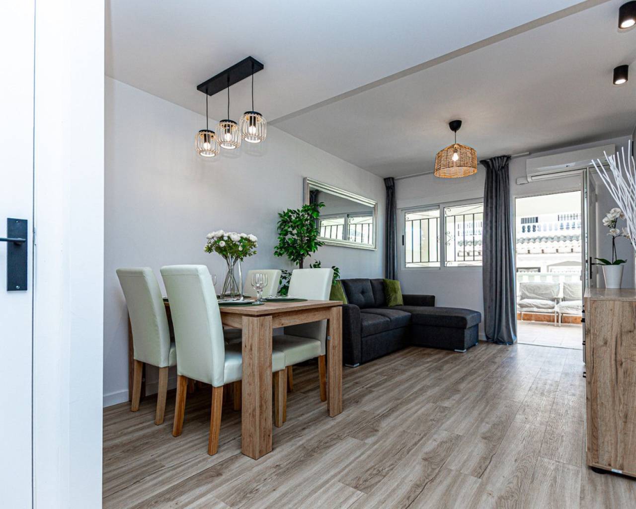 The property is in impeccable condition, ready to move in, and is spread over two floors. It offers a modern and functional layout with 3 bedrooms and 2 full bathrooms.The entrance features a fully tiled private garden, ideal for enjoying the Mediterranean climate with minimal maintenance. A few steps lead to a covered porch, perfect for setting up an outdoor seating area.The ground floor includes a bright L-shaped living-dining room, cleverly adapted to add an extra bedroom—ideal for guests or individuals with reduced mobility. There is also a separate kitchen equipped with all modern appliances, a laundry area, a bathroom with shower, and a handy under-stairs storage space.Upstairs you will find two spacious double bedrooms with freestanding wardrobes, and a second full bathroom with bathtub. The master bedroom benefits from a sunny south-facing orientation with plenty of natural light throughout the day.The home features air conditioning in all bedrooms and the living room, and is sold fully furnished with quality furniture and appliances (excluding personal effects and decorative items).The community offers a lovely communal pool, and the home is located on a quiet street with easy parking and a pleasant environment.Prime location:Only 400 m from Consum supermarketSurrounded by restaurants including Asia Kitchen, a stone-grilled meat restaurant, and the popular pub The Bridge15-minute walk to Punta Marina shopping centreJust 2.5 km from Punta Prima beachIdeal as a permanent residence, holiday home or turnkey rental investment. A fantastic opportunity in one of the most desirable areas of the Costa Blanca.