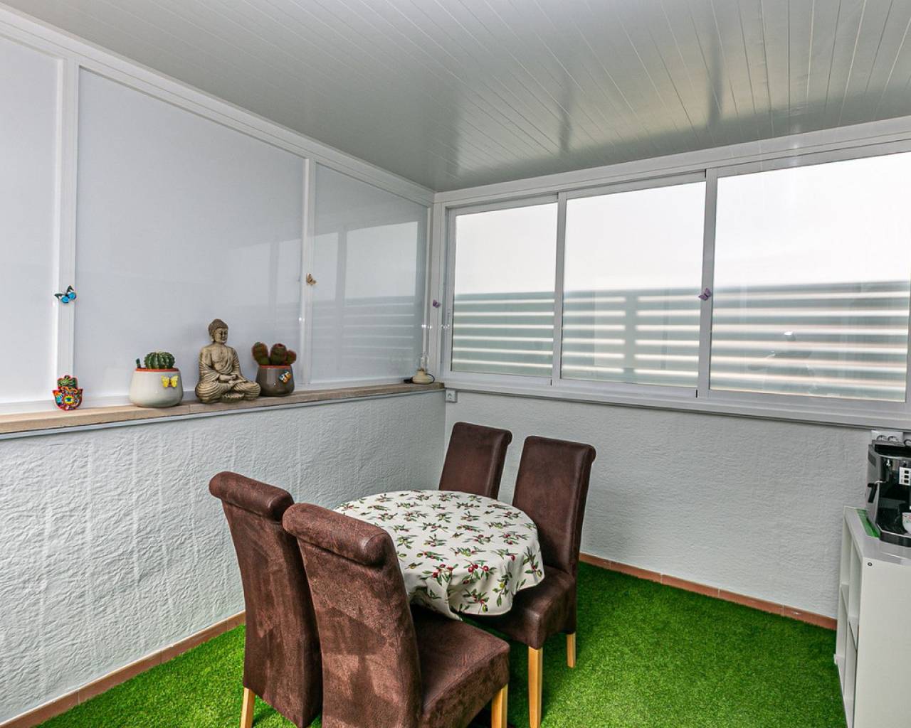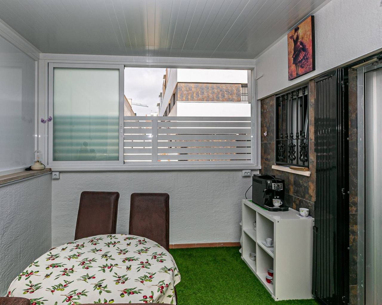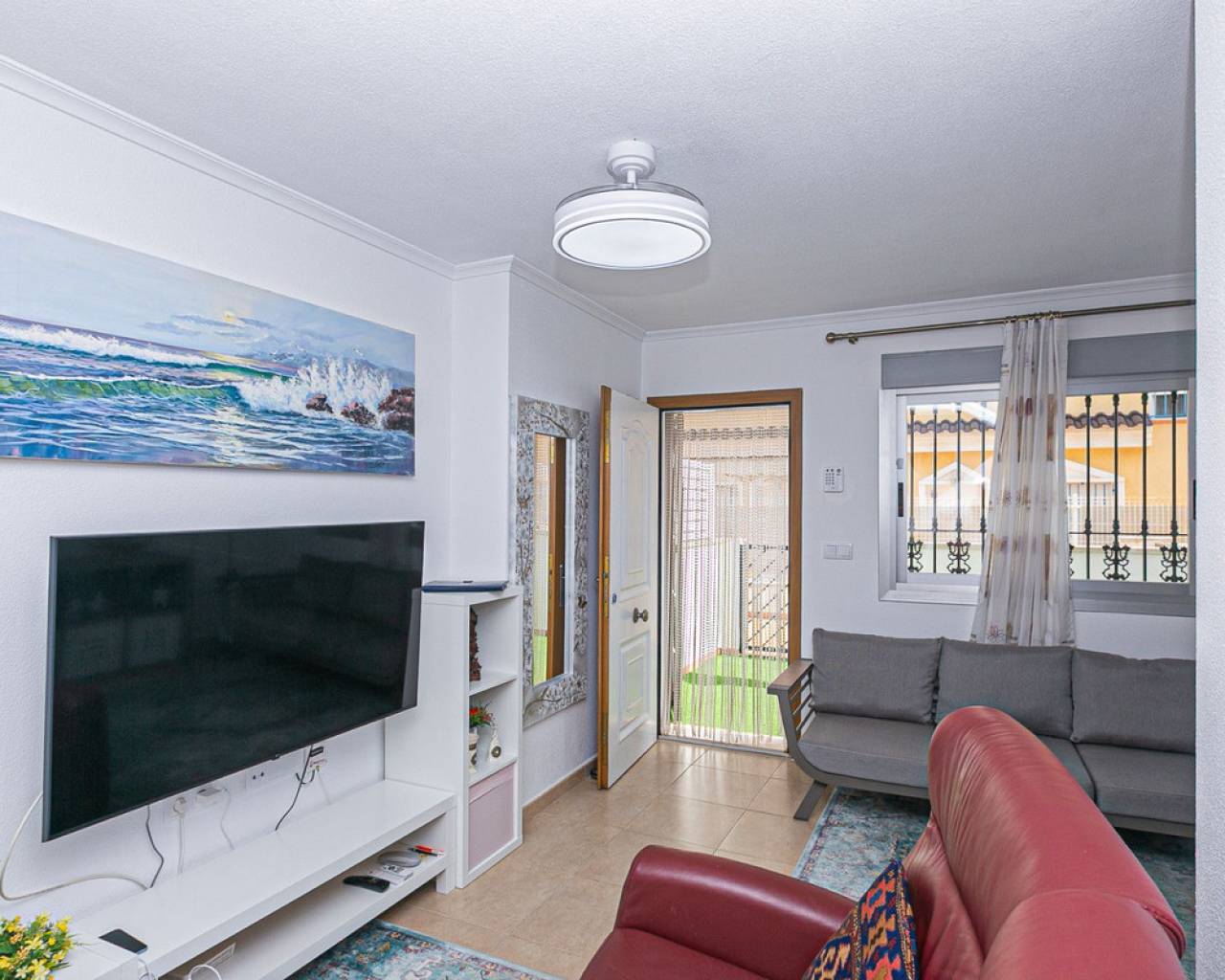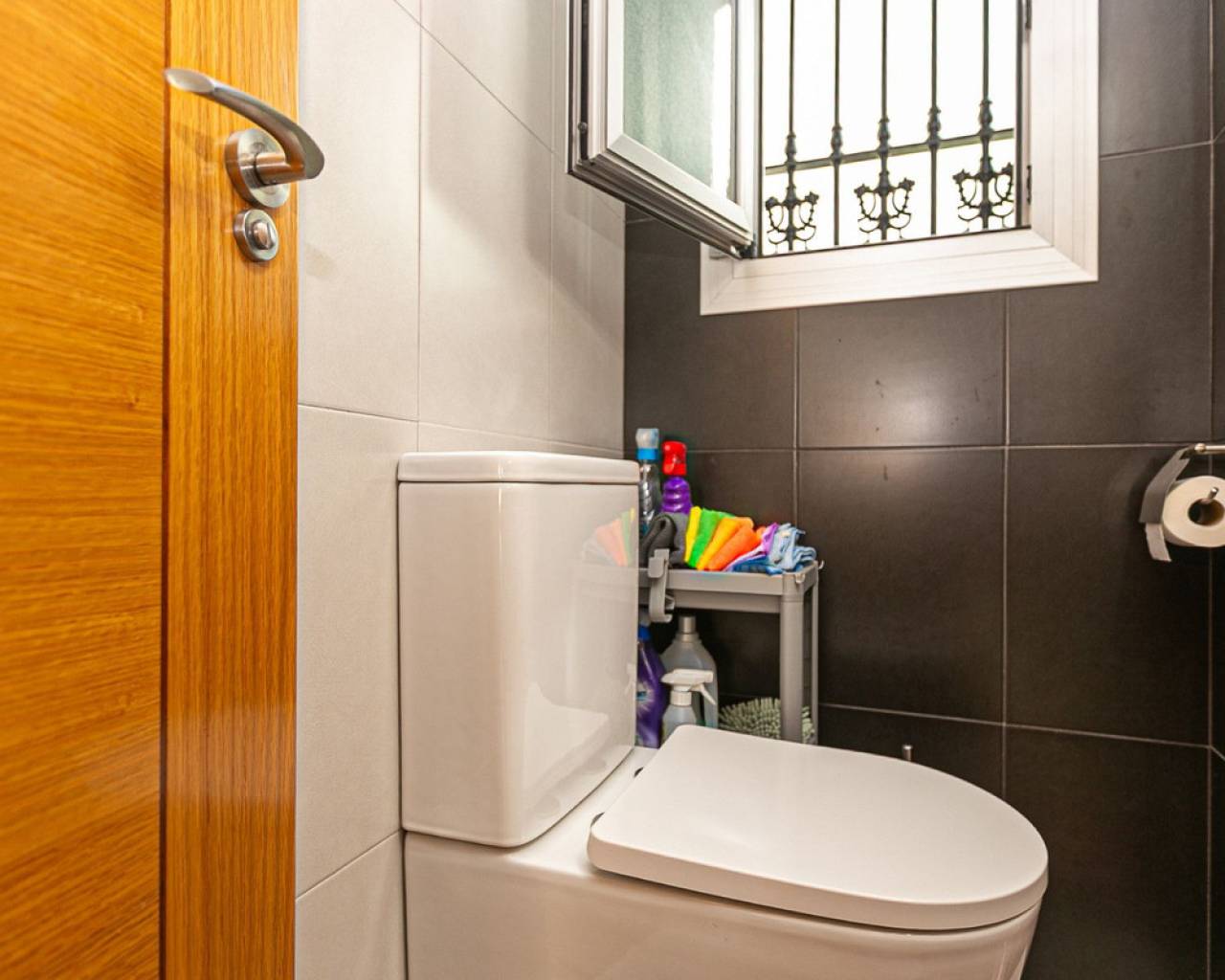 We present an attractive townhouse located in a gated residential complex in Guardamar del Segura, with a communal pool available to all residents.The property has an independent entrance and a front terrace. Upon entering through the main door, there is a living room and a guest toilet. Next is the separate kitchen, which leads to a glazed and enclosed rear patio that can be opened on the sides through sliding windows – ideal as a bright dining area.On the first floor, there are two spacious bedrooms with fitted wardrobes and a modern bathroom with shower. The third floor features another bedroom with two exits: one to a small patio where the washing machine/dryer and water heater are located, and the other to an outdoor terrace perfect for enjoying breakfast in the open air. From this terrace there are sea views.A highlight of this home is its private garage with direct access from the street. It is sold fully furnished (except personal belongings), with appliances, centralized air conditioning, awning, sofa with integrated armchair, solar panel for hot water, and in the third bedroom a split unit, electric towel warmer, ceiling fan and television with German channels.Additional information about Guardamar del Segura and surroundings:Guardamar del Segura is a coastal town located in the south of the Costa Blanca, offering about 11 kilometres of fine sandy beaches. It is approximately 33 km from Alicante–Elche Airport. The La Marquesa Golf Course (in Ciudad Quesada) is one of the nearest in the area, just 7.2 km from the property. Contact us if you wish to arrange a viewing.
