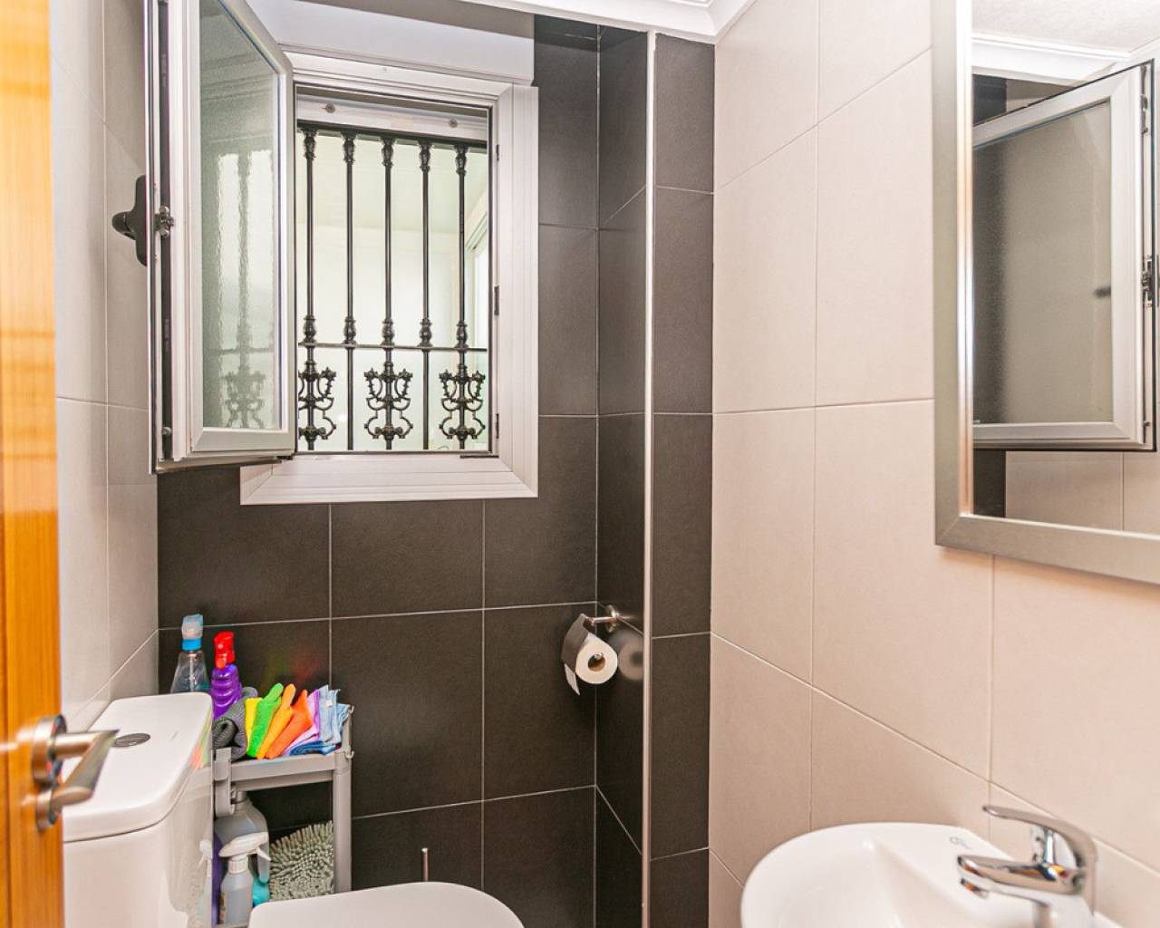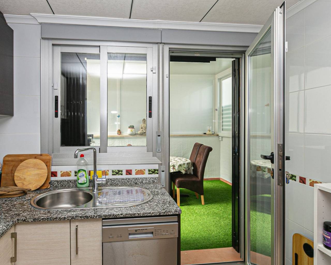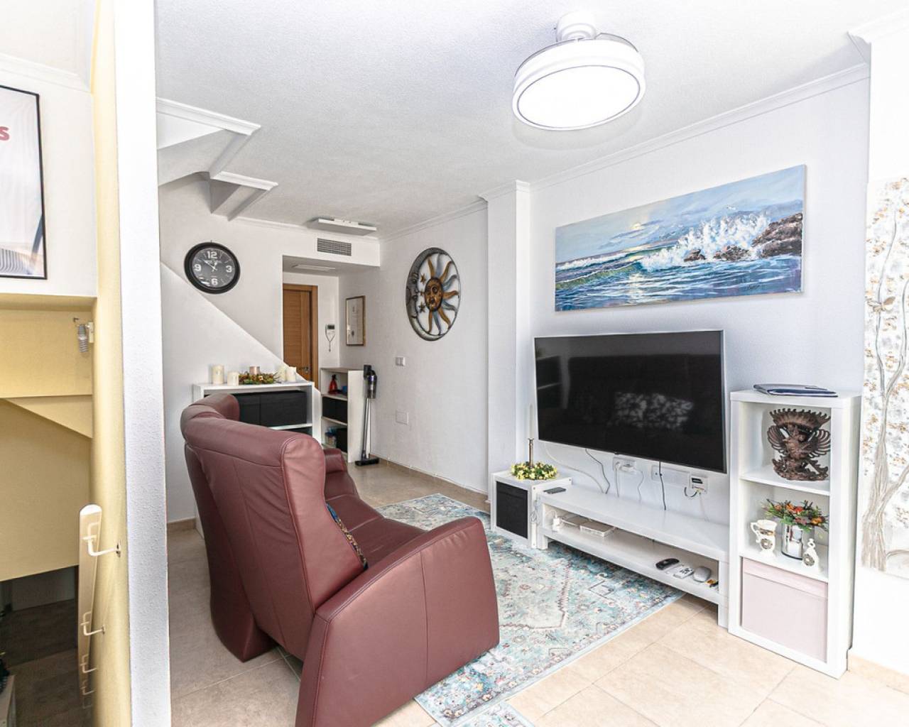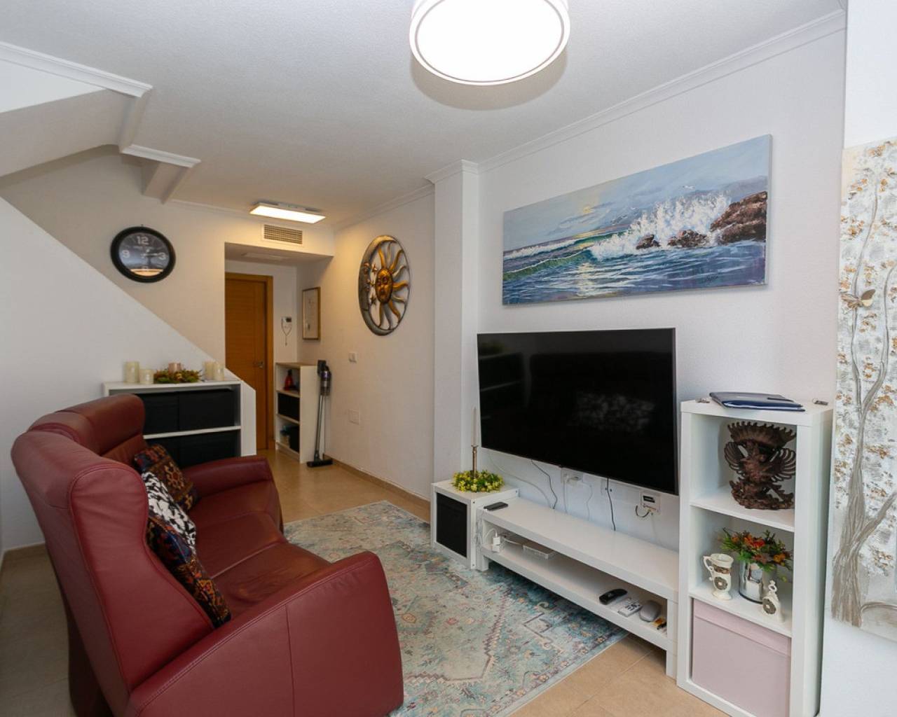 We present an attractive townhouse located in a gated residential complex in Guardamar del Segura, with a communal pool available to all residents.The property has an independent entrance and a front terrace. Upon entering through the main door, there is a living room and a guest toilet. Next is the separate kitchen, which leads to a glazed and enclosed rear patio that can be opened on the sides through sliding windows – ideal as a bright dining area.On the first floor, there are two spacious bedrooms with fitted wardrobes and a modern bathroom with shower. The third floor features another bedroom with two exits: one to a small patio where the washing machine/dryer and water heater are located, and the other to an outdoor terrace perfect for enjoying breakfast in the open air. From this terrace there are sea views.A highlight of this home is its private garage with direct access from the street. It is sold fully furnished (except personal belongings), with appliances, centralized air conditioning, awning, sofa with integrated armchair, solar panel for hot water, and in the third bedroom a split unit, electric towel warmer, ceiling fan and television with German channels.Additional information about Guardamar del Segura and surroundings:Guardamar del Segura is a coastal town located in the south of the Costa Blanca, offering about 11 kilometres of fine sandy beaches. It is approximately 33 km from Alicante–Elche Airport. The La Marquesa Golf Course (in Ciudad Quesada) is one of the nearest in the area, just 7.2 km from the property. Contact us if you wish to arrange a viewing.