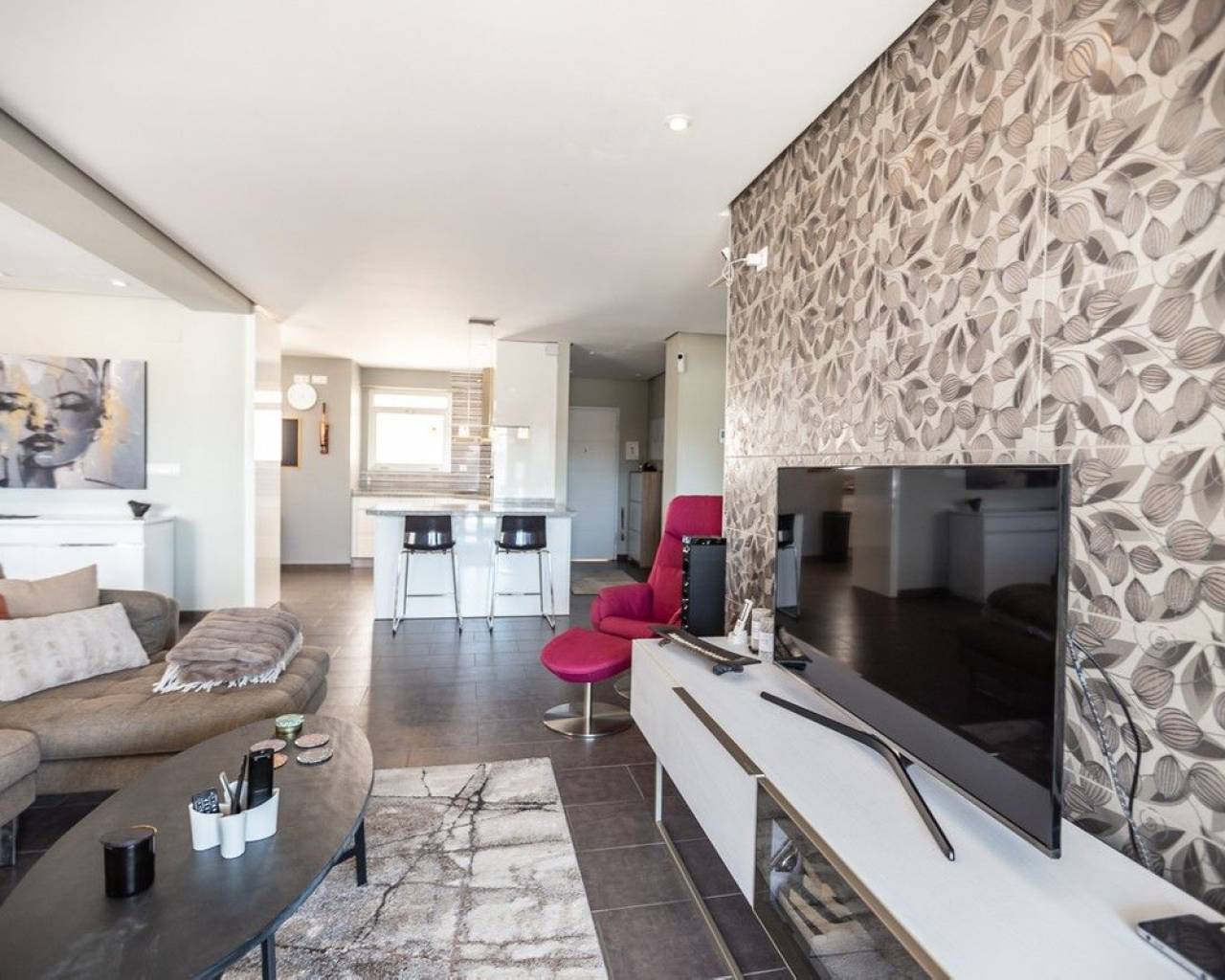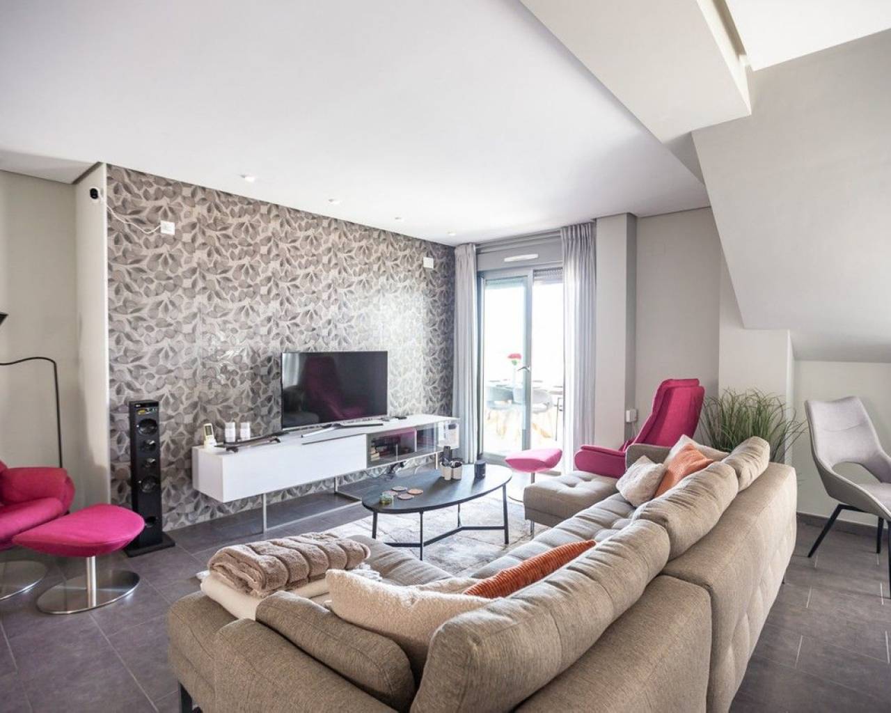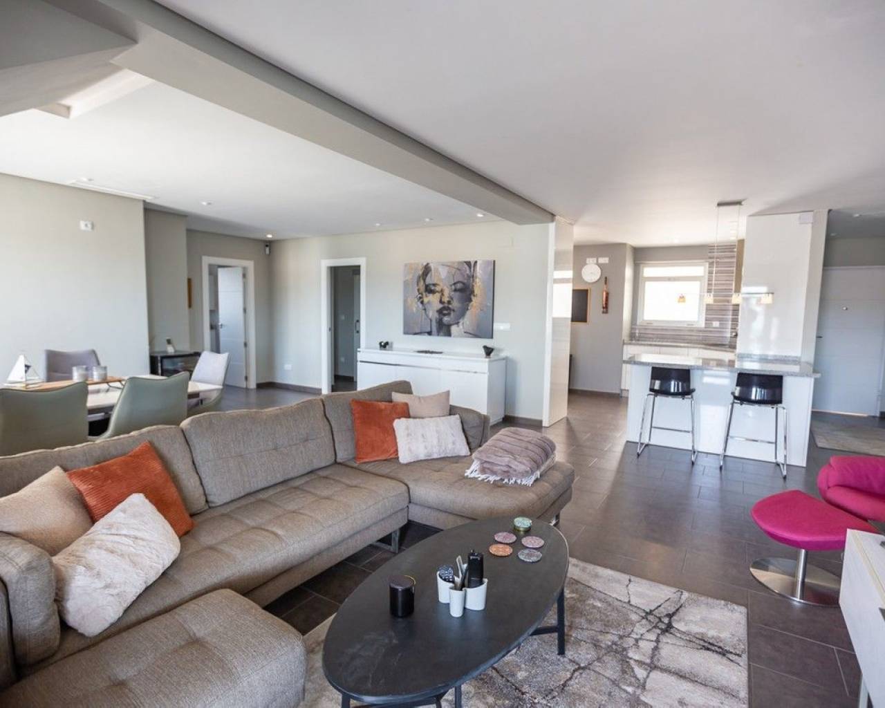 Experience luxurious coastal living in this stunning penthouse apartment for sale in the sought-after area of Villamartin. Actually it was two apartments which have been converted into one massive penthouse. Boasting 4 spacious bedrooms and 2 modern bathrooms, another laundry room which has a toilet also, one of which is an en-suite, this property is perfect for a family or those who love to entertain guests. The big open-plan living room and dining area lead seamlessly into the massive kitchen, which is a chef`s dream come true.Step out onto the glazed-in balcony and be captivated by the breathtaking sea views. Take your relaxation to the next level with the rooftop solarium complete with storage, an outside shower, and even more fabulous sea views.This property is sold fully furnished, including white goods, so all you need to do is pack your bags and move in. The price includes two open parking spaces for your convenience. The community offers an outside pool open all year round, an indoor pool, a gym, and a sauna so that you can stay active and healthy all year round. The landscape is beautifully maintained with nice trees and flowers, providing a serene and relaxing atmosphere.Located in Villamartin, this penthouse apartment is conveniently close to supermarkets and bars, with a short 3-minute drive to the Villamartin Plaza. Enjoy the Mediterranean beach of La Zenia just a short drive away (2.9 km). Don`t miss out on this rare opportunity to own a luxurious penthouse apartment in one of the most sought-after coastal areas. Contact us today for a viewing.