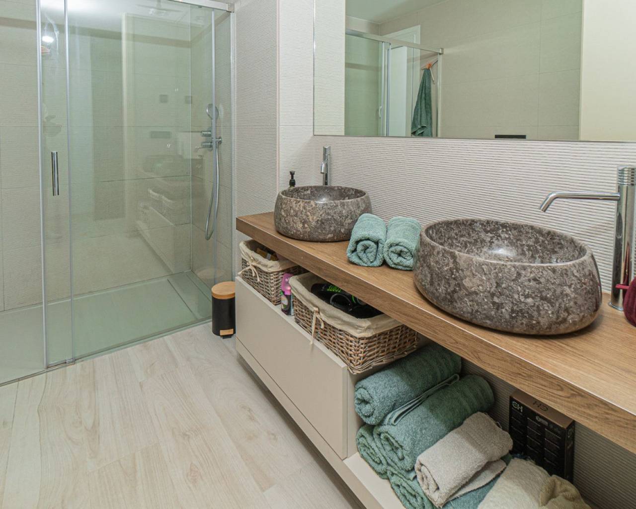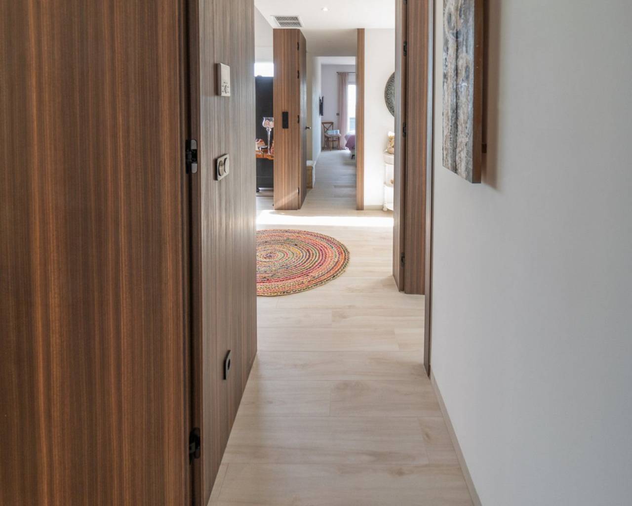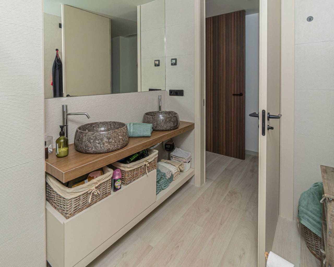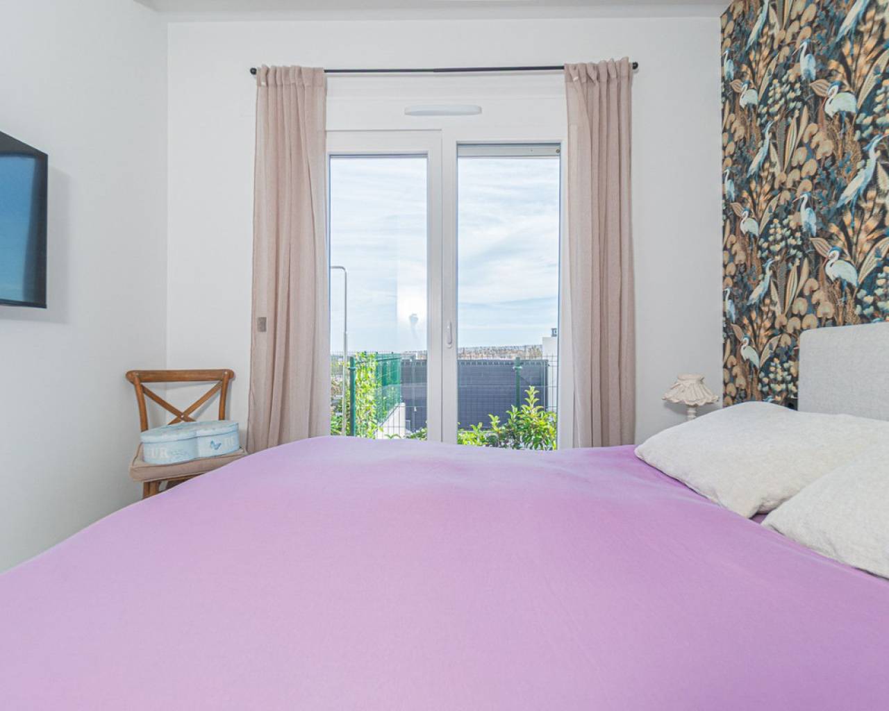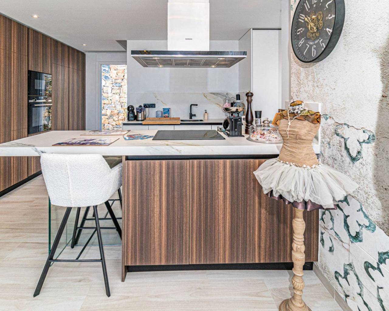 We are pleased to present this stunning luxury villa with panoramic views due to it´s elevated position at the 5 star La Finca Golf course. This impressive modern home is a perfect example of a resale of a new build without the wait and packed with luxury extras. The home offers a vast living/dining space, typically not seen in such homes, and offers the perfect area for leisure and entertainment, there is still ample space for a formal dining area or you can sit at the large island leading to the high end kitchen, which features floor to ceiling integrated cabinetry, ample work top space and top of the range white goods, plus leading out to a utility area and to the side patio terrace. The home offers 3 bedrooms, the master suite comprises a spacious double bedroom with patio doors to the garden and sun terrace, large walk in dressing room, with ample storage and floor to ceiling mirror, plus luxury shower room with his and hers sinks. The further 2 guest bedrooms both feature integrated wardrobes with ample storage space and share a further modern shower room. The whole home inside presents like a show room and has been made unique by the owners eye for detail and shows clearly their passion for interior design. Each piece and all decor has been lovingly chosen to integrate sympathetically with the wood and stone design, yet brings a touch of class to each room. The villa is set on a low maintenance plot of over 400m2 with sun terrace to the front offering some shade from the Spanish sun and is the perfect space for al fresco dining, likewise a sunny corner along with an summer kitchen/bar area offers the ideal spot for entertaining. The villa of course offers private swimming pool to cool off in the height of summer and the remainder of the plot is low maintenance with high quality tiles, gravel and artificial grass, a easy to access driveway offers secure gated parking, although there is ample quiet street parking outside the villa. Boasting stunning unobstructed mountain and country side views due to it´s elevated position this home offers everything a discerning buyer could wish for. This stunning villa will be sold part furnished although inventory can be discussed dependent on offers and is sold with many extras including integrated white goods, air conditioning, remote controlled blinds and gates, plus much more. Located a mere 200m to the La Finca Golf hotel Spa and club house , ideal for golf lovers for those extended holidays or ideal for permanent living as under 3km to both the traditional village of Algorfa which offers Spanish charm,local restaurants, bars, local shops and the traditional village square and the commercial area at La Finca also noted for some quality restaurants, cocktail bars and much more. Around 17km to the beaches of Guardmar del Segura , La Mata and Torrevieja, meaning you are never far from the coast. This home must be seen to be appreciated and is even more stunning in real life. Contact us today for your viewing